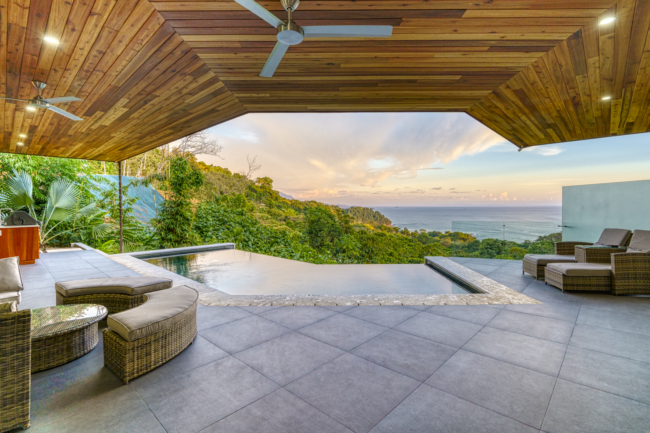 Renowned luxury builder Ben Morris of Paradise Homes masterfully crafted this unique, opulent residence. Captivated by the land's potential, he envisioned a home where the jungle and ocean views took center stage. Thus, Casa Sulit was born—an embodiment of the Filipino word for surpassing expectations. The home seamlessly blends indoor and outdoor living with priceless vistas in mind. Locally sourced natural materials, such as wood and stone, were meticulously chosen to create exquisite features that harmonize with the surrounding environment.