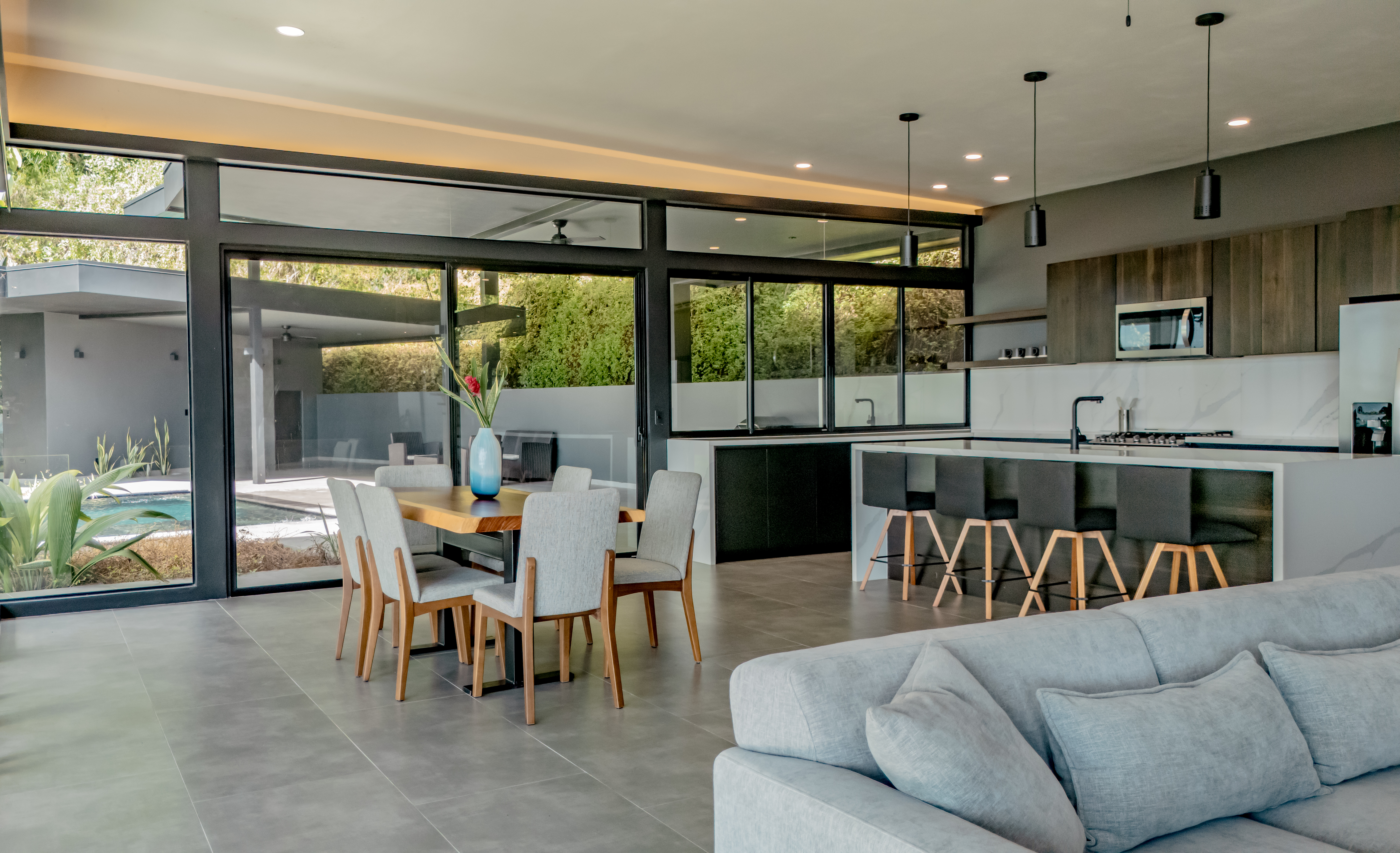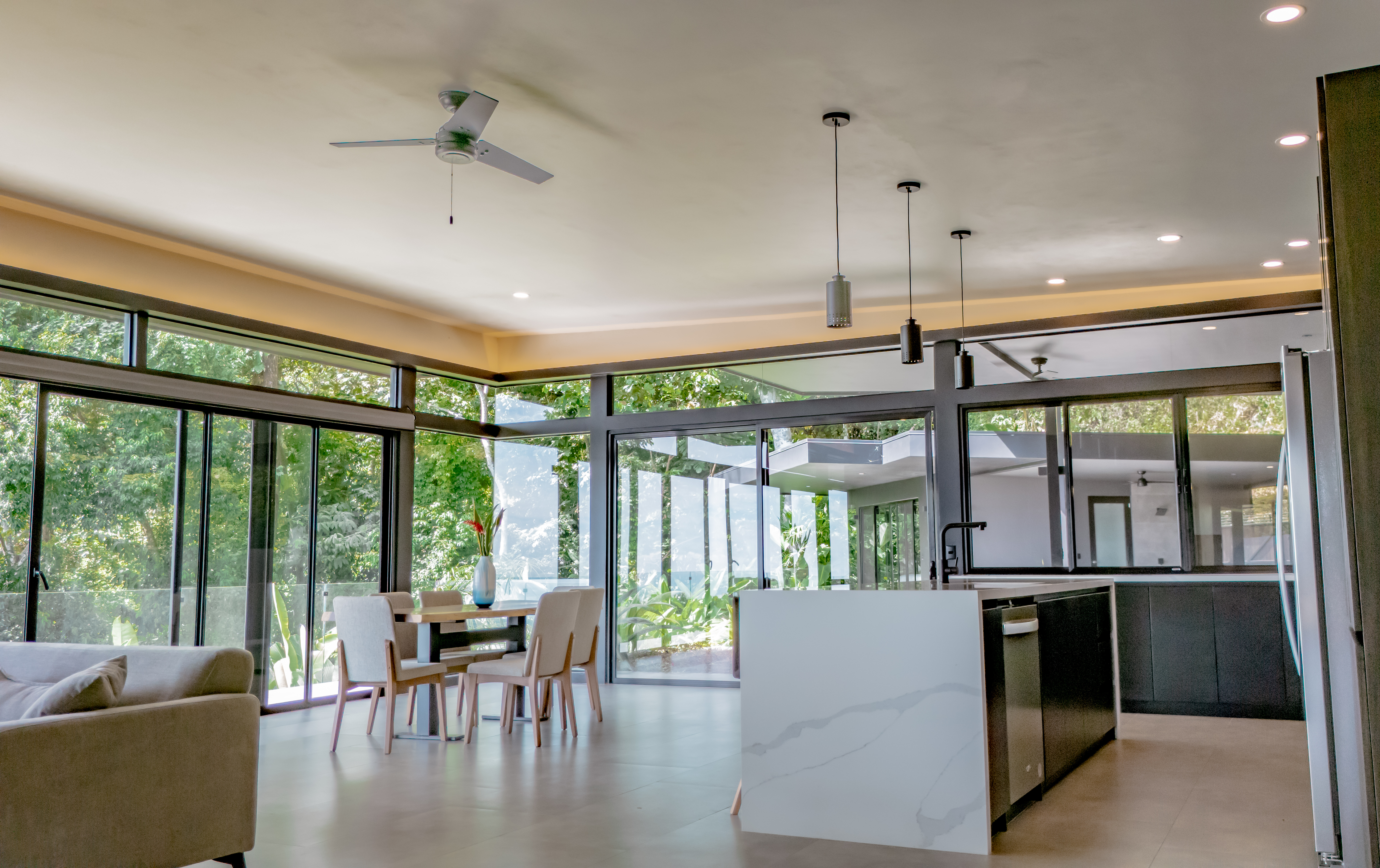 From the moment you step inside, you’ll be captivated by the panoramic ocean views that extend to the Manuel Antonio Islands and Playa Linda, celebrated as one of the finest beaches in the southern zone. This stunning spectacle of sunsets can be enjoyed year-round, providing a daily dose of natural beauty from your home.