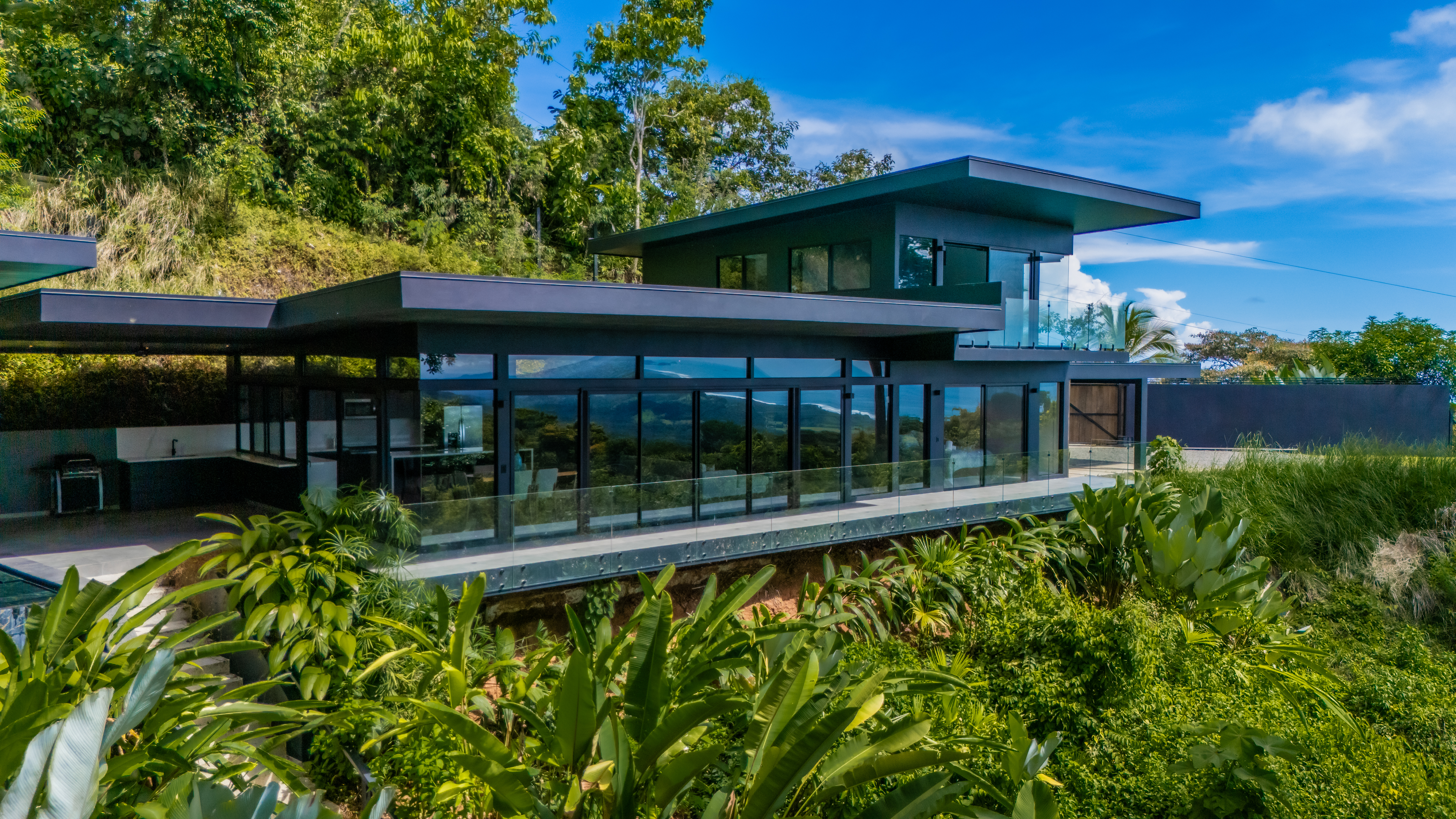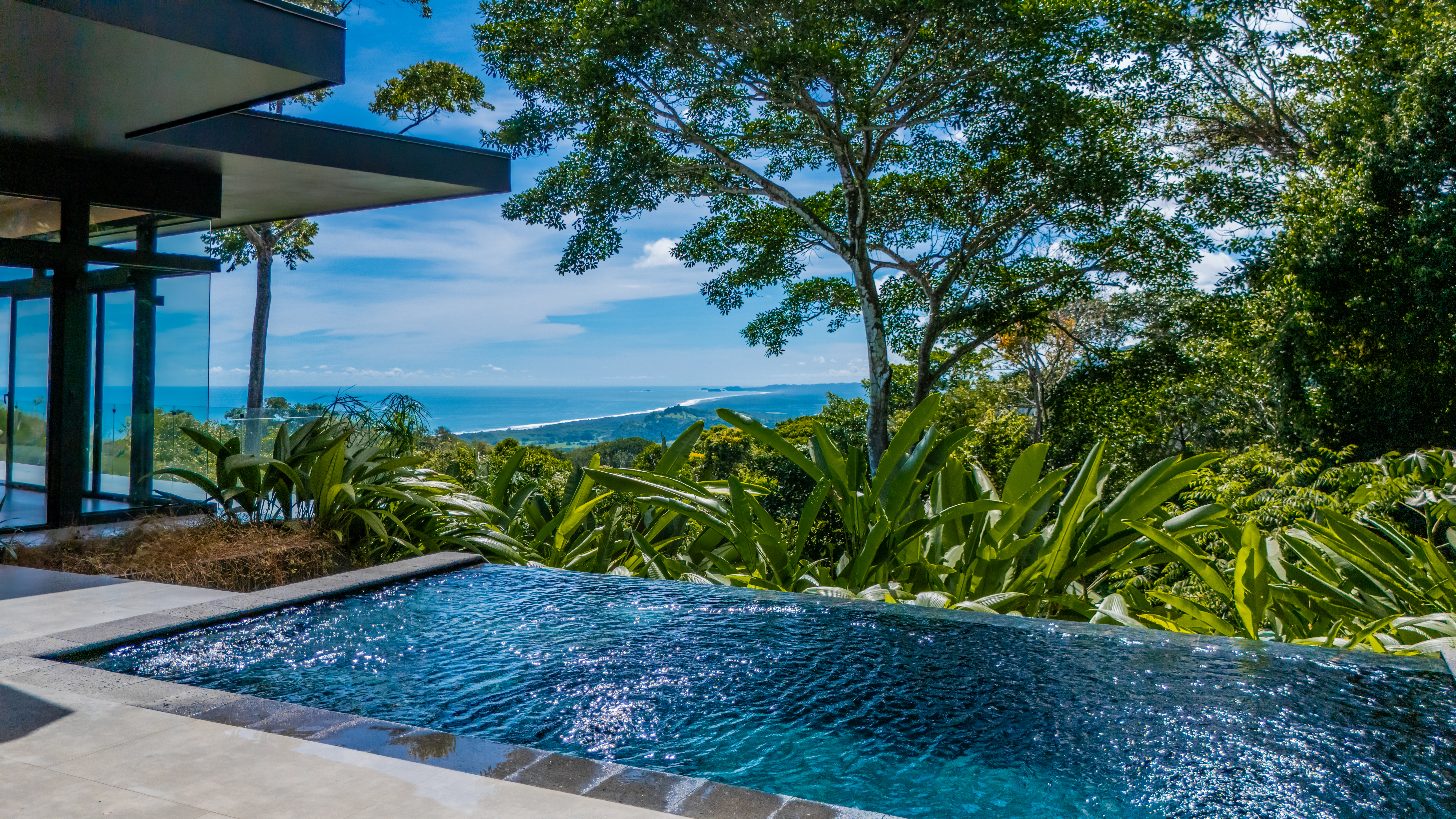 Experience luxury living in this brand-new, ocean-view masterpiece, perched at an elevation of 1,000 feet in the lush landscapes of Costa Rica. A mere seven-minute drive takes you to the coastal highway, while the vibrant surf town of Dominical is just 15 minutes away. Designed with a modern, minimalistic aesthetic, this home features expansive glass walls that invite natural light and breathtaking vistas into every room.