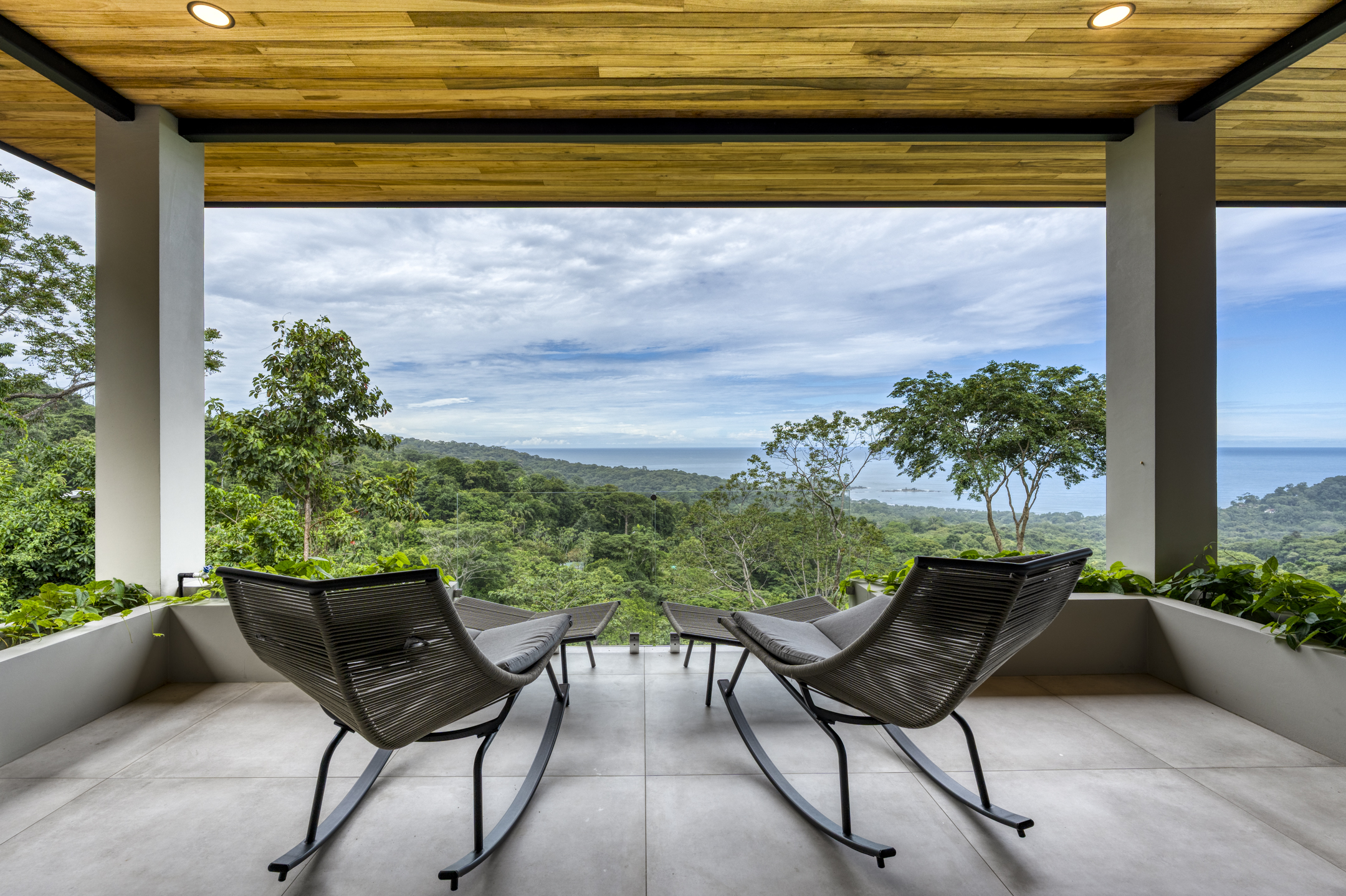 From the moment you arrive, it is clear this is not a standard hillside villa. The home is a testament to his meticulous attention to detail. Every concrete surface is flawlessly poured, every hardwood accent sourced locally from sustainable forests and finished by hand. Oversized pivot doors make a sculptural first impression, while concealed hardware and sleek minimalist lines allow the natural materials to speak for themselves.