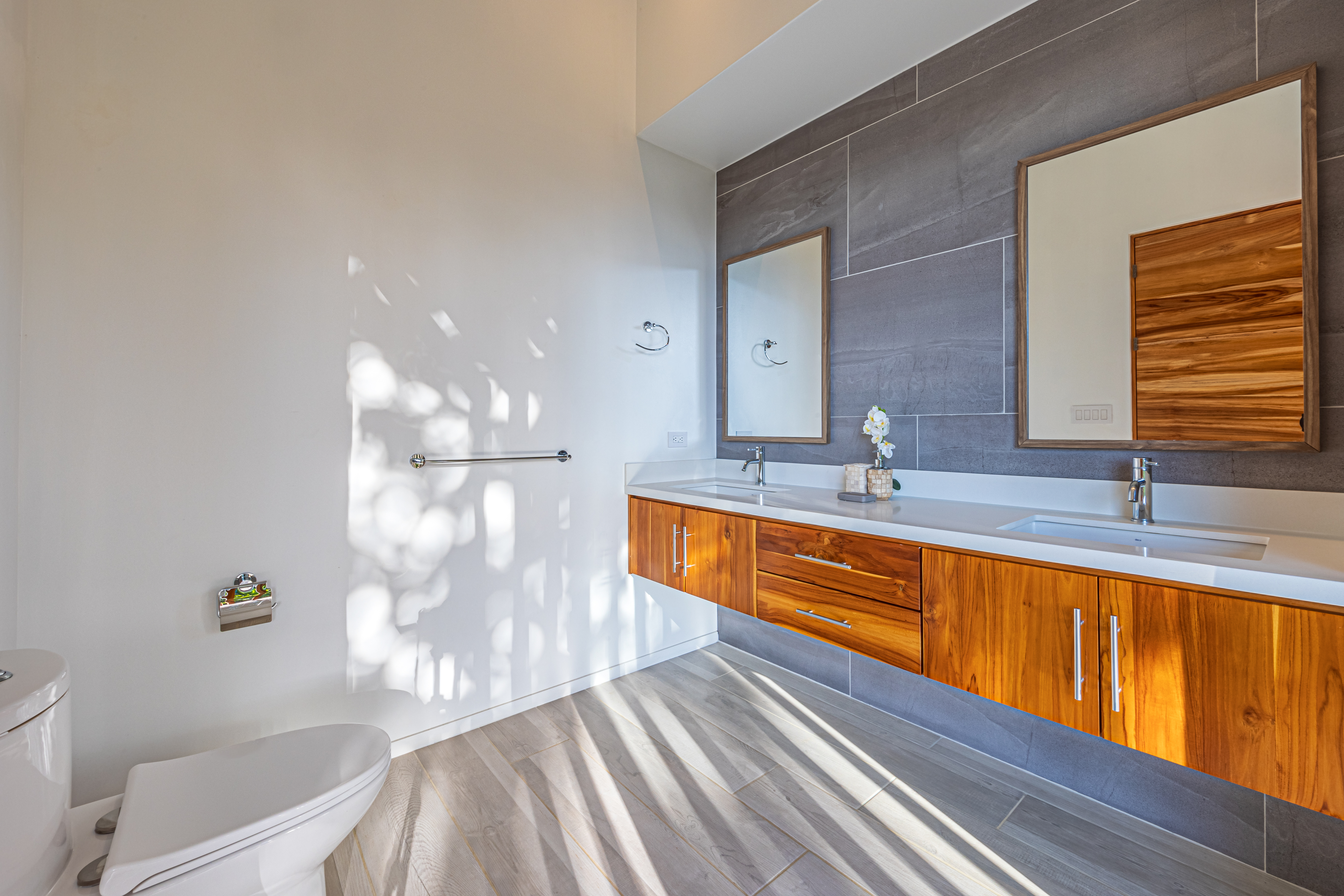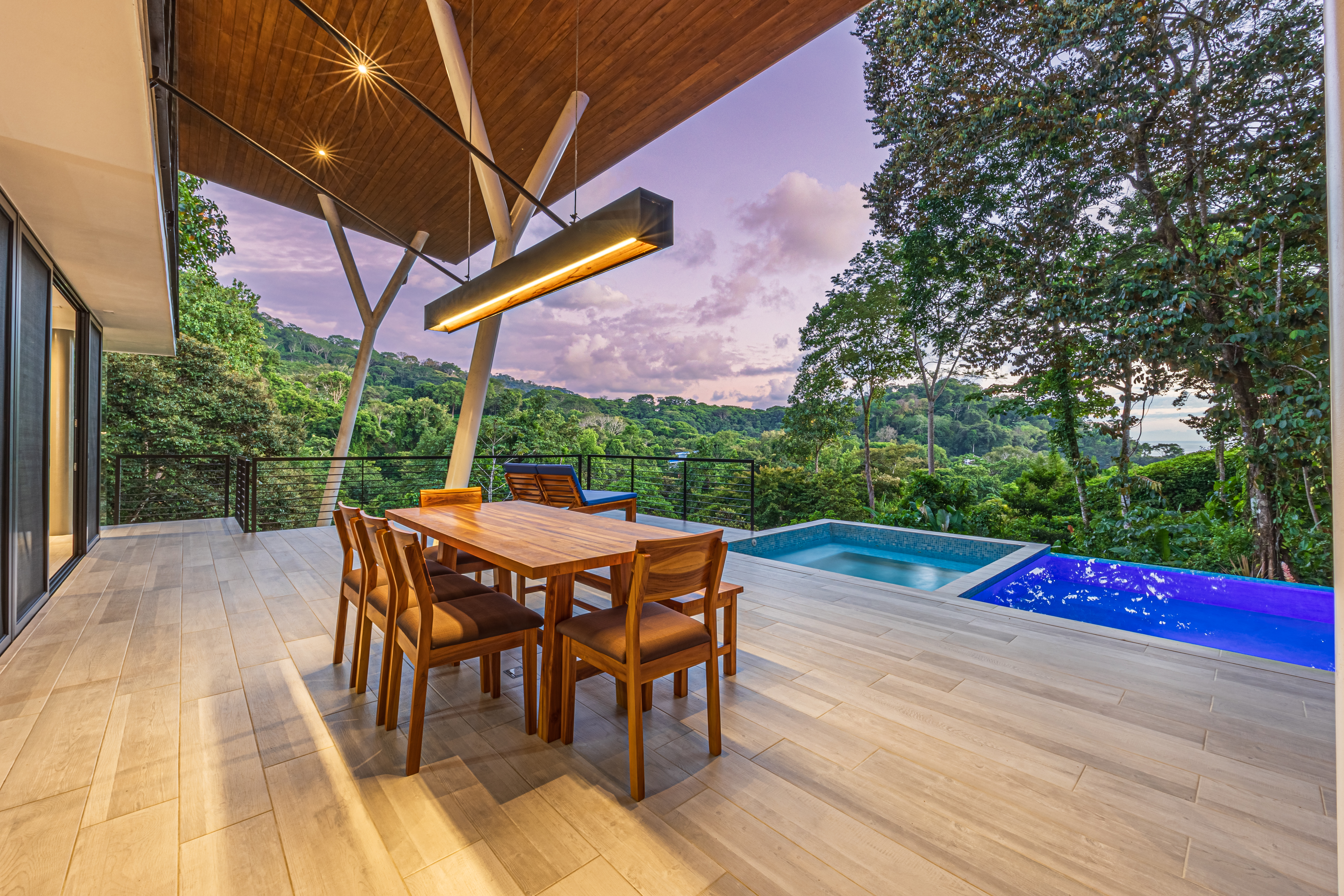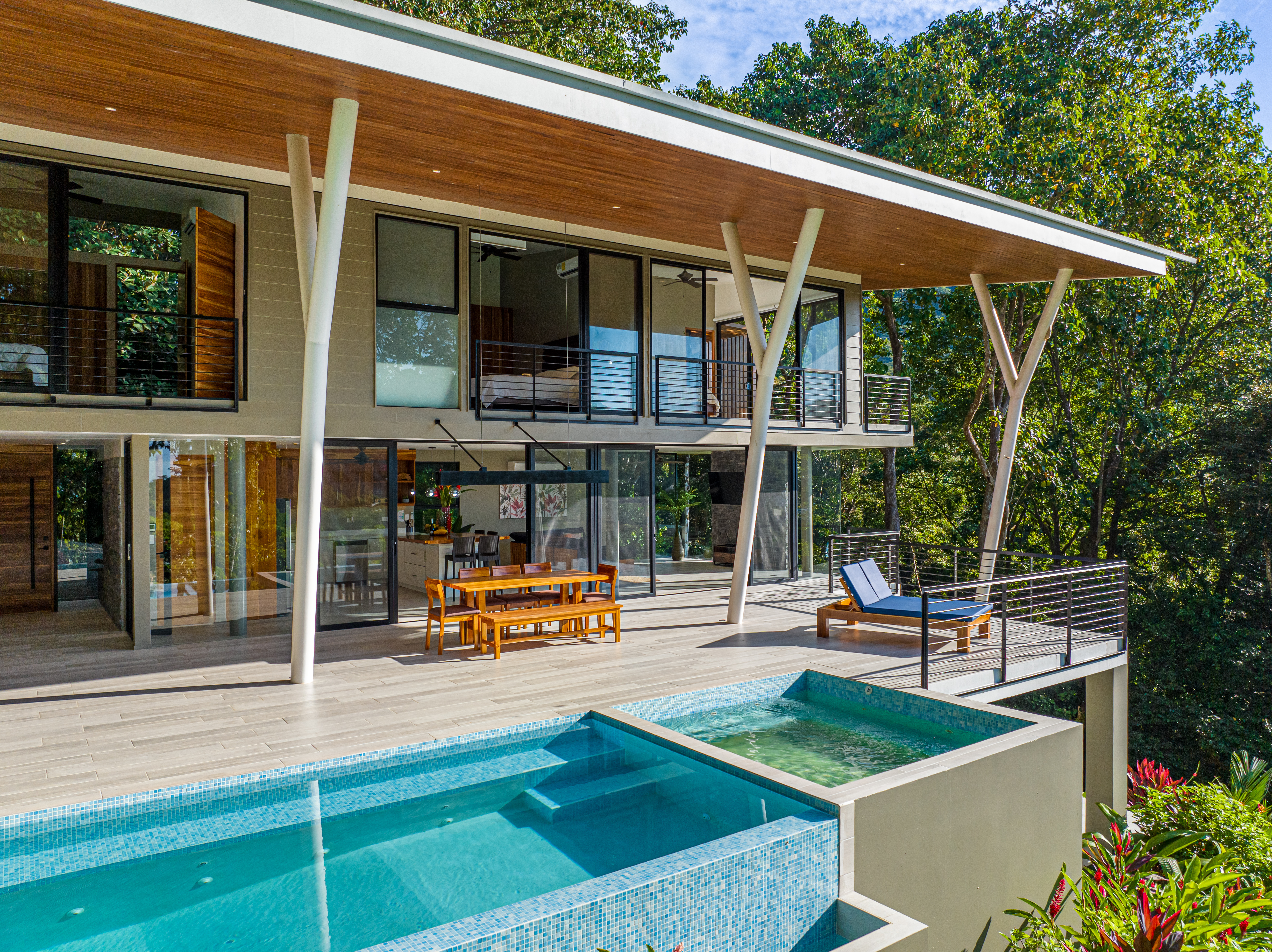 Unwind in the infinity pool or soothe your senses in the hot tub while listening to the gentle sounds of the jungle serenading you from below. The estate is fully private, gated, and nestled within a secure community, offering complete peace of mind.
