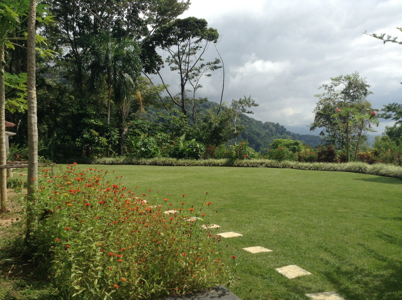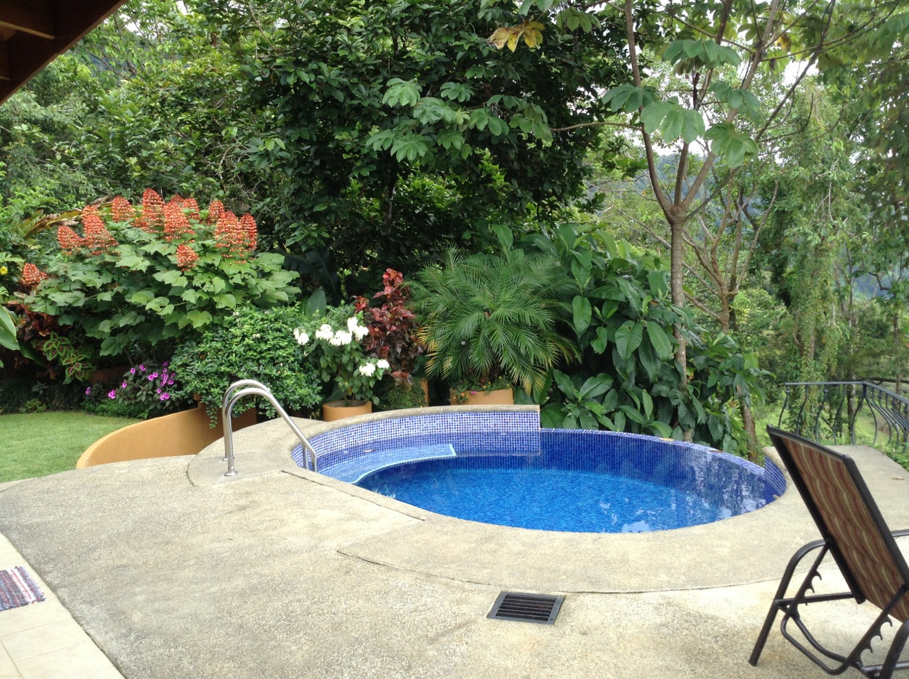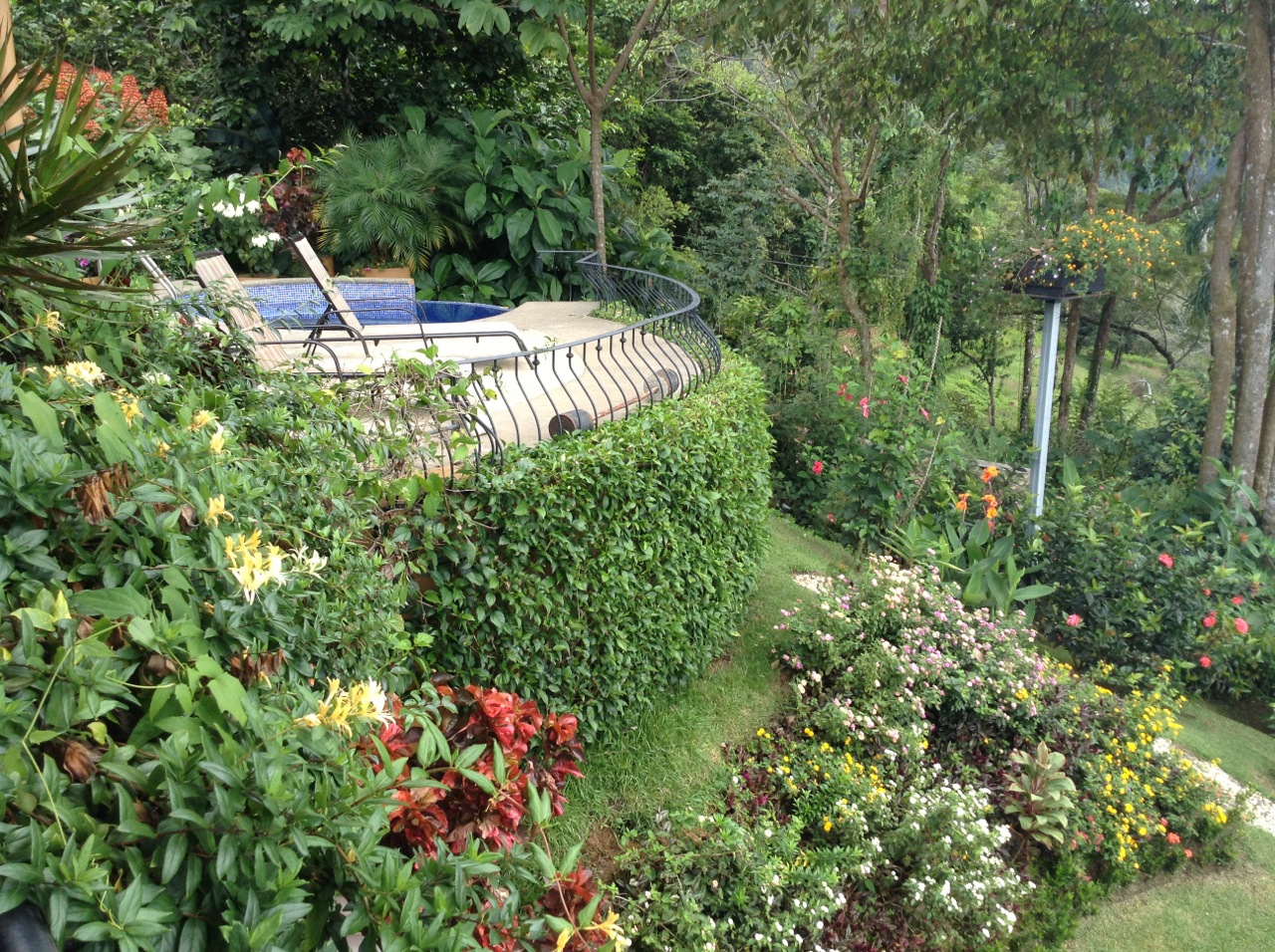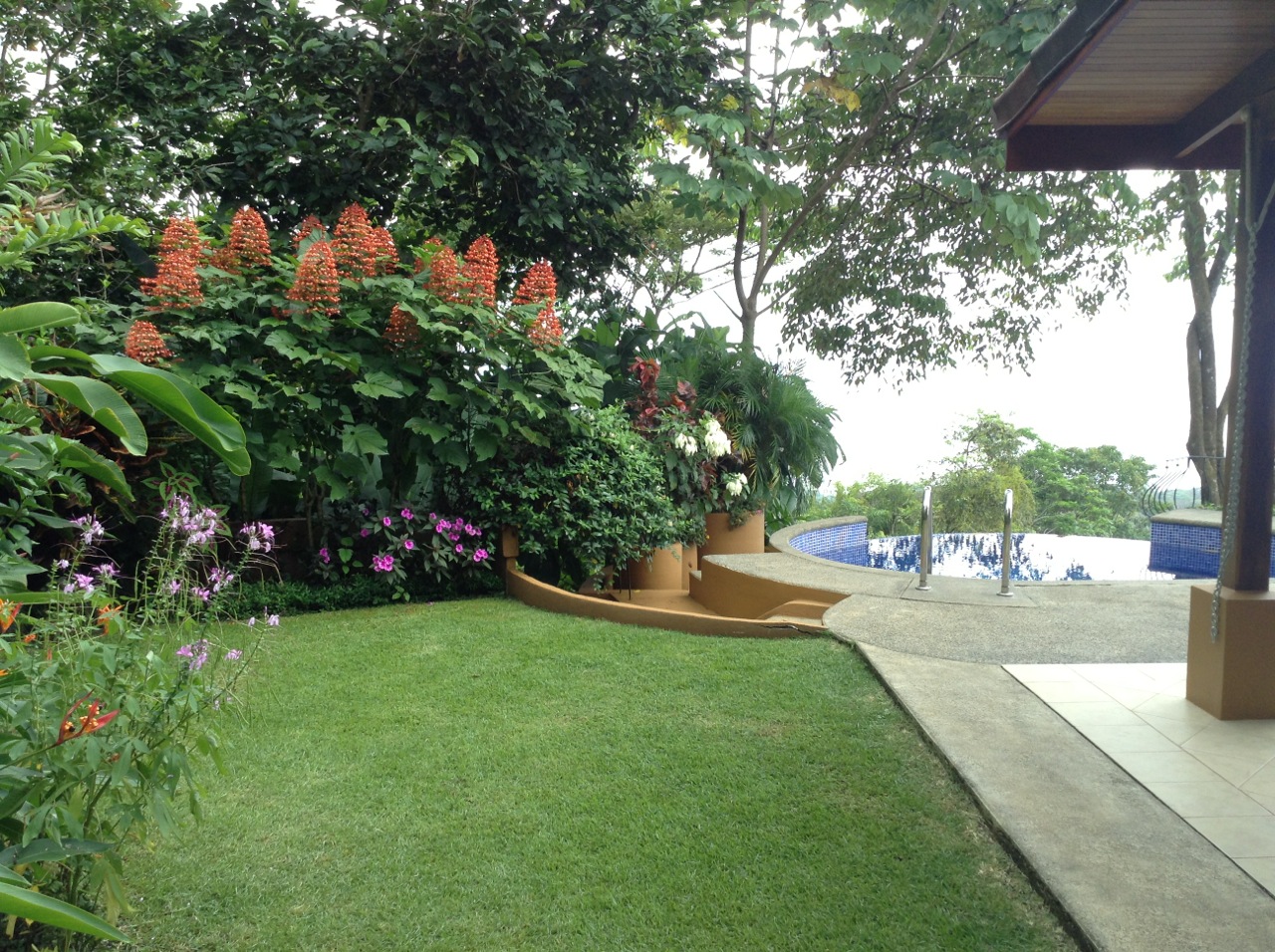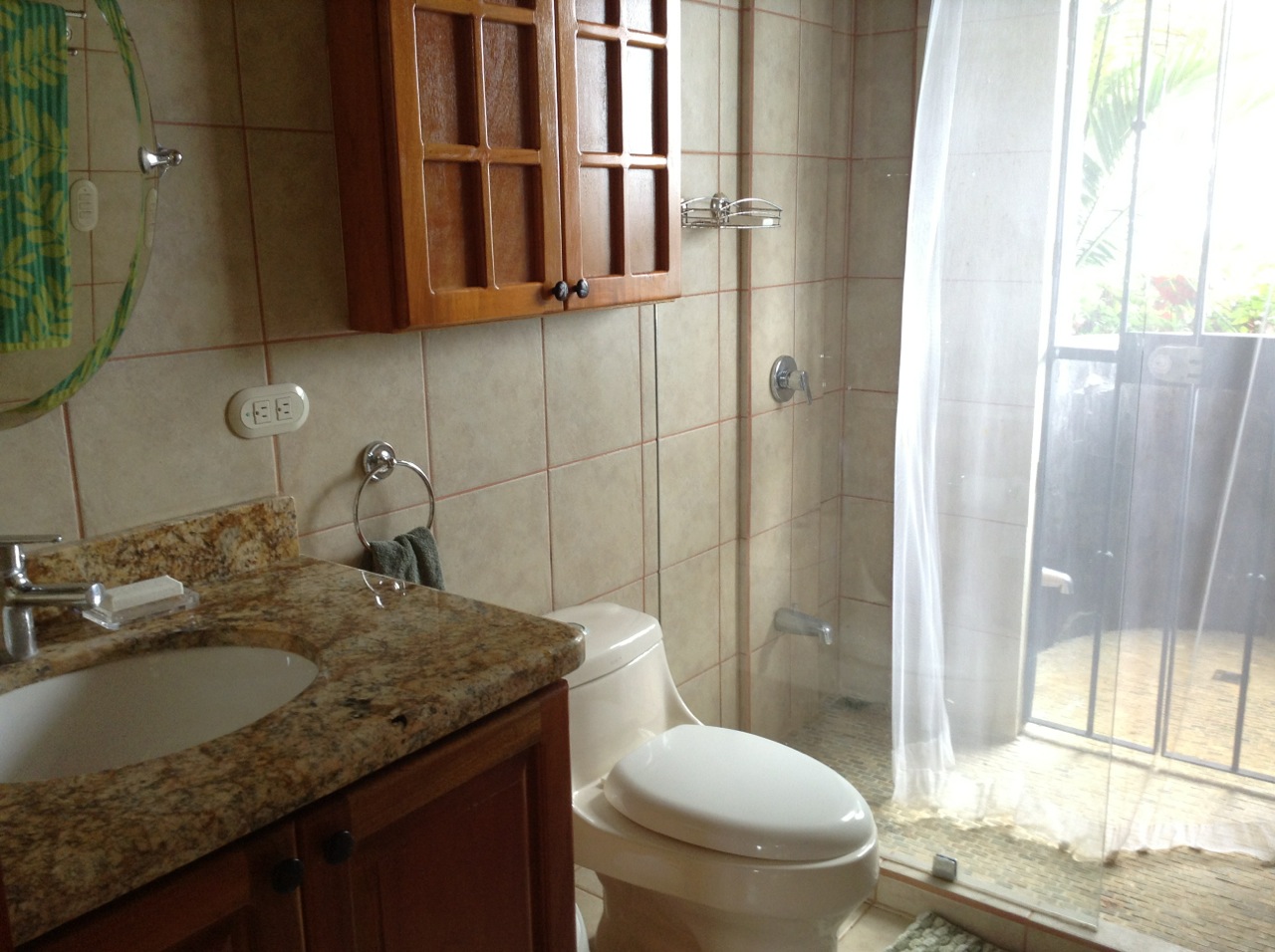 The main house has the tropical indoor/outdoor living experience mixed with the feeling of a Tuscan villa nestled within your own personal tropical garden. The kitchen, finished with granite counter tops and stainless steel appliances, open onto the living room with fold-away doors, which extend to the exterior patio. The design welcomes warm breezes, scents of the rain forest and spectacular ocean views. The master bedroom has its own private ocean view balcony and indoor/outdoor shower. Downstairs is the guest room with its own bathroom and terrace with flowering gardens allowing oneself to enjoy toucans, hummingbirds and much more.