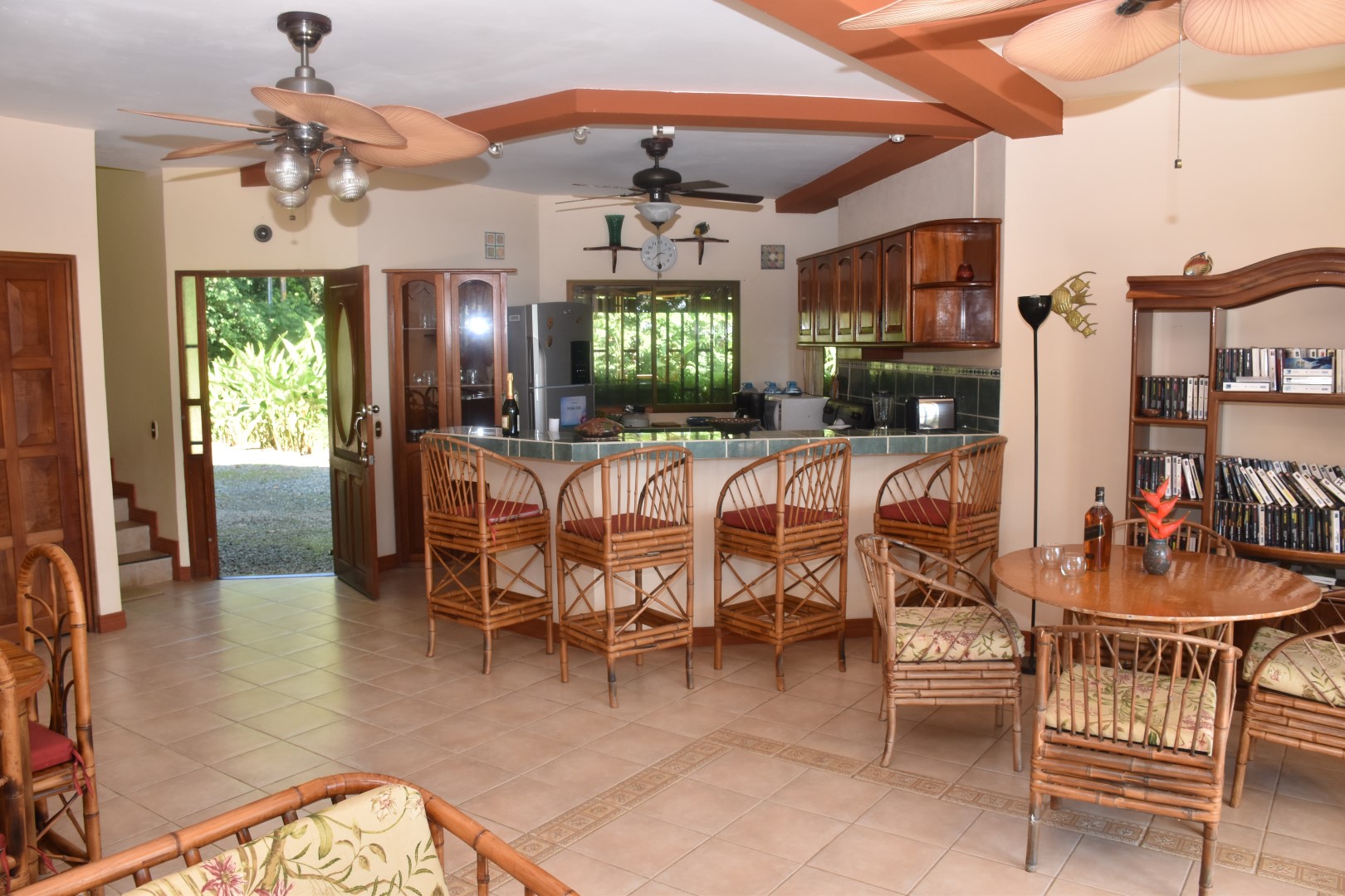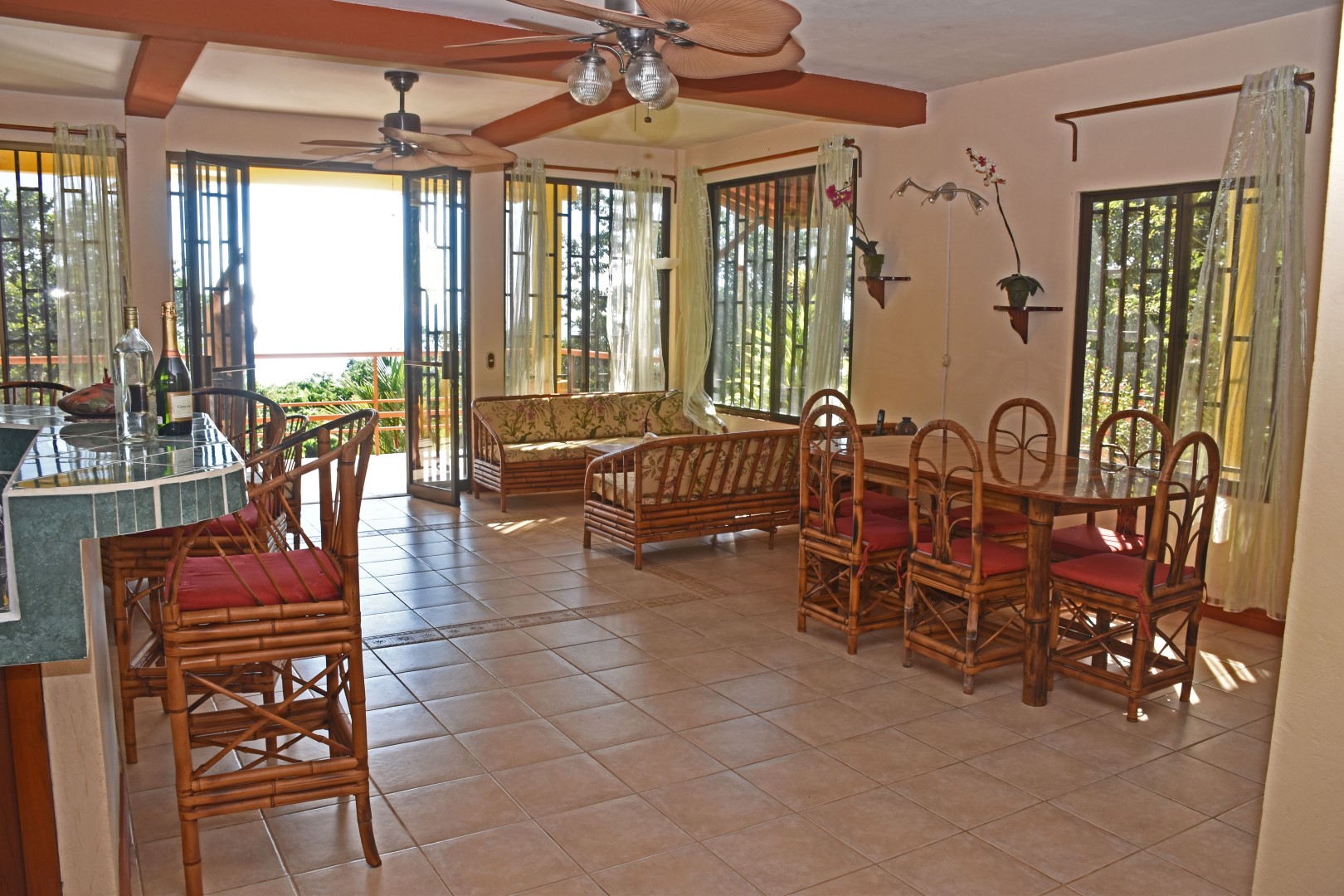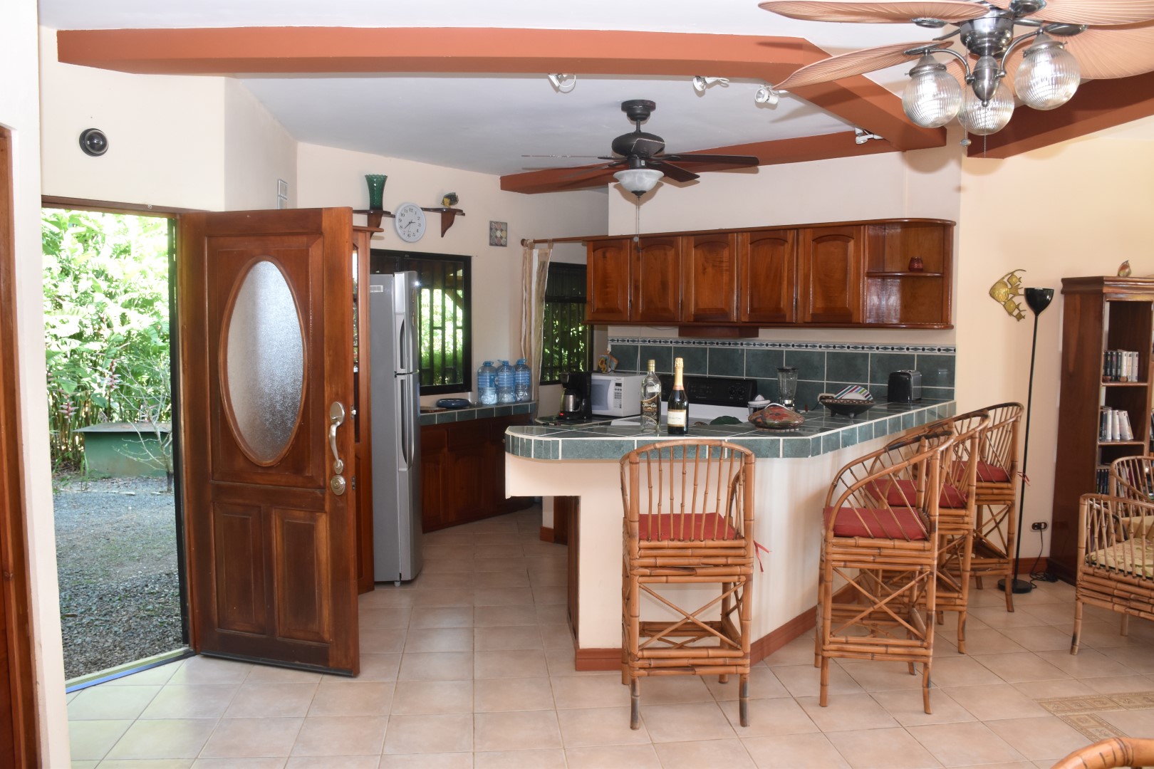 Set on a lot that is surrounded by Costa Rica’s natural world, the home has two levels. On the first level is your open living area with fully equipped kitchen, dining and sala. The front is all glass so you can open it up to cooling ocean breezes and views. Simply but completely furnished, it includes everything you need make it suitcase ready.