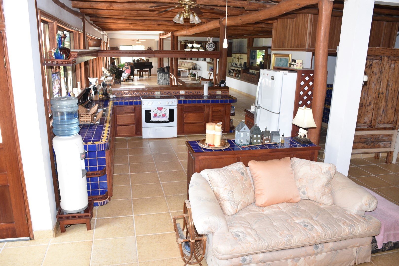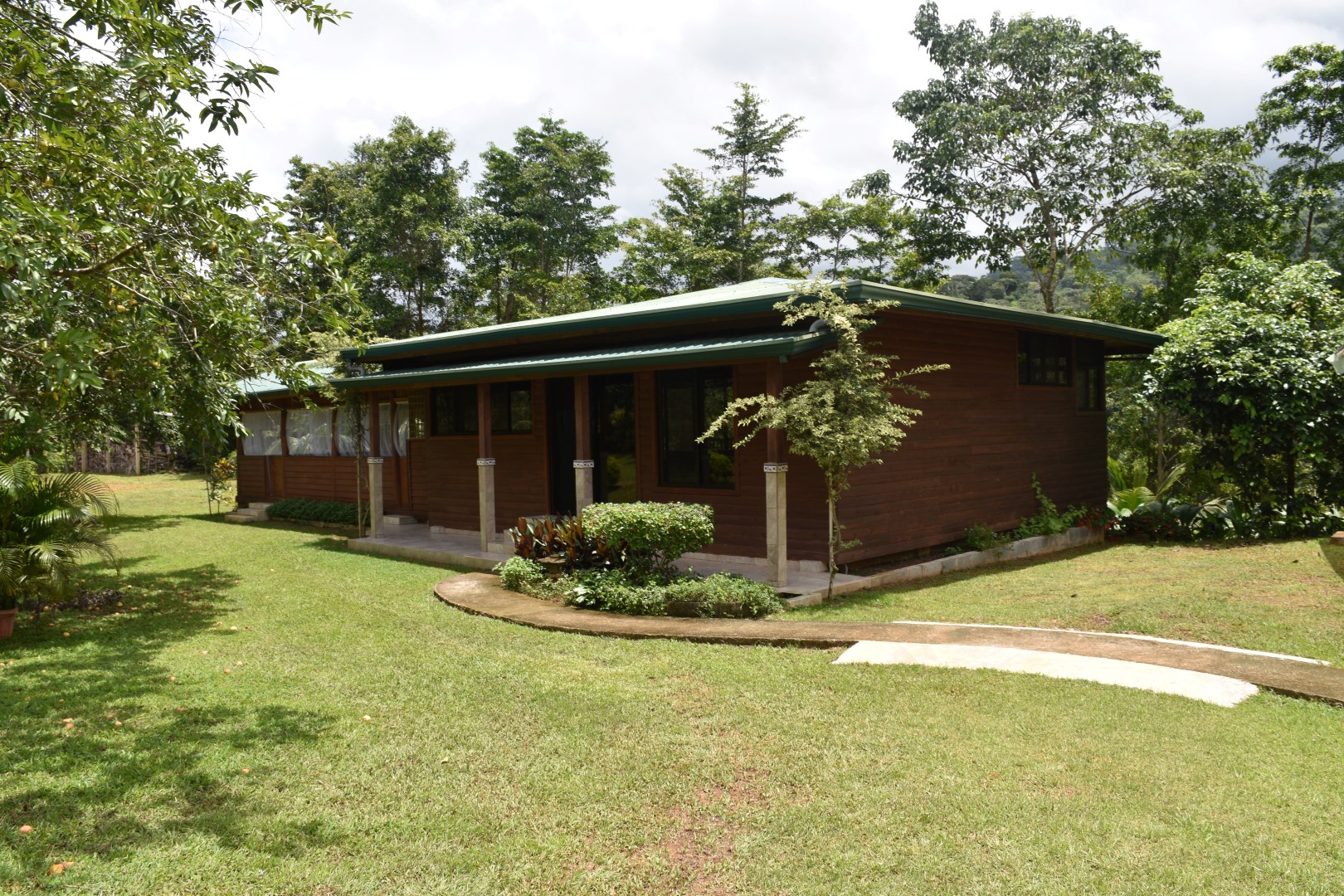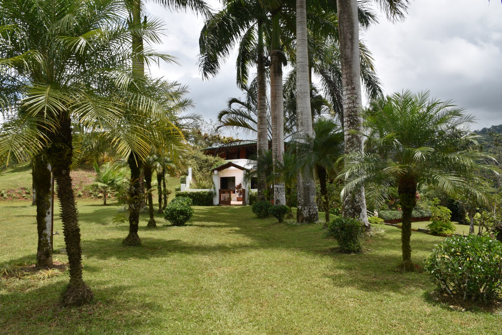 The 170 acres of land incorporate so many options. Right now there are four horses and 80 head of cattle on the pasture areas. The Guabo River, which runs beautifully all year, goes right through the property with beautiful cabin sites along it should you want them. There is a road going down to the river and then up, up, up the other side to a high point where you see a whole panorama of valleys, mountains and distant Pacific Ocean.