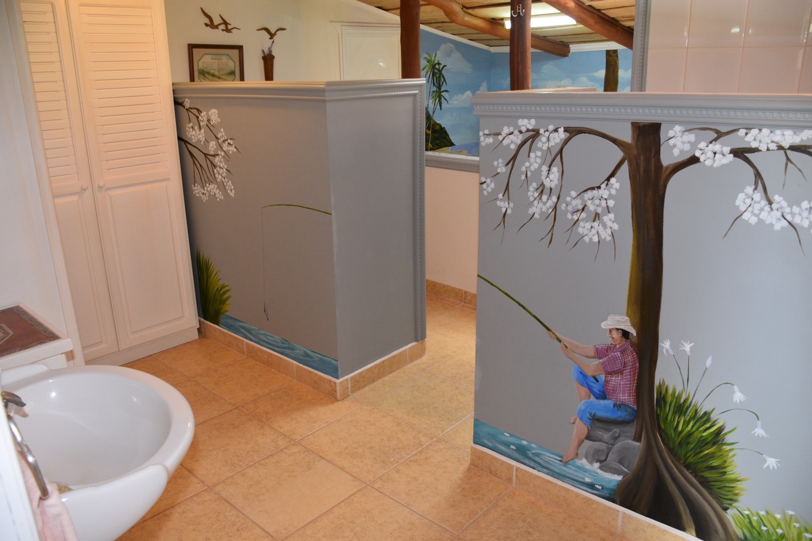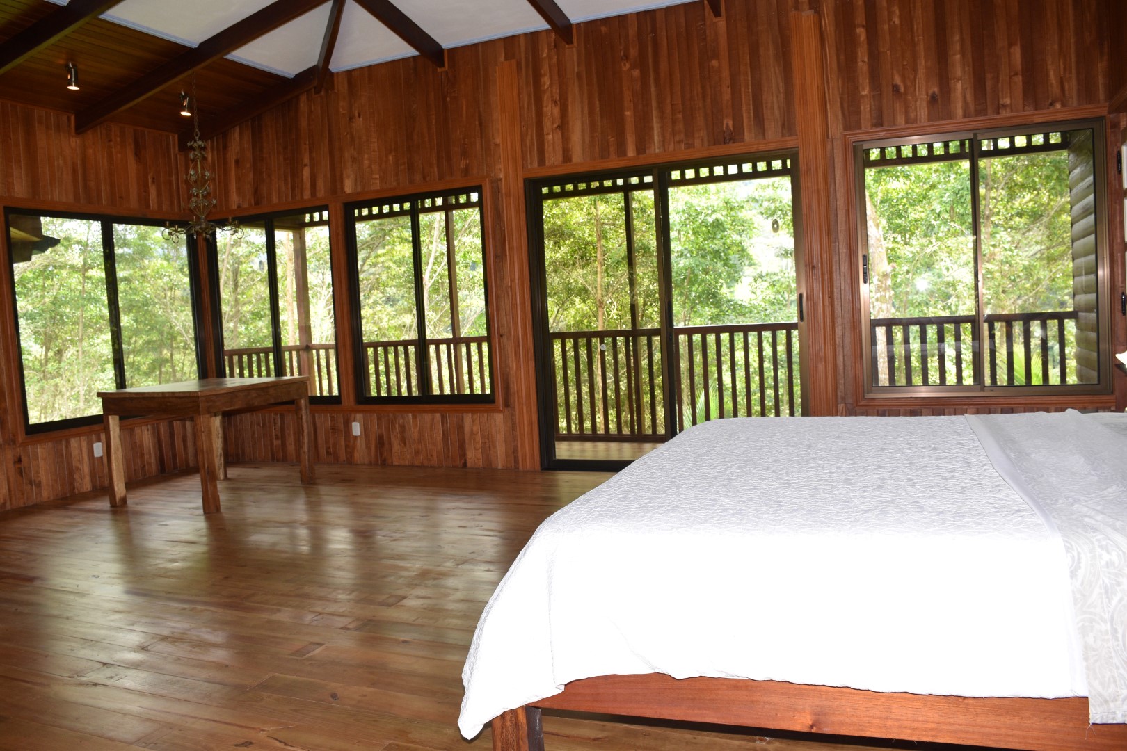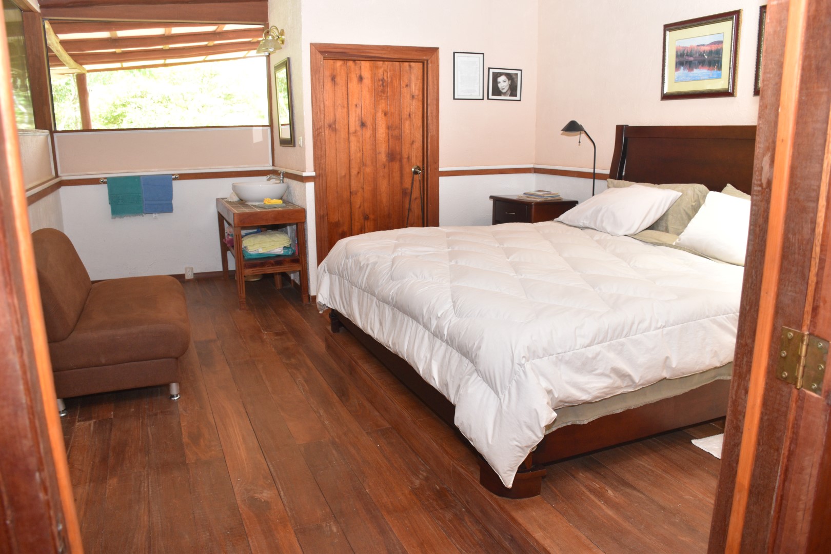 The guest house is a large efficiency bedroom/kitchen/bathroom on the edge of the bank above the river. You get jungle views and always the sound of the rapids below.