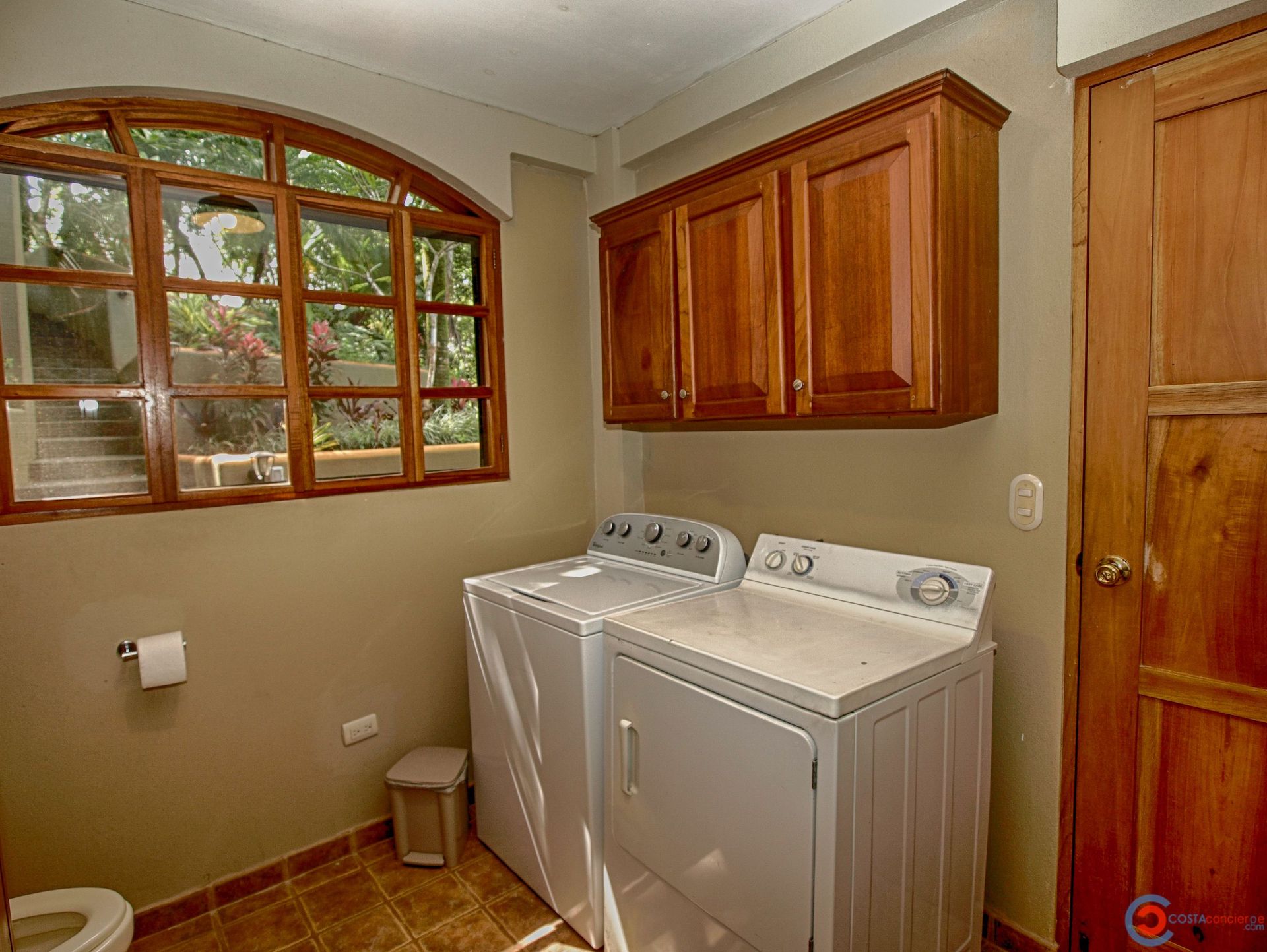 The guest house is situated at the opposite end of the pool and is very private. It has a kitchen and a full bathroom. Below is a beautiful rancho area with hammocks perfect for relaxing or doing yoga. There is also a garage at the entrance to the property that is currently being used as a caretaker home. The original owners lived in it while they built the home, so it is equipped with a bathroom and kitchen area.