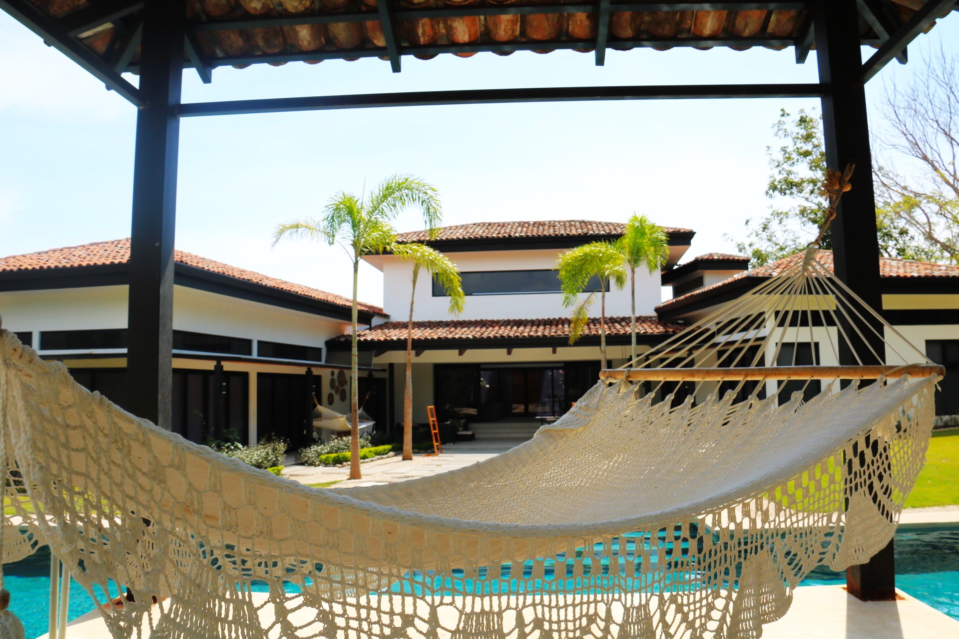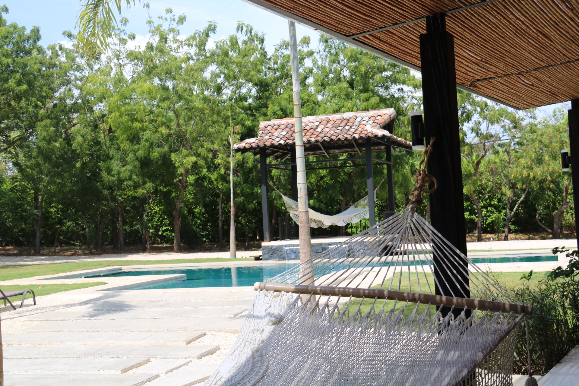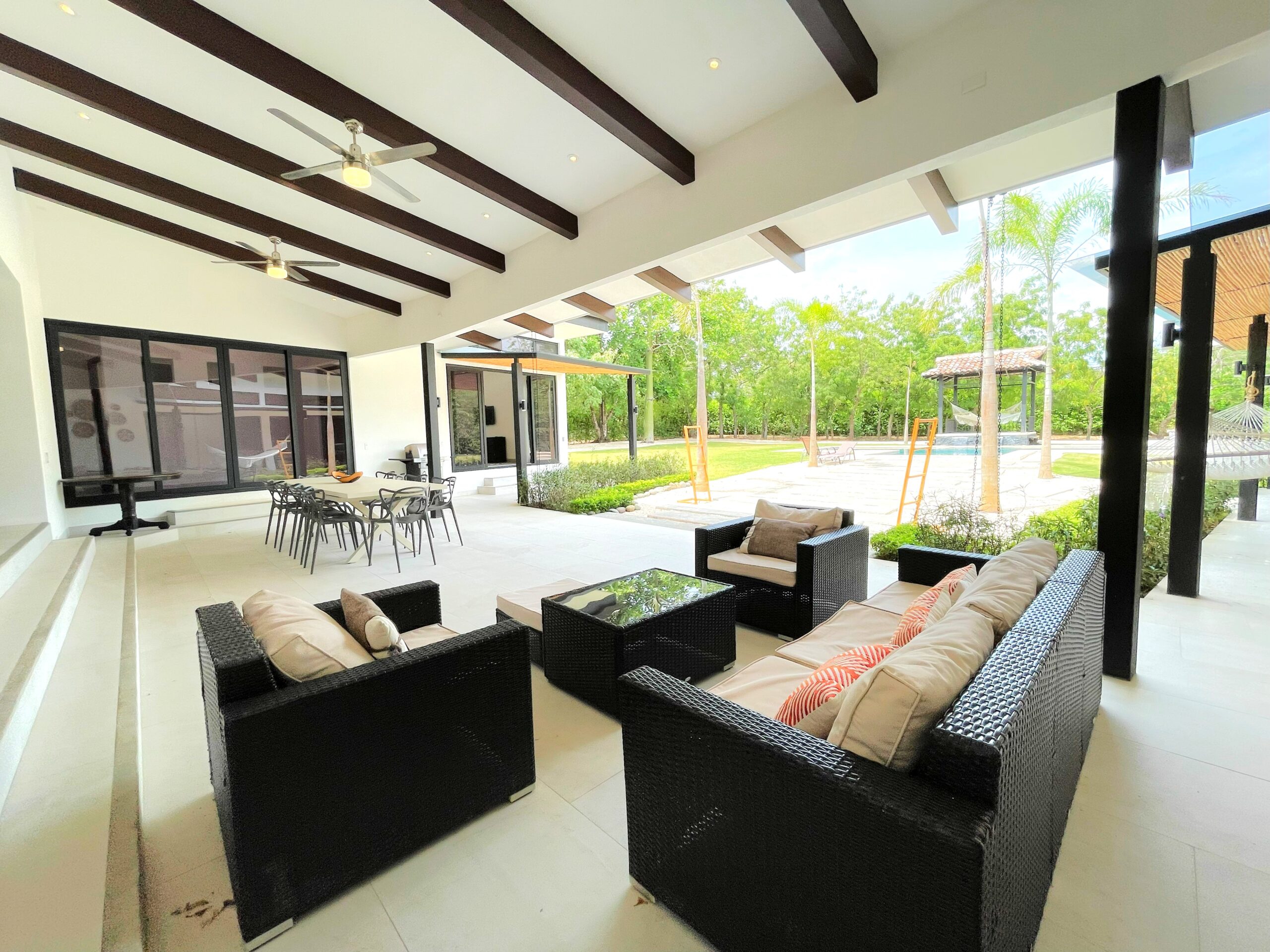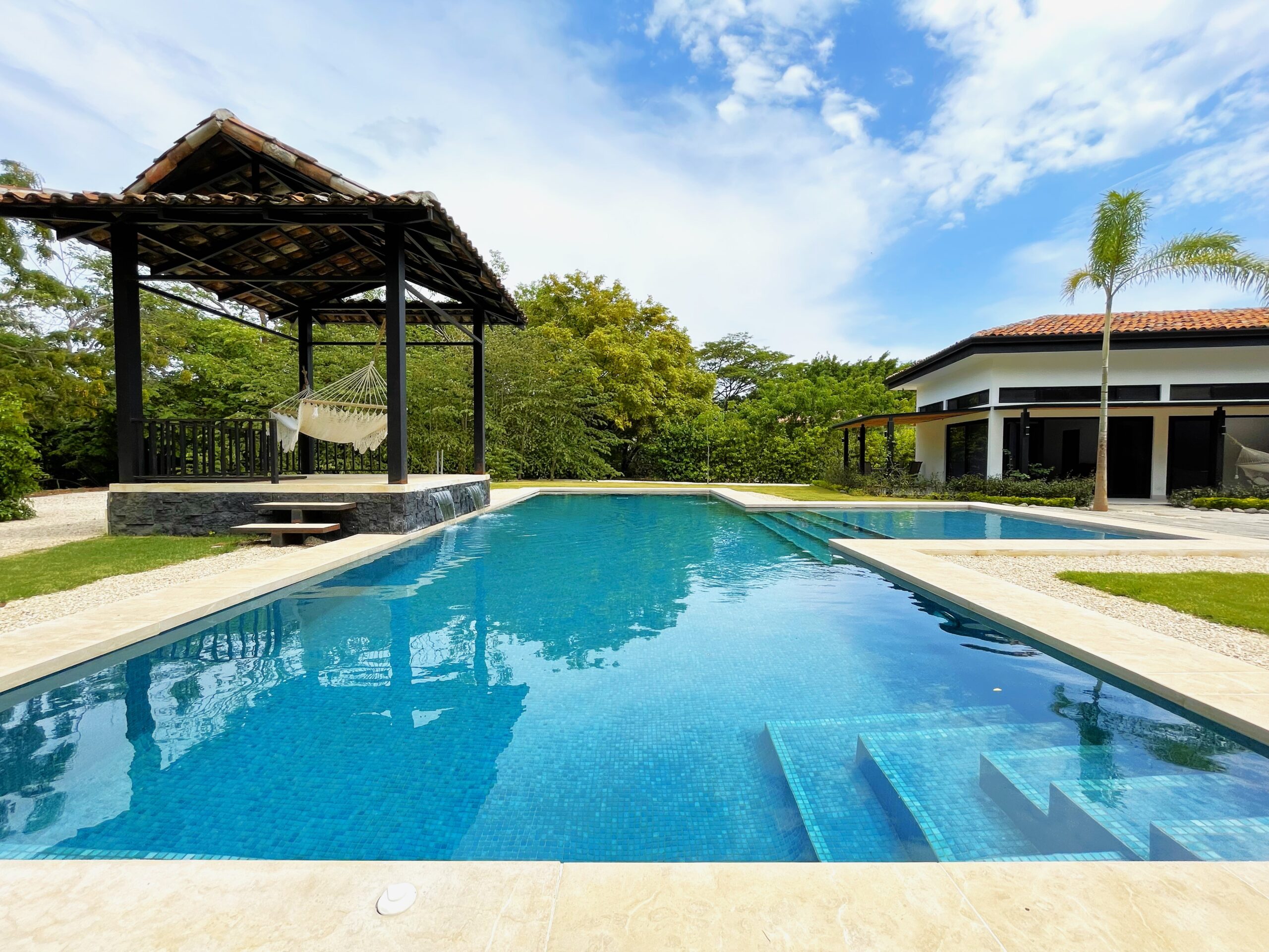 The house opens to a large terrace connected to a saltwater pool with a waterfall and an elevated rancho, perfect for relaxing with the sound of water and nature. Just steps away from Playa Bonita, exclusively accessible to Las Golondrinas residents, Casa Respiro offers the perfect balance between luxury and nature. Hacienda Pinilla, spanning 4500 acres, features surf beaches, a golf course, beach club, equestrian center, cycling trails, and the JW Marriott, creating an ideal setting to enjoy Costa Rican life by the Pacific.