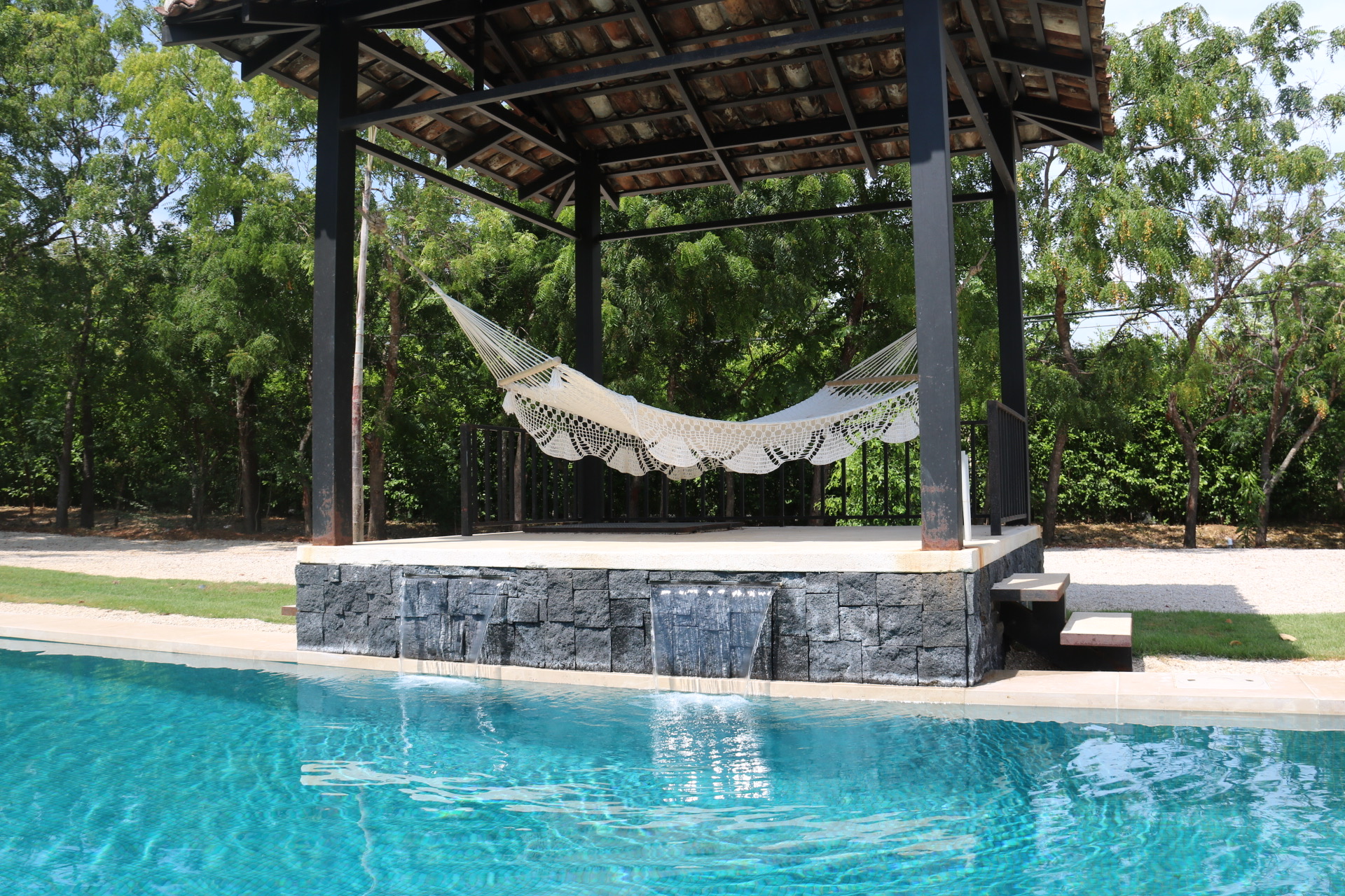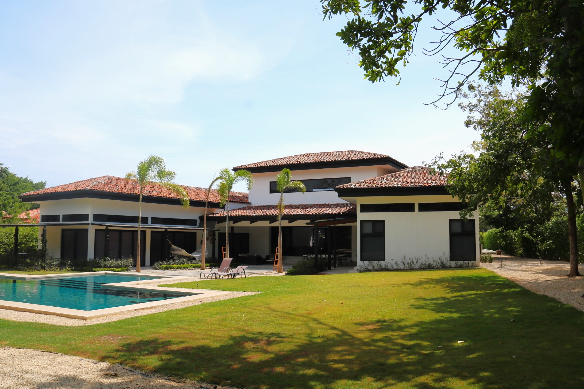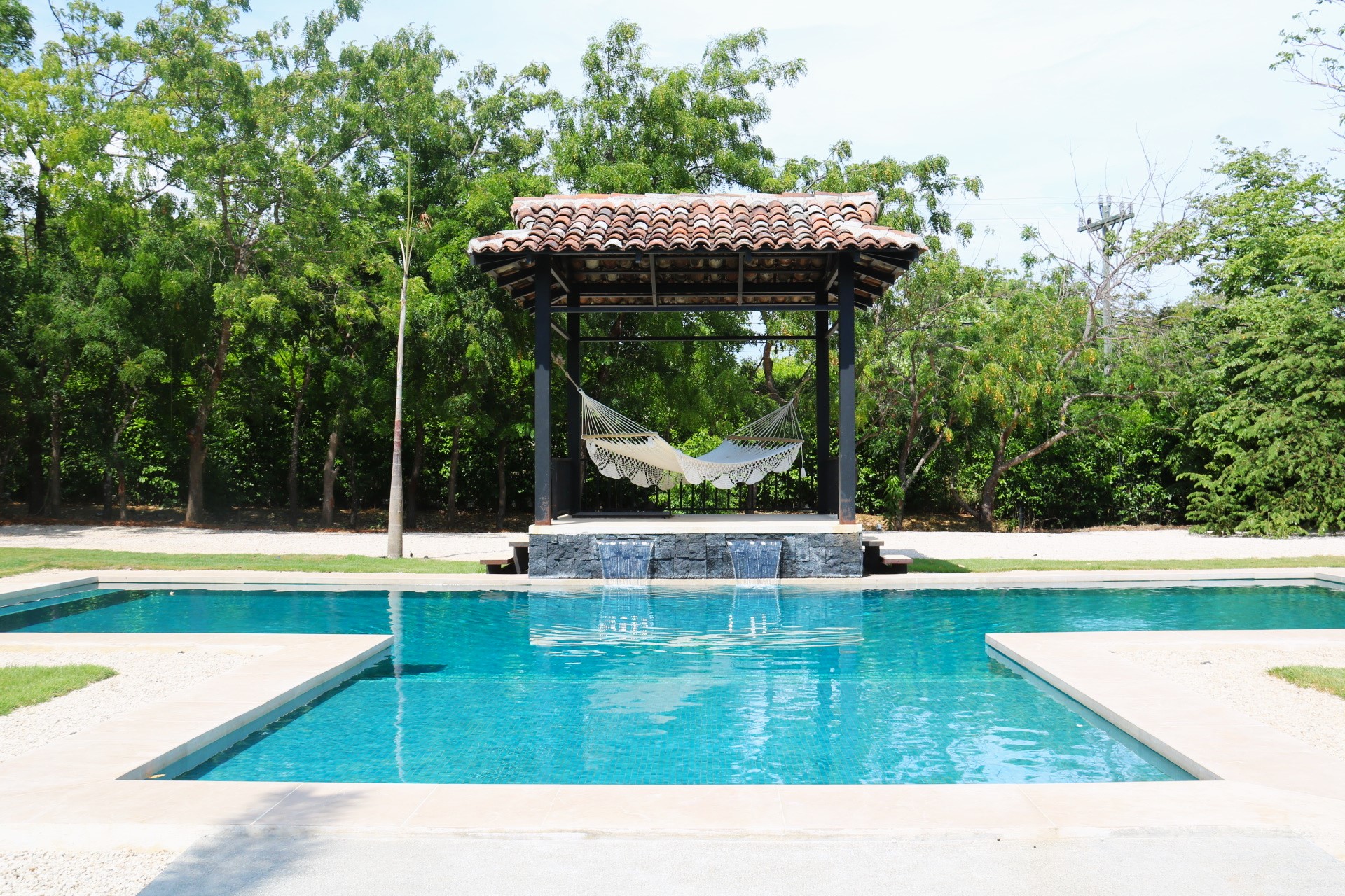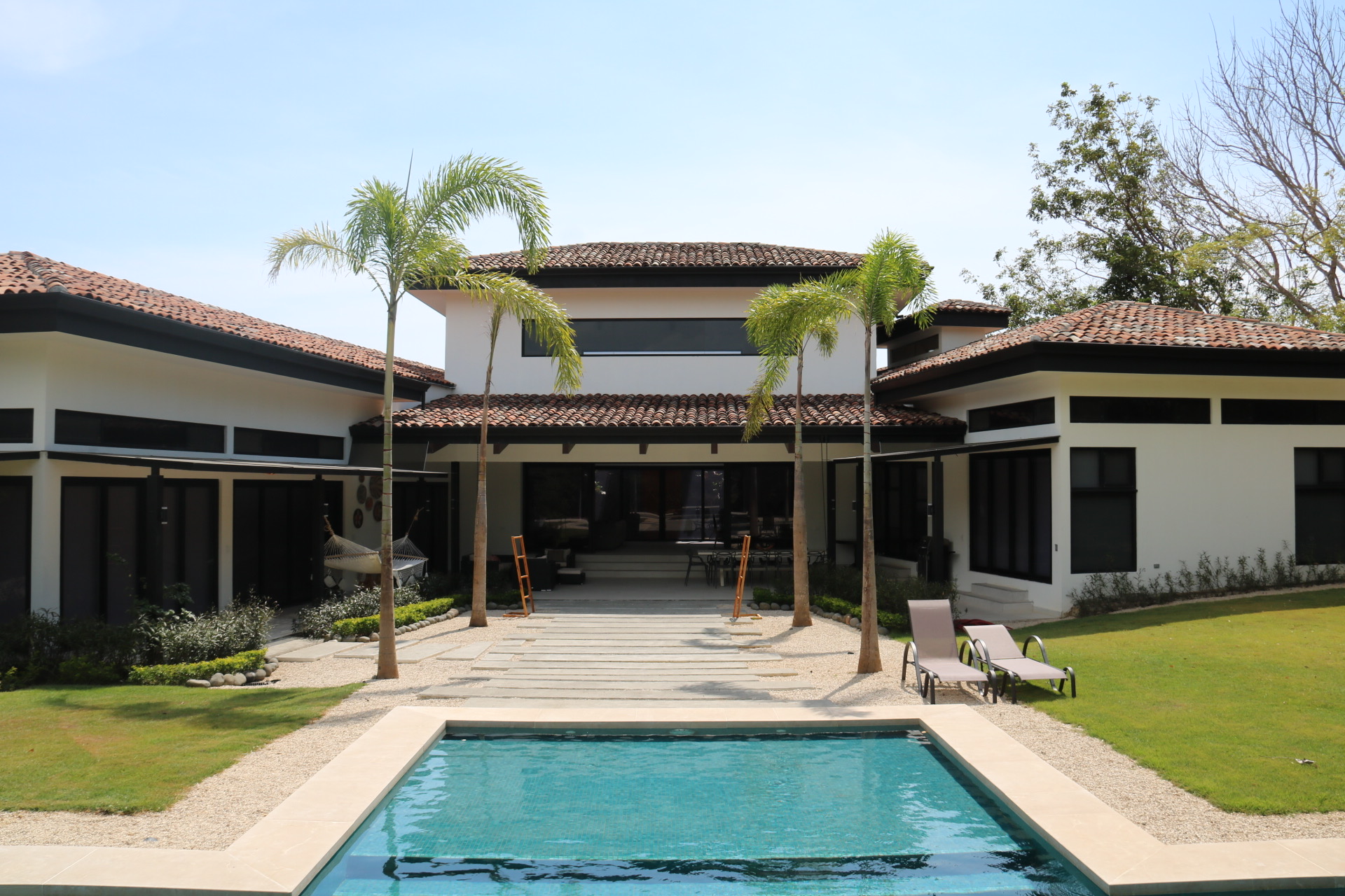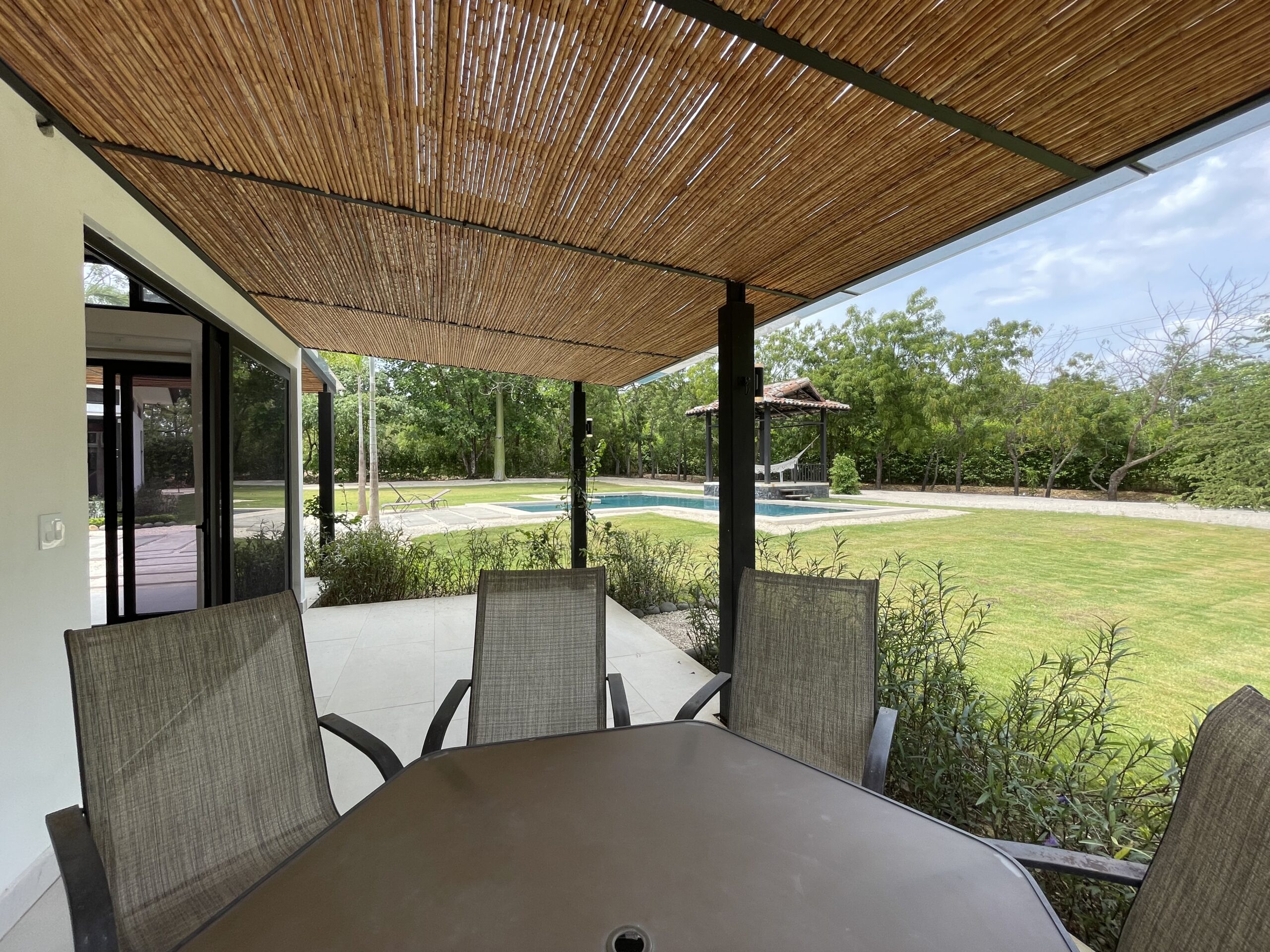 The house opens to a large terrace connected to a saltwater pool with a waterfall and an elevated rancho, perfect for relaxing with the sound of water and nature. Just steps away from Playa Bonita, exclusively accessible to Las Golondrinas residents, Casa Respiro offers the perfect balance between luxury and nature. Hacienda Pinilla, spanning 4500 acres, features surf beaches, a golf course, beach club, equestrian center, cycling trails, and the JW Marriott, creating an ideal setting to enjoy Costa Rican life by the Pacific.