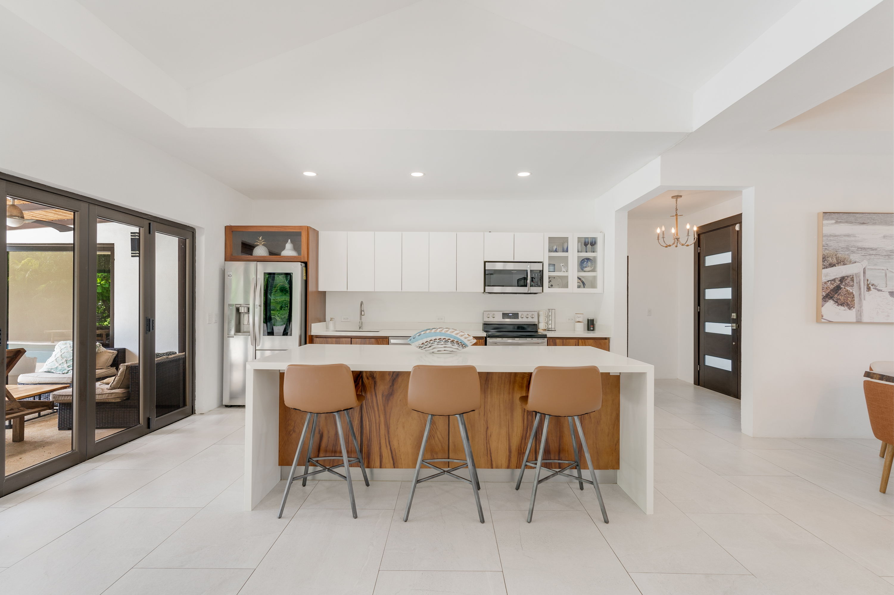 As you arrive, a magnificent tree welcomes you, setting the tone for the tranquil and private setting. Step inside and you’re immediately greeted by open-concept indoor-outdoor living. Expansive glass doors slide away to connect the sleek interior to a lush backyard retreat, creating a perfect flow for entertaining.