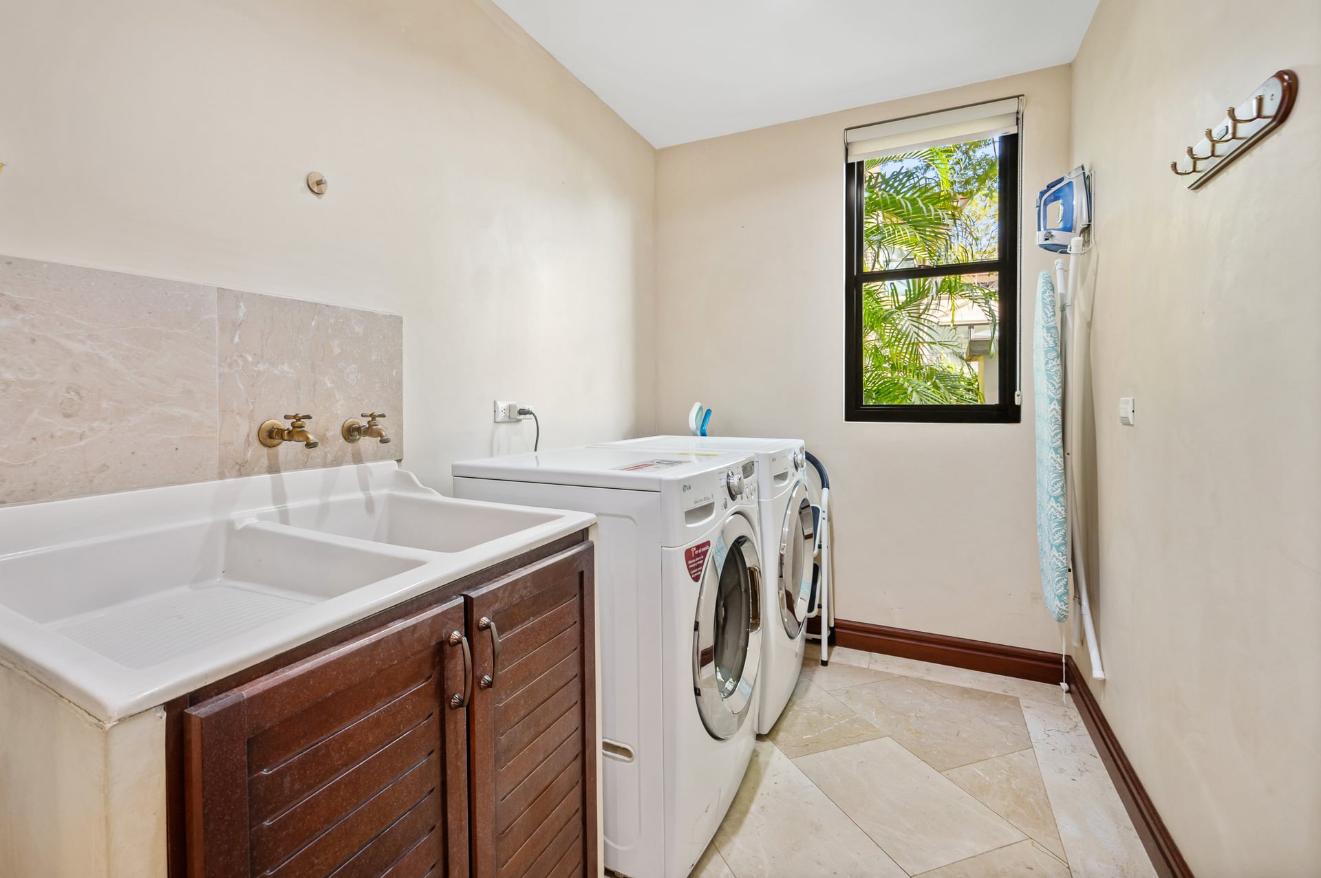 Outdoors, the meticulously maintained garden is filled with mature tropical landscaping, while spacious shaded terraces offer year-round comfort.