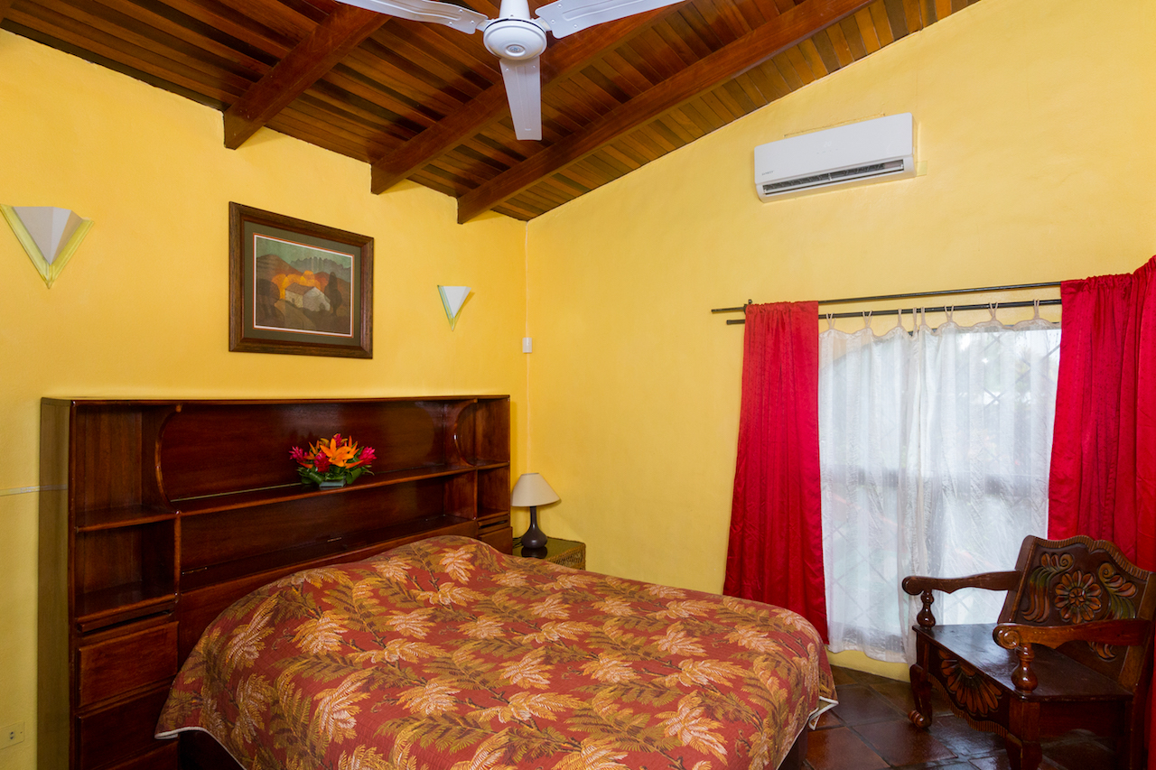 The home has four bedrooms. The Master has a an adjoining bath. There is a second bedroom is on the same level as the master. There is also a second bath on this level. A third bedroom is off the main level. The fourth bedroom is off the pool level and has its own bath. All bedrooms and the main living area are air conditioned. There are also ceiling fans in each area.