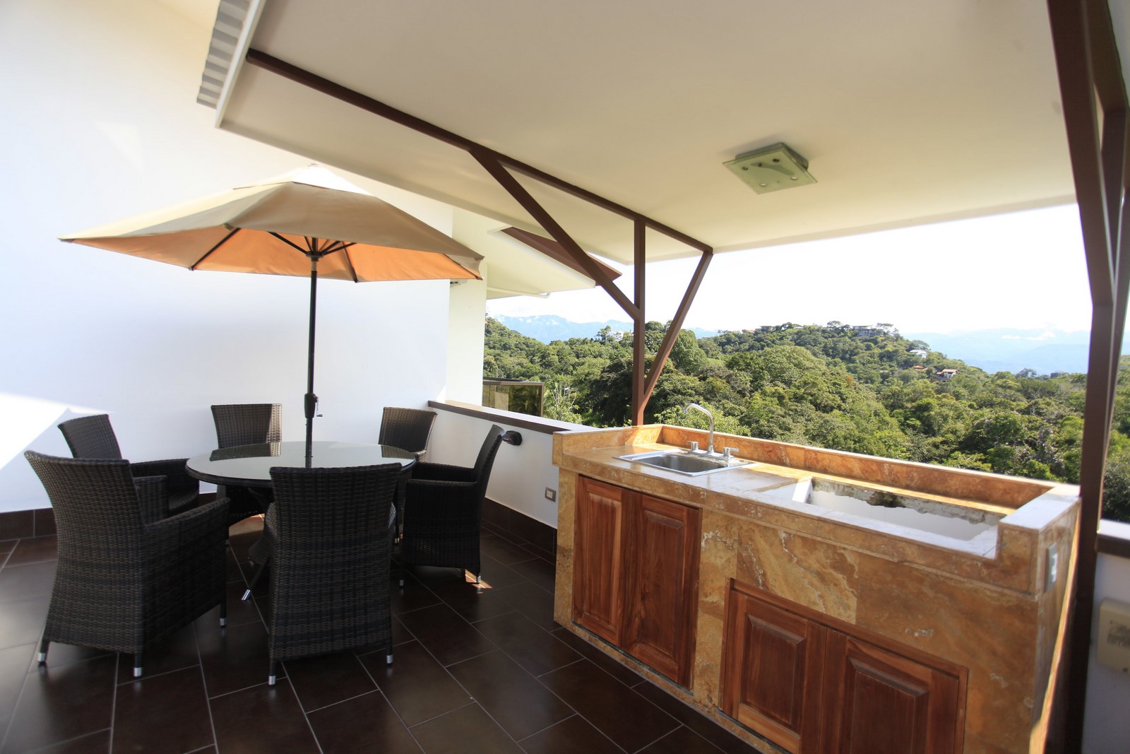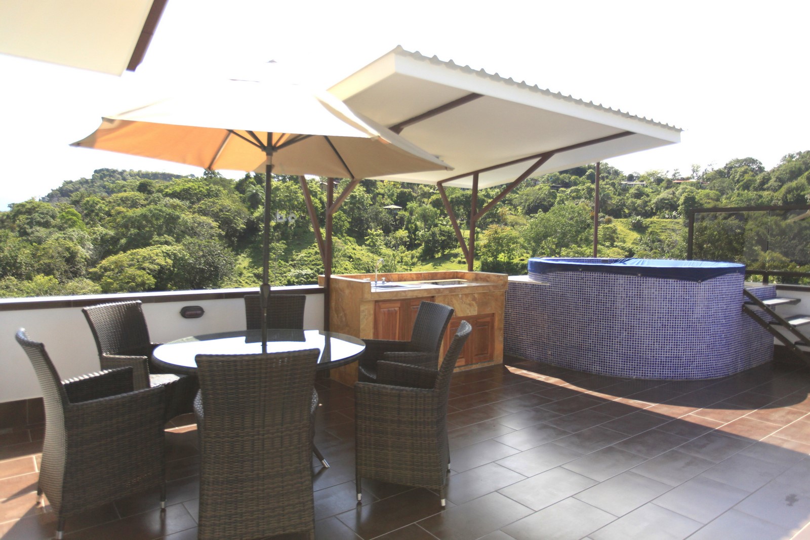 The property right now is functioning as two separate apartments, but also has the potential to easily function as a four bedroom luxury rental income producing property. The rooftop terrace has a large Jacuzzi and the property has room for constructing a swimming pool. The home is very private and secure and also is within walking distance to one of Manuel Antonio’s well know Ronny’s place.