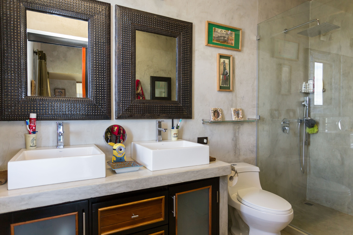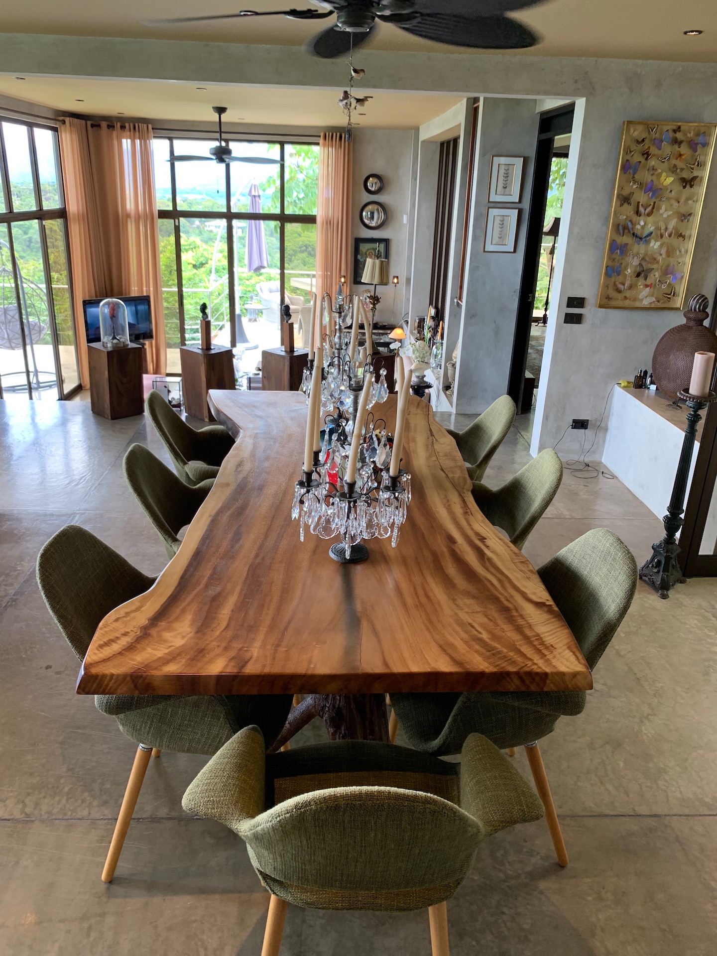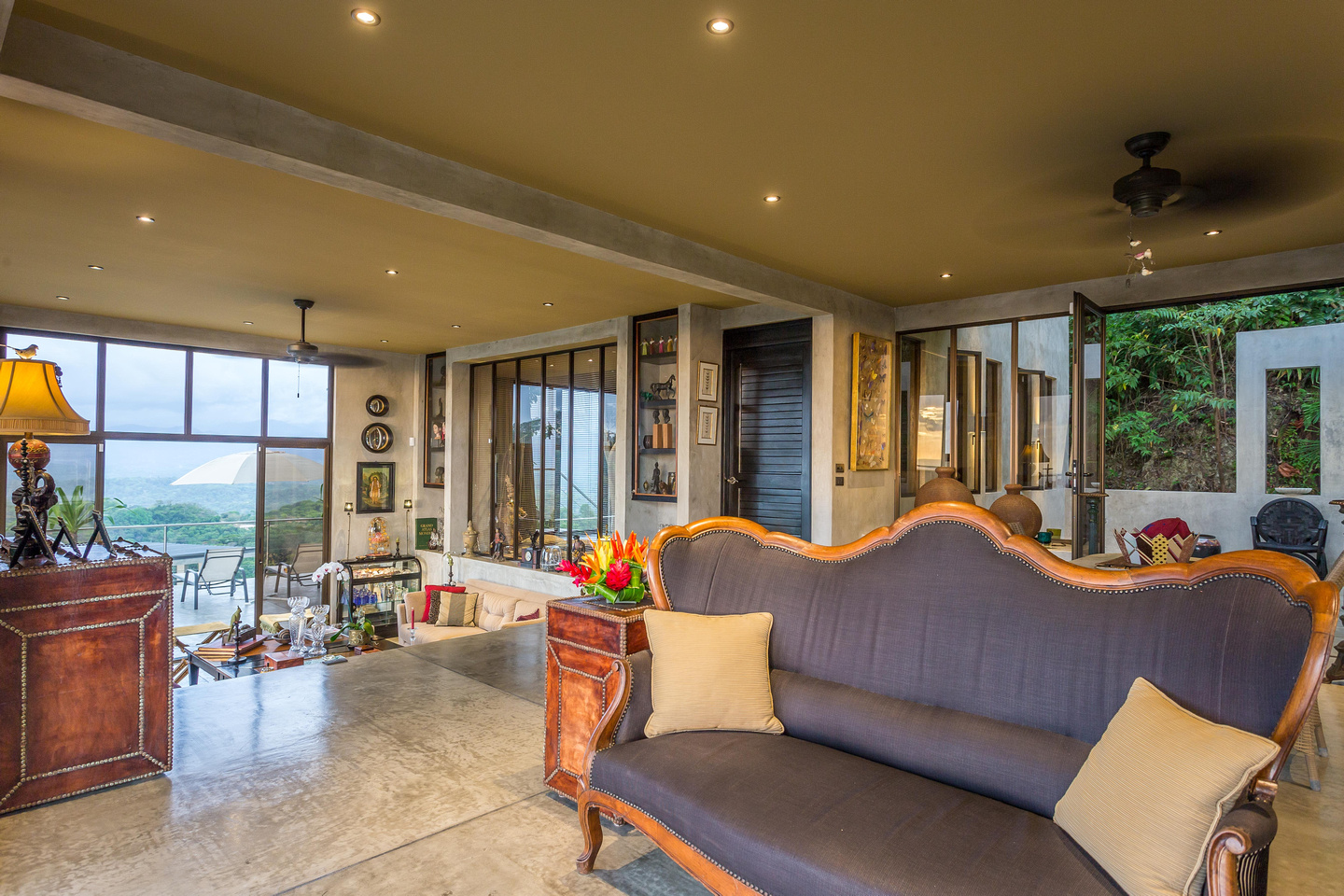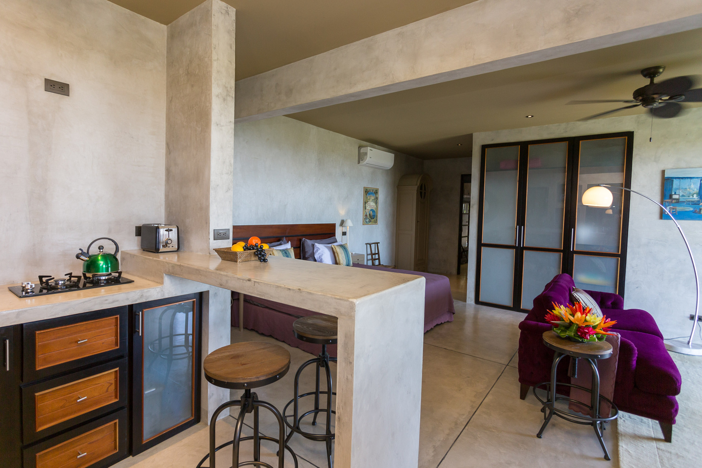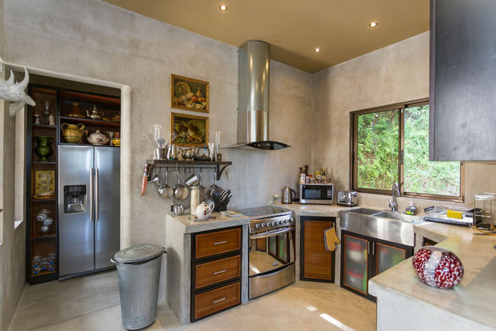 Casa Luna de Plata was built by two world-renowned French designers. Its architecture is perfectly suited to its purpose and every detail shows thoughtfulness and refinement. The home has four suites within a clever design where one can rent all four units separately or combine them in any grouping to best suit a vacationer’s needs. Interior stairs connect all the units to allow the whole house to connect as one but doors provide separation if needed. Exterior stairs offer separate units access to the deck and infinity pool. Furnishings from all over the world combine beautifully to create a most magical effect of old-world charm set in a modern environment with Venetian concrete finishes. The decoration is charming, eclectic, European, exquisite and abounds with rich colours and is the very definition of luxury.