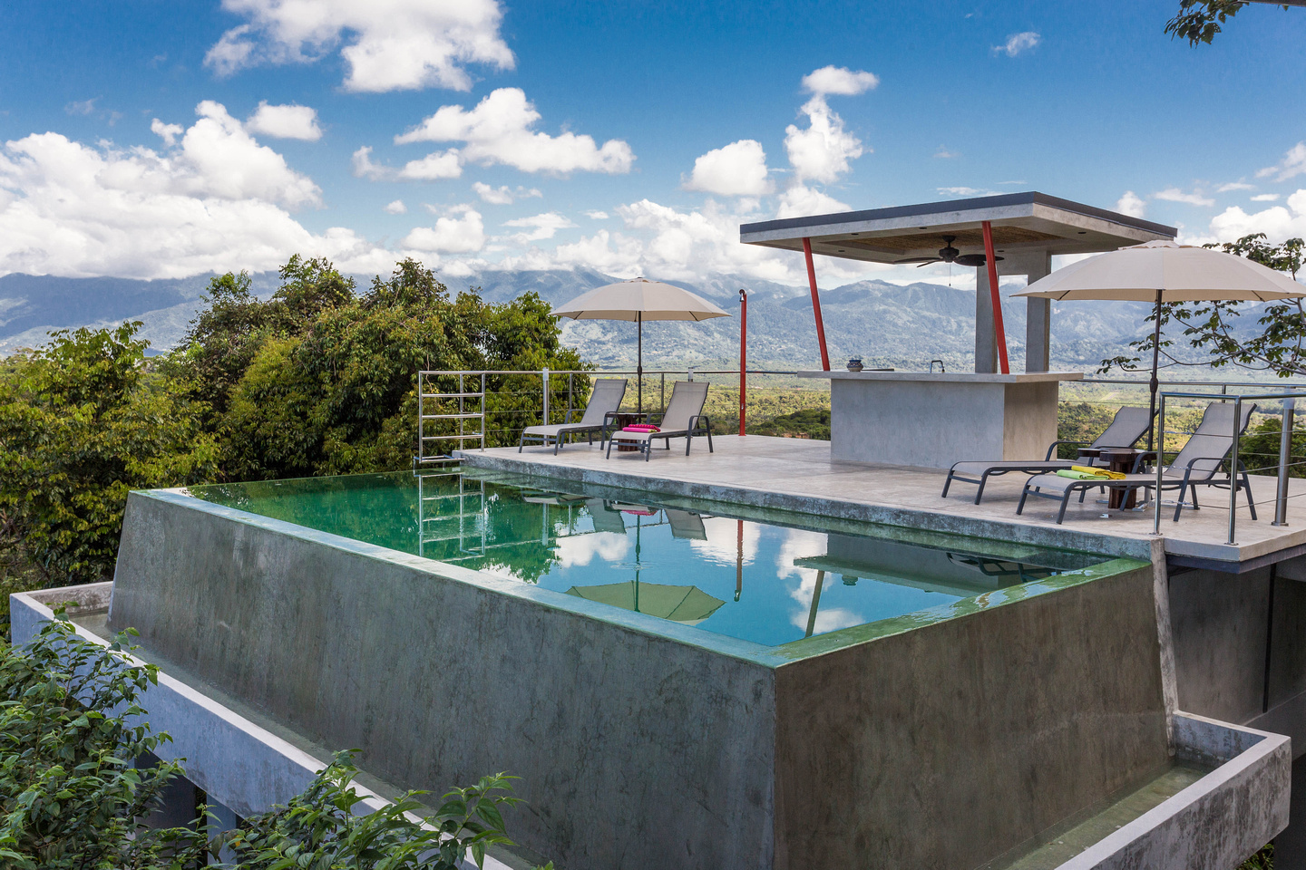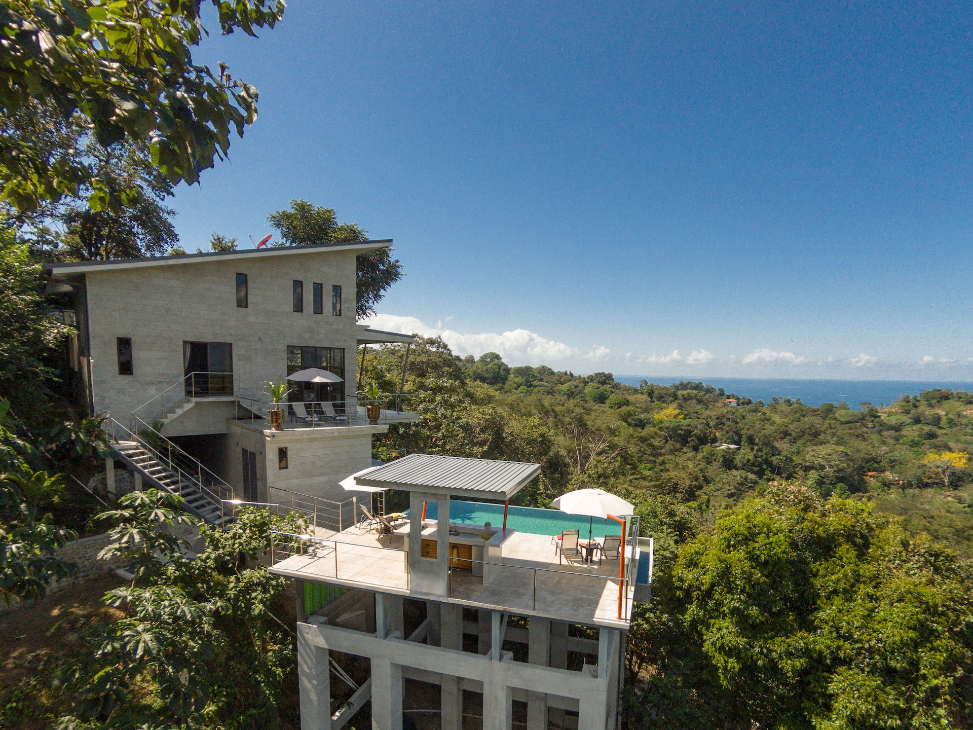 Superlatives lack meaning when describing this singular, 4 bedroom /4.5 bathroom home. Perched high atop the hill of Valle Pura Vida, overlooking Manuel Antonio, Quepos, El Salto and the road to Dominical, one first takes in the glorious 270-degree view. Unlike any other in the area, Casa Luna de Plata offers an unimpeded, wrap around view of the ocean, its coast, the Cerro Nara Mountains and jungle below. Oriented to the west and east, sunrise and sunset are a daily joy.
