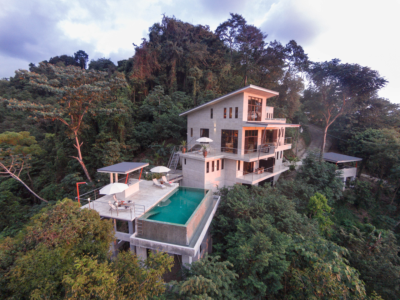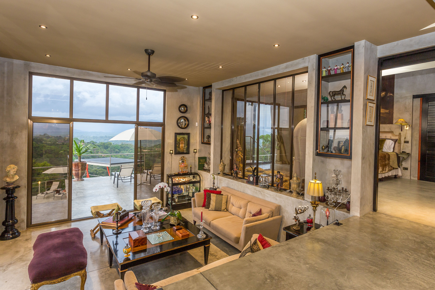 Downstairs are two additional side-by-side studio suites. Again, design is employed cleverly allowing for these suites to be completely separate or to be combined via the balcony if so desired. Every room in the house has a picture-worthy vista.
