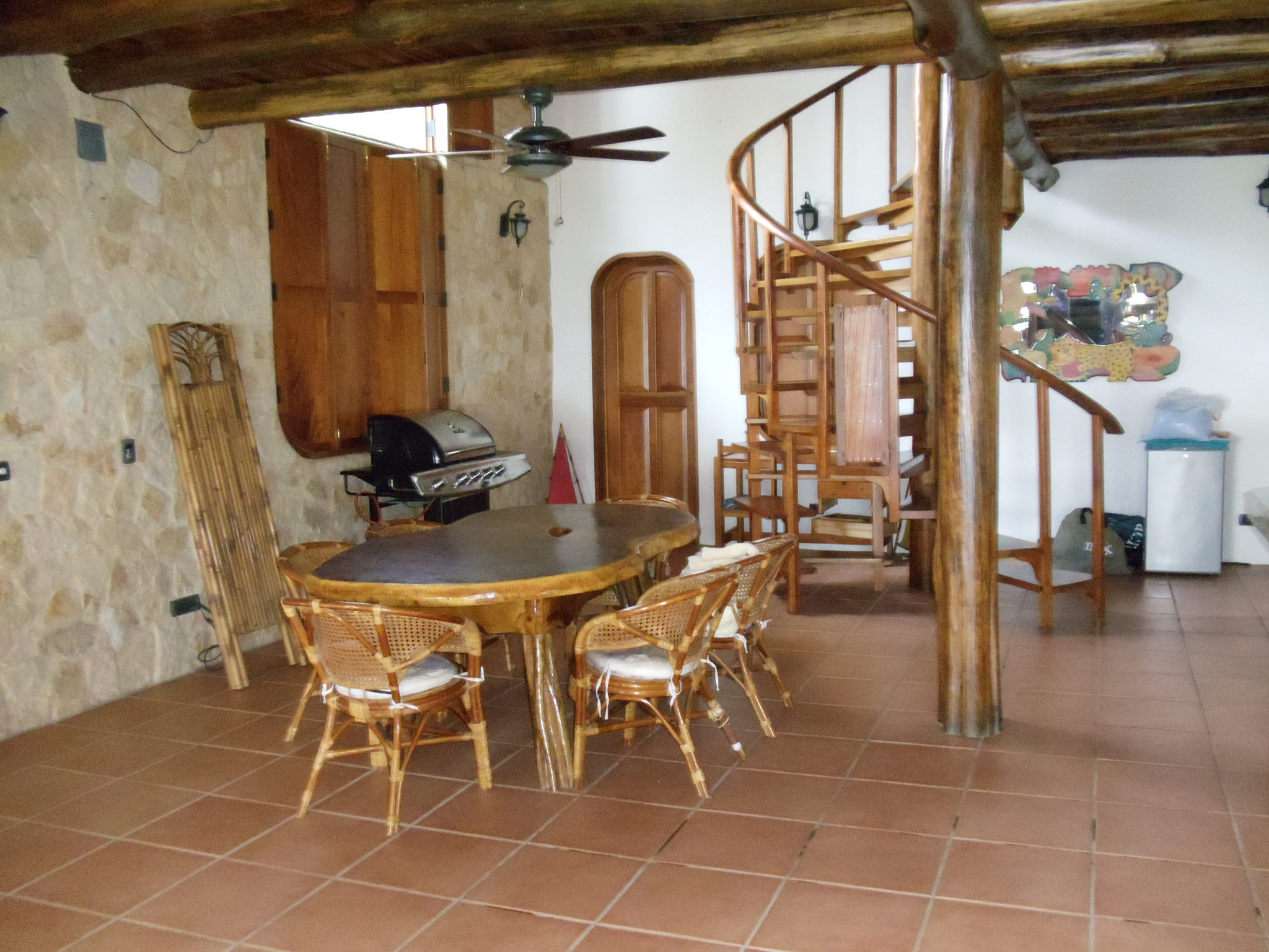 The living area is around 3500 square feet and has five different porches, most of which are under cover. There are a total of 4 bedrooms and 4 baths.