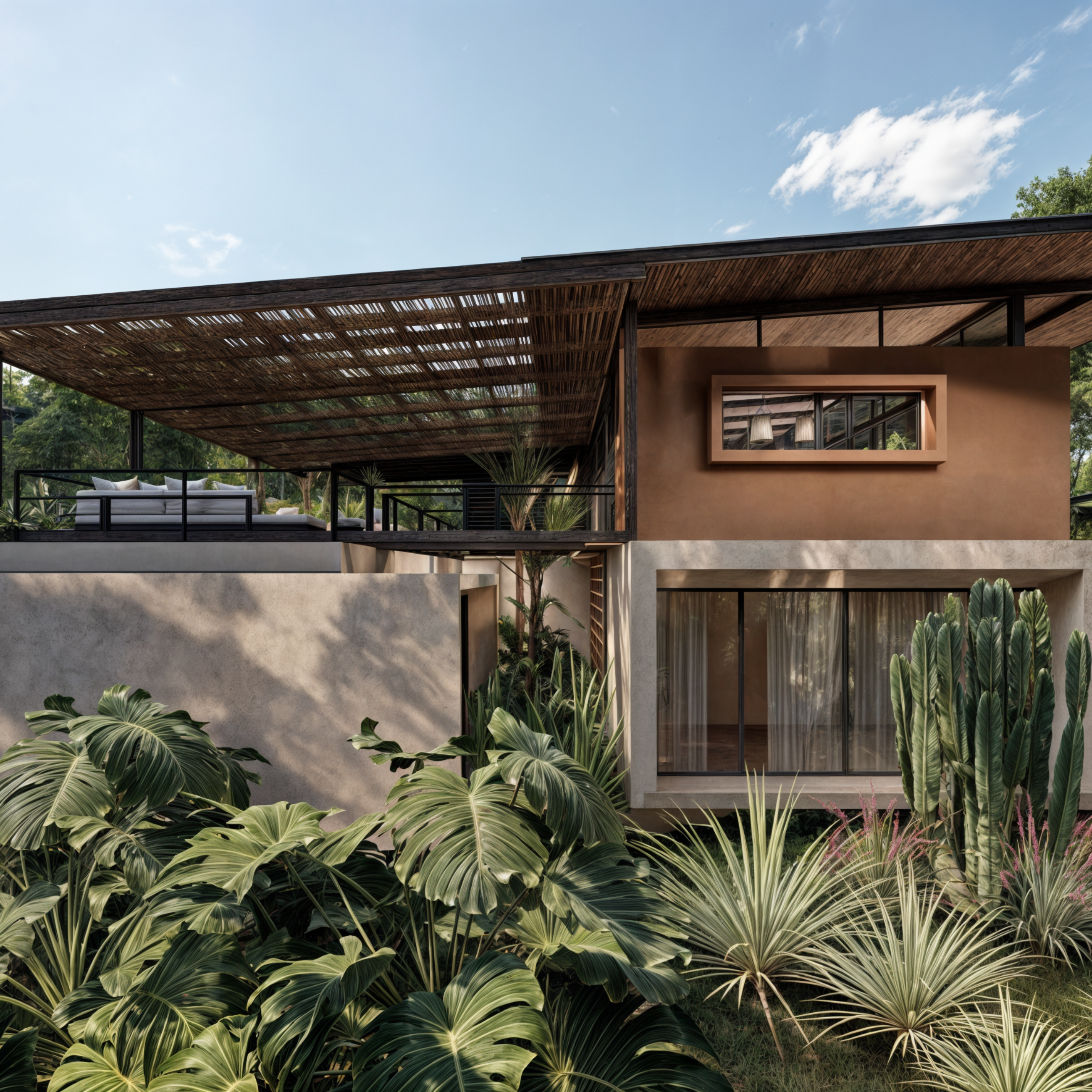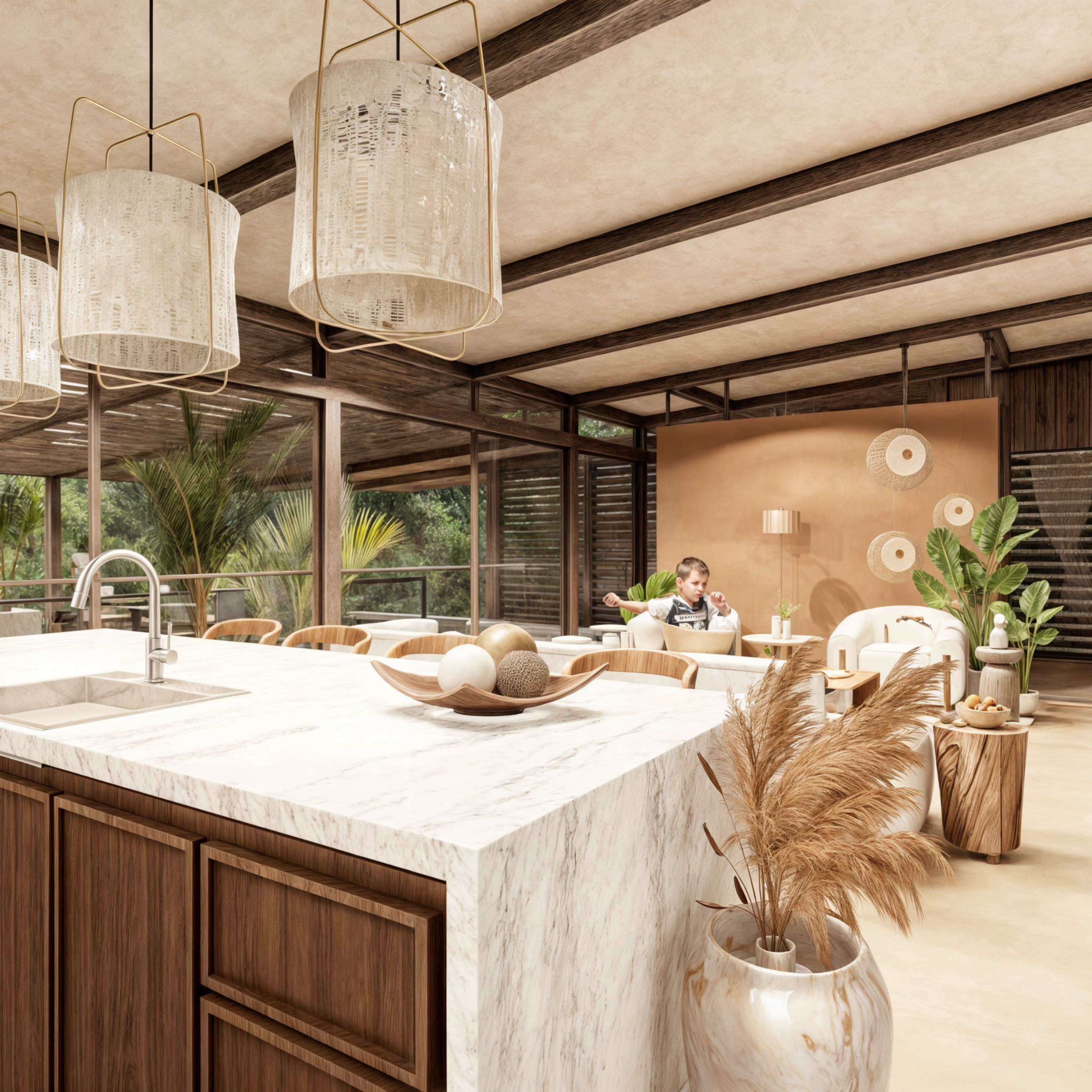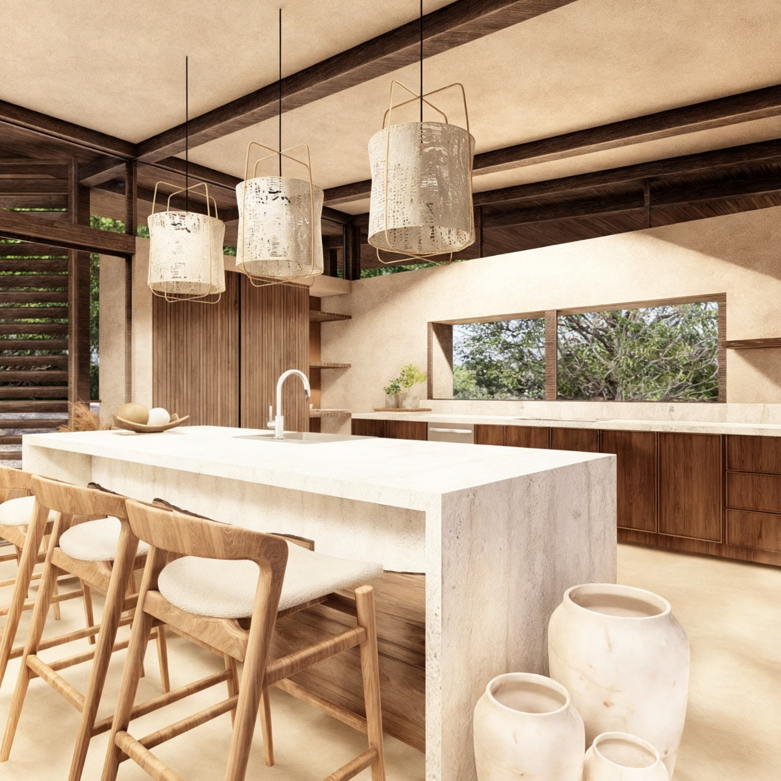 Jardín Eterno is thoughtfully designed to celebrate and blend with its natural surroundings. At the heart of the home lies a lush central garden—a serene sanctuary that connects every space. This unique courtyard not only serves as a peaceful retreat but also enhances privacy, encourages natural airflow, and seamlessly integrates indoor and outdoor living.