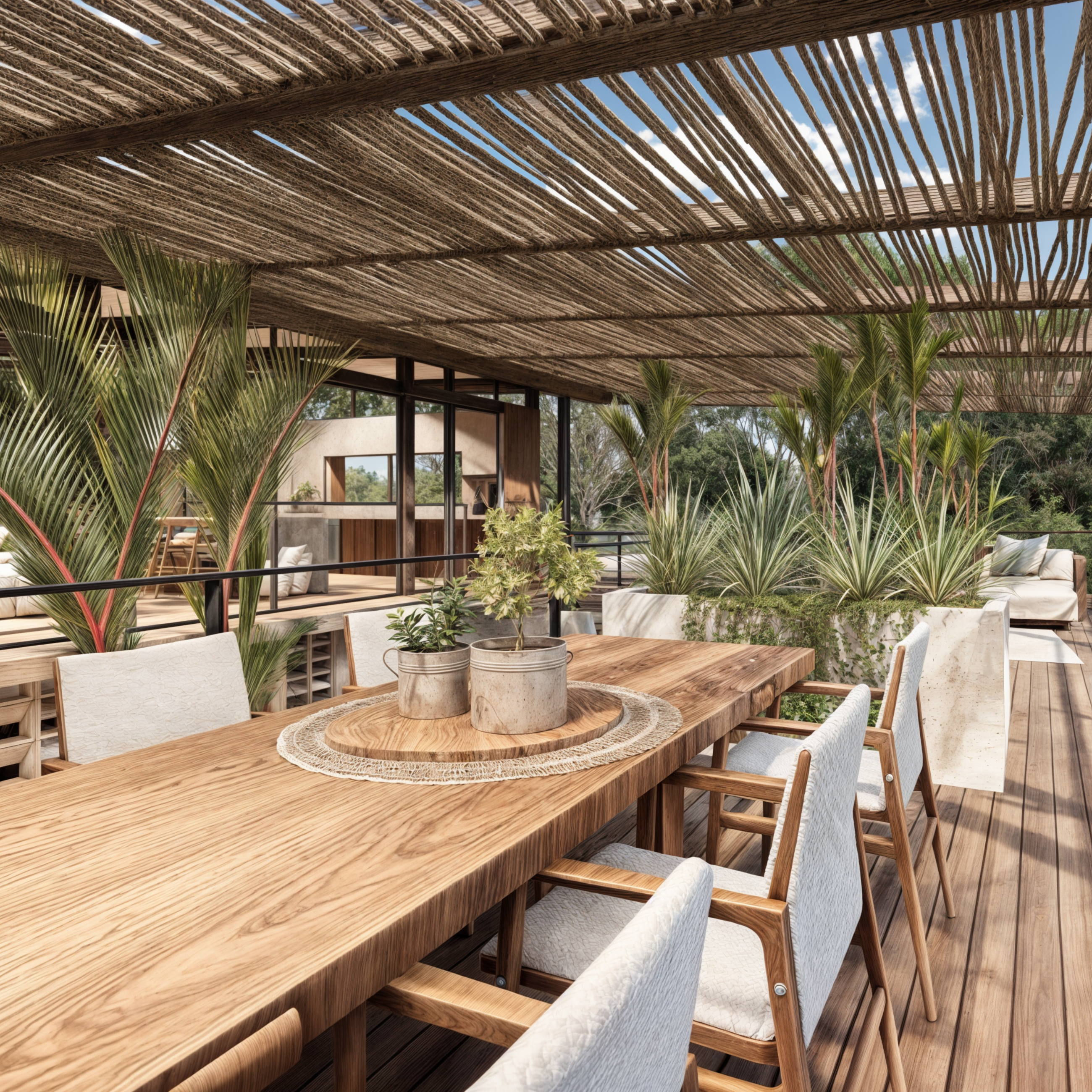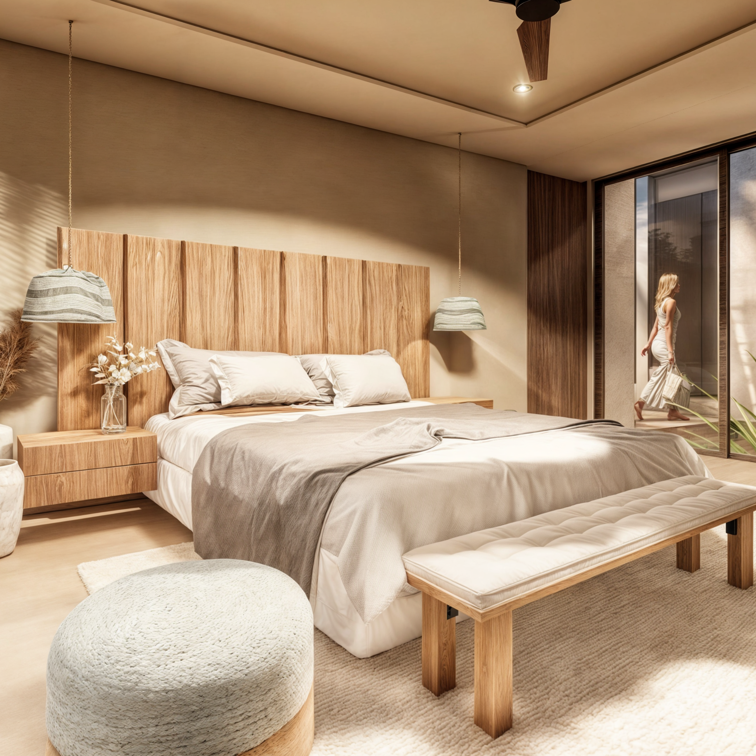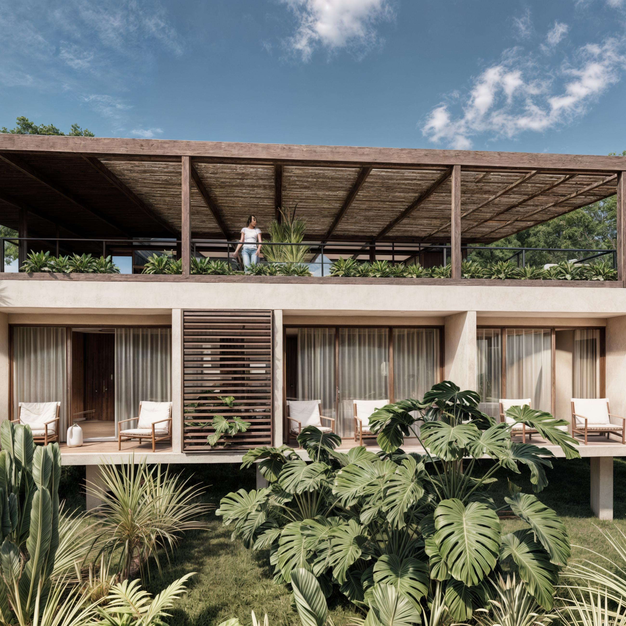 Jardín Eterno is thoughtfully designed to celebrate and blend with its natural surroundings. At the heart of the home lies a lush central garden—a serene sanctuary that connects every space. This unique courtyard not only serves as a peaceful retreat but also enhances privacy, encourages natural airflow, and seamlessly integrates indoor and outdoor living.