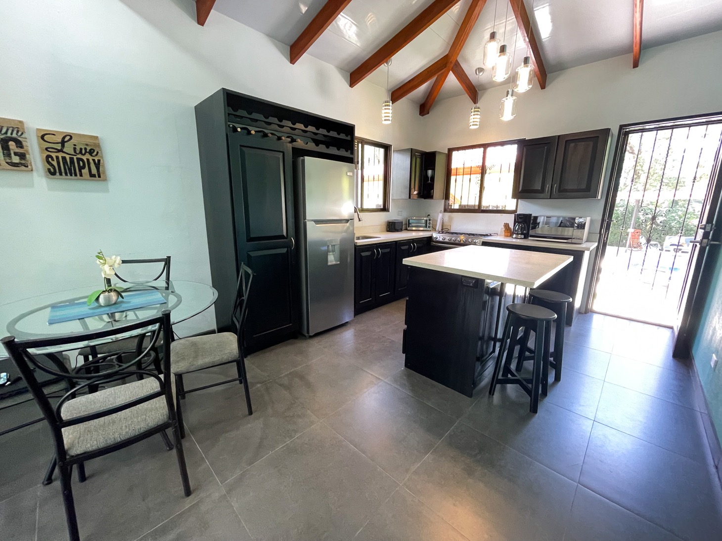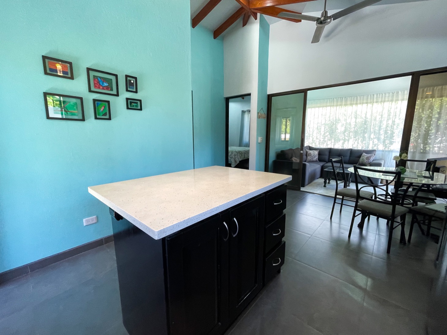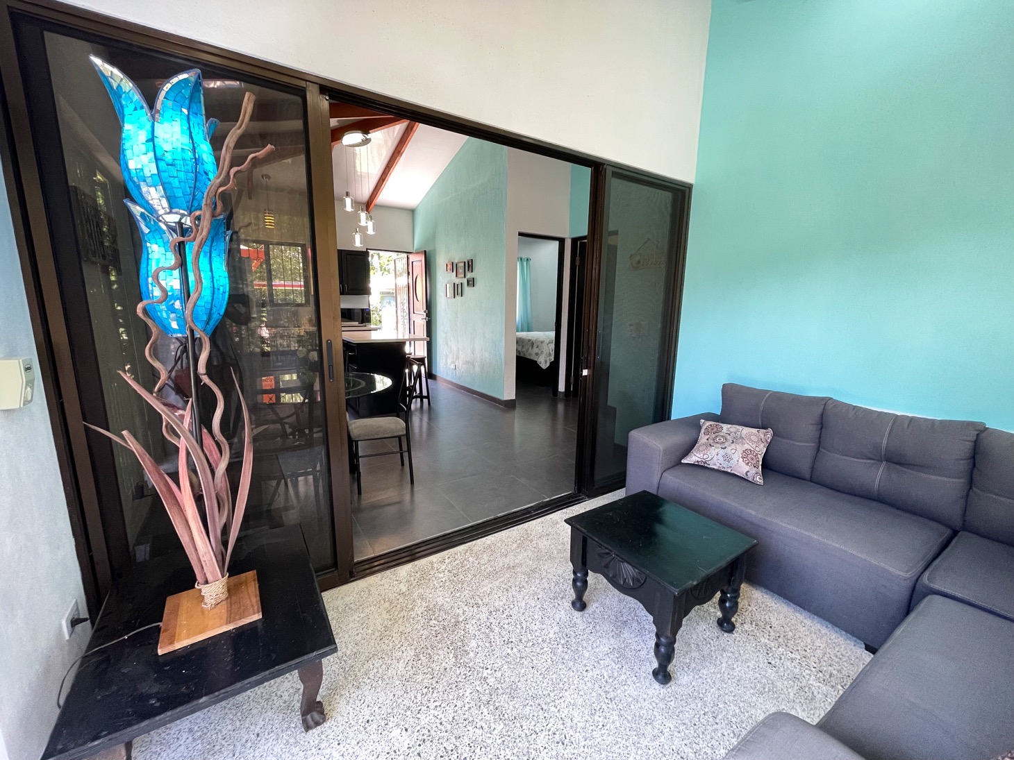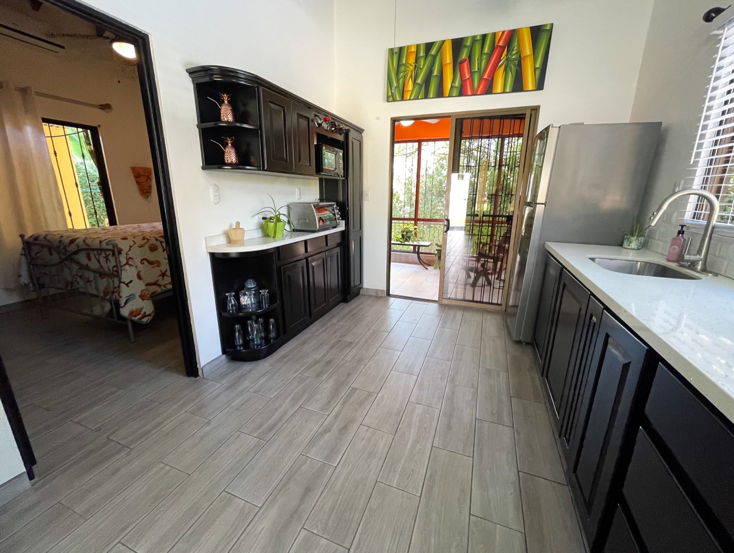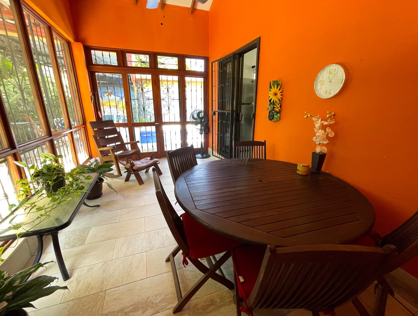 The layout of each of these homes is perfect for traveling families to share one property or for the owner to have the option to rent or host guests. Everything in these homes feels ample for housing multiple people in a comfortable setting. The newly-installed tiled pool is well-shaded and large enough to have a number of people enjoy it at once. And the surrounding terrace has comfortable seating for at least ten people, with a gorgeous, jungle-themed mural overlooking the scene.