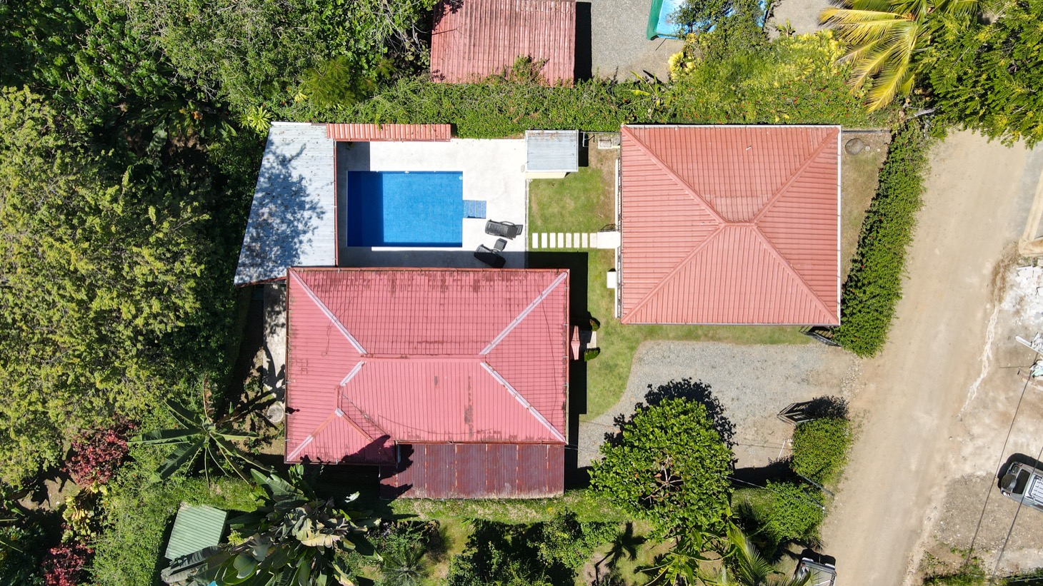 On the property are a handful of mature, fruiting plants, including almonds that bring scarlet macaws to visit, bananas, lemons, and limes. There is room to add a few more plants to the different garden spaces, adding even more abundance to this fruitful property.