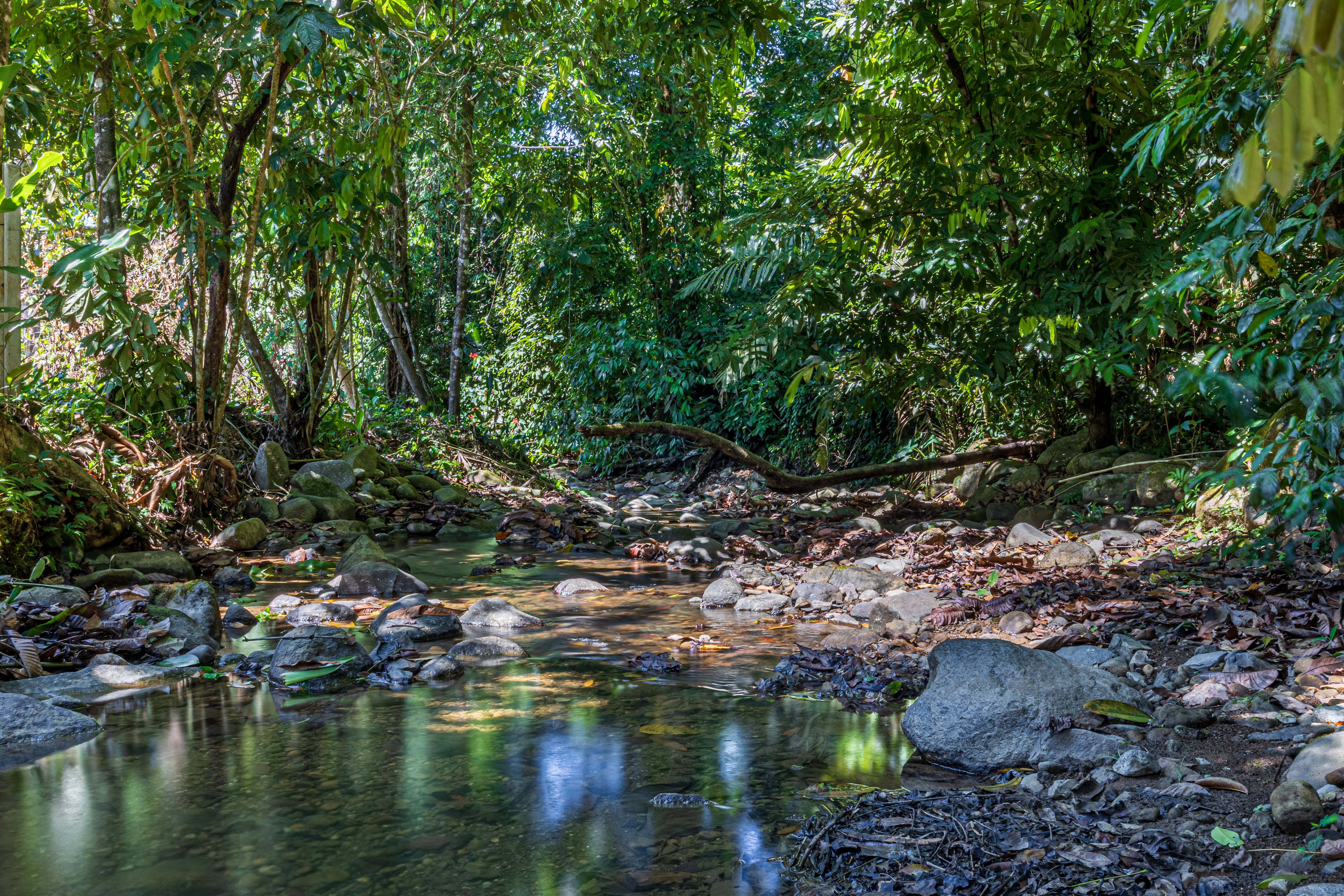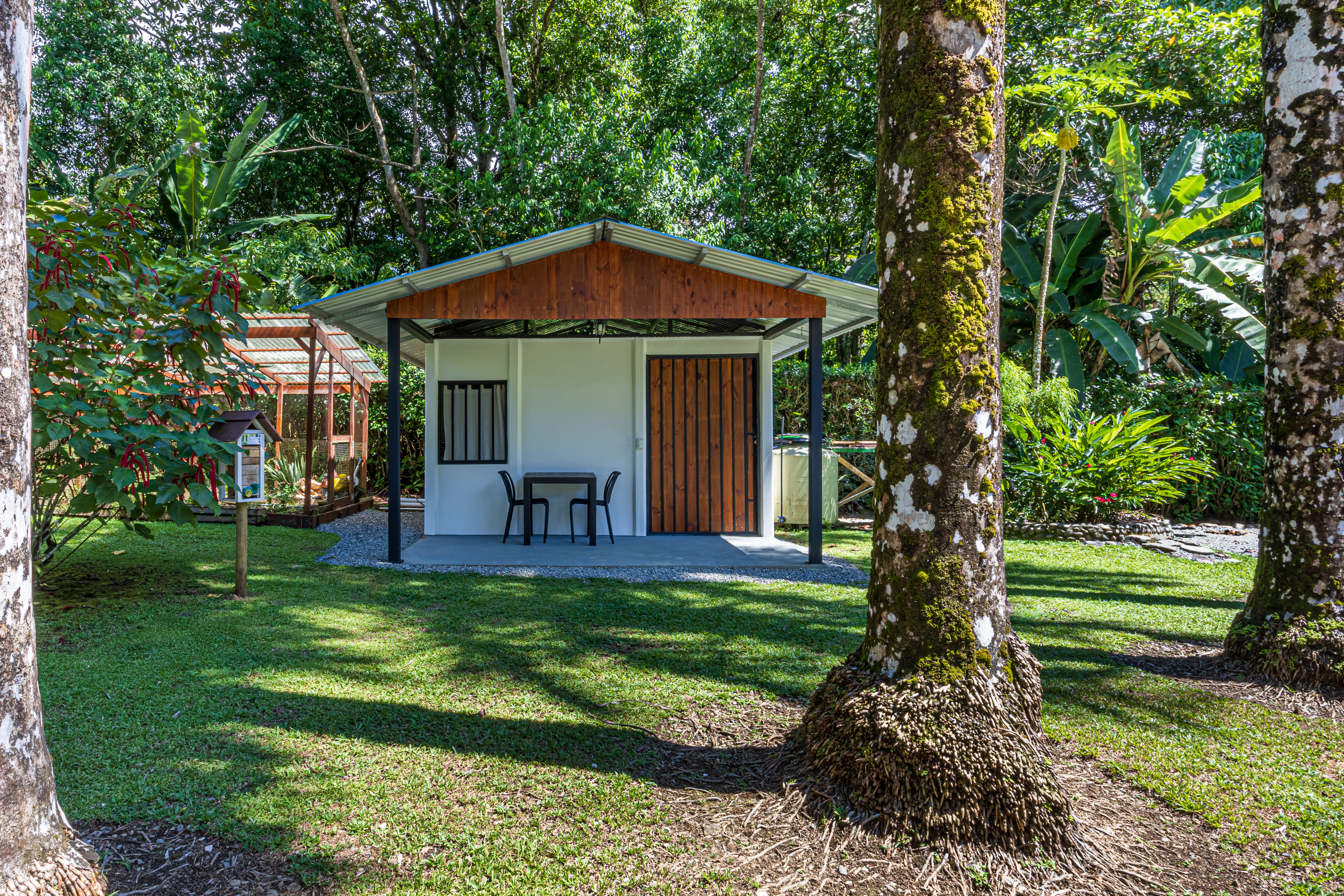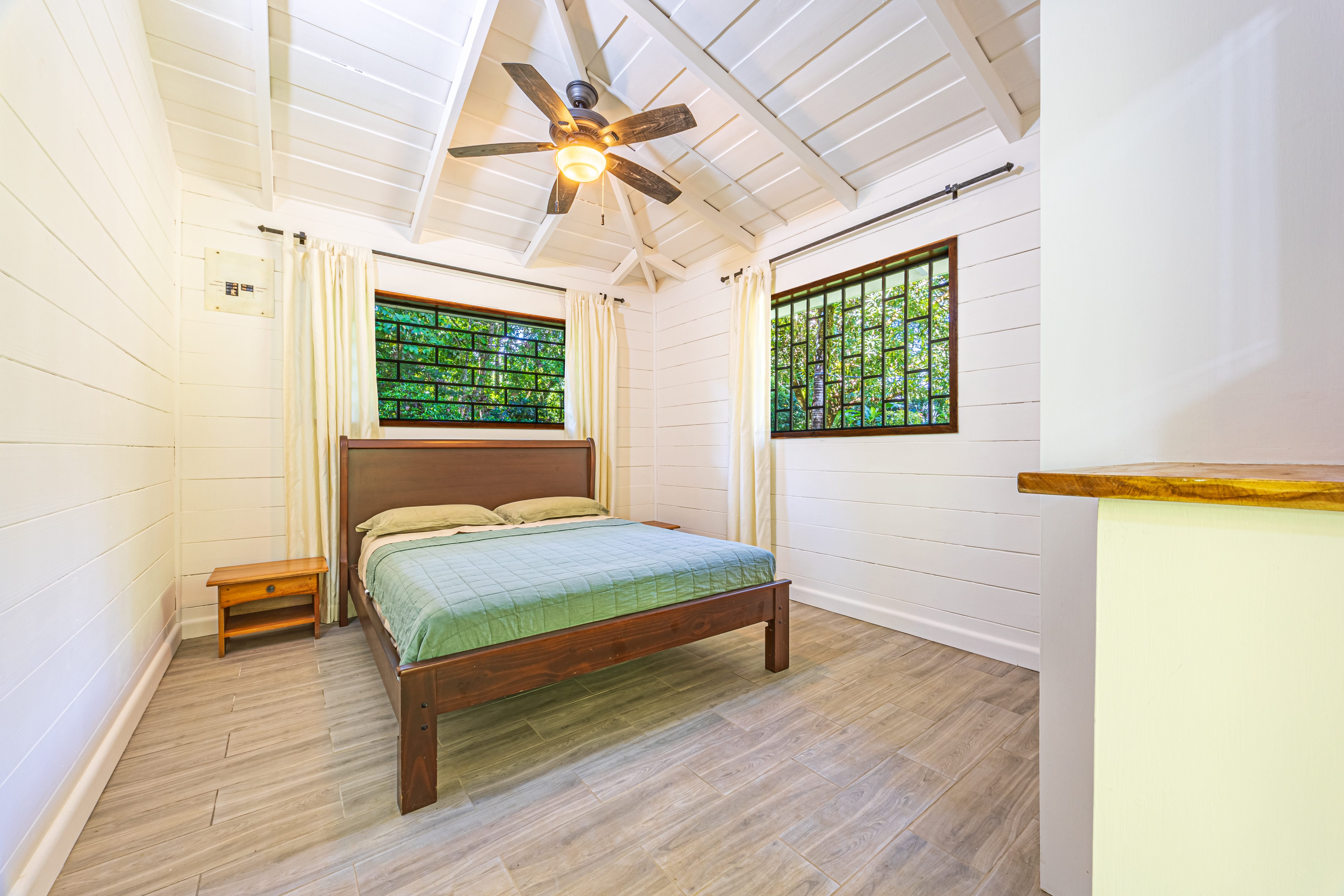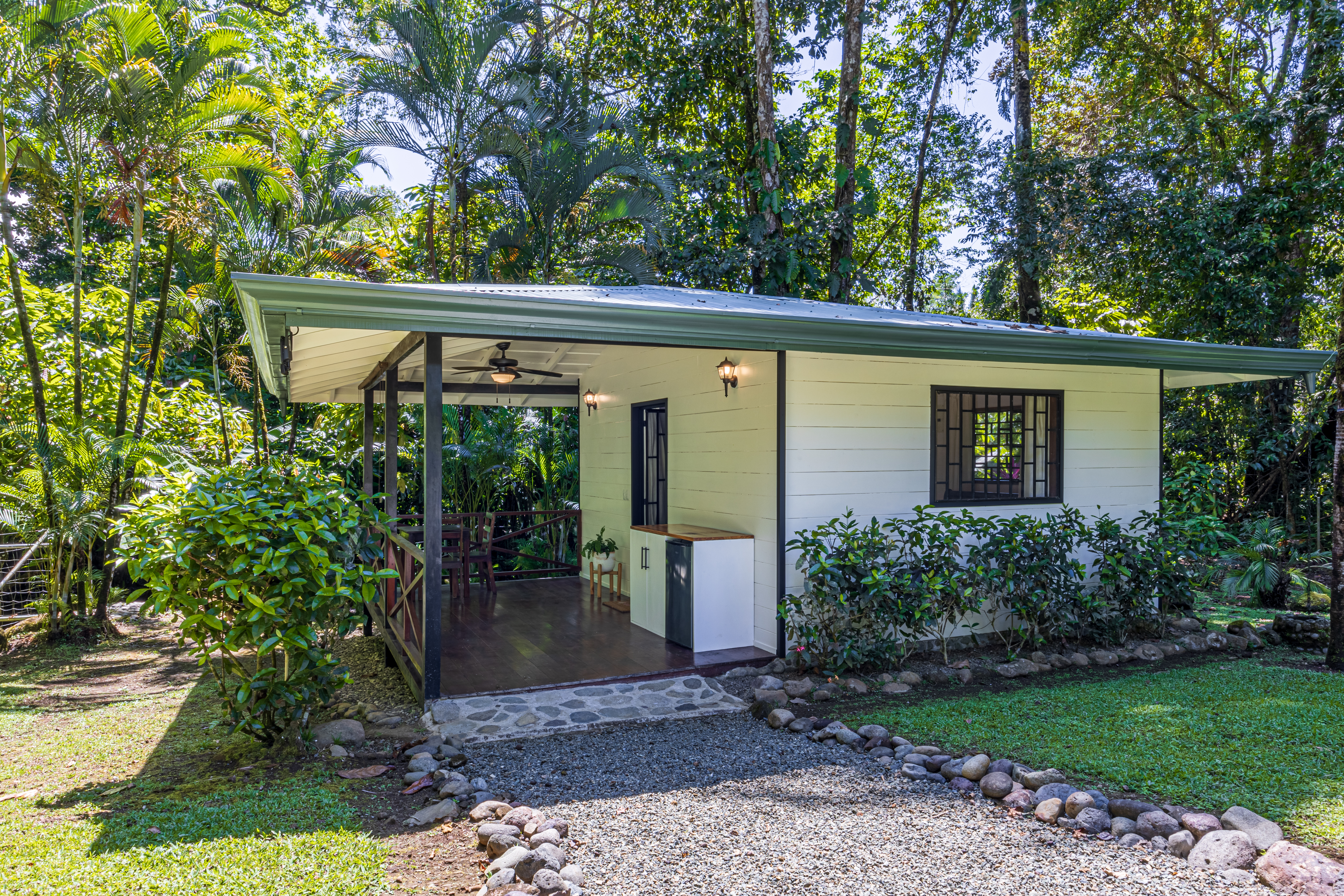 A giant, iconic palm tree-lined entrance (Casa Palmera) welcomes you into this fully fenced property, surrounded by lush jungle and bordering the Rio Balso. The organically maintained gardens are abundant with fruit trees, herbs, and a thriving Mariola beehive—all cultivated without sprays. A shade house provides the perfect space for nurturing plants and growing fresh produce.