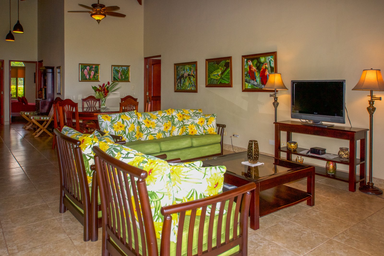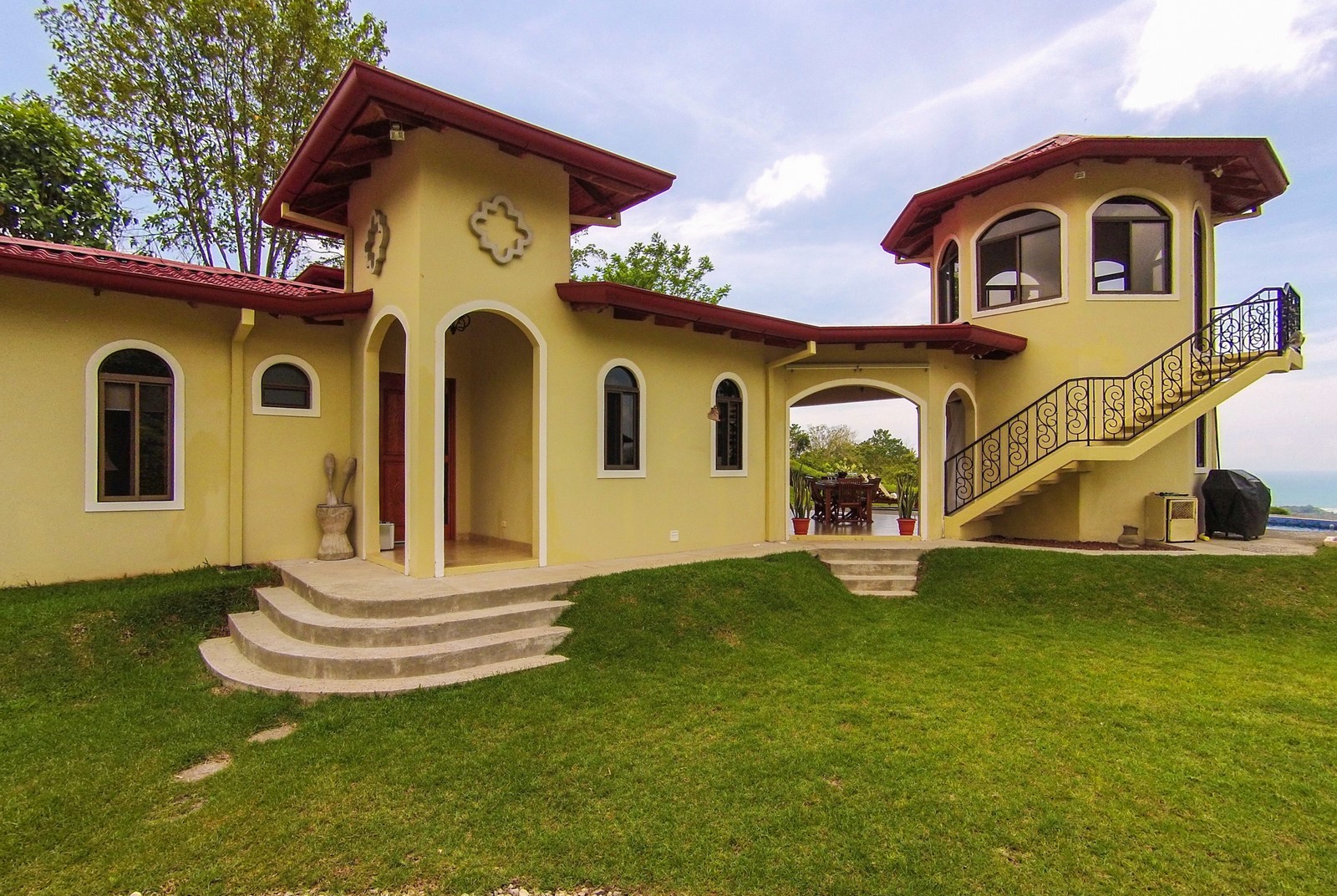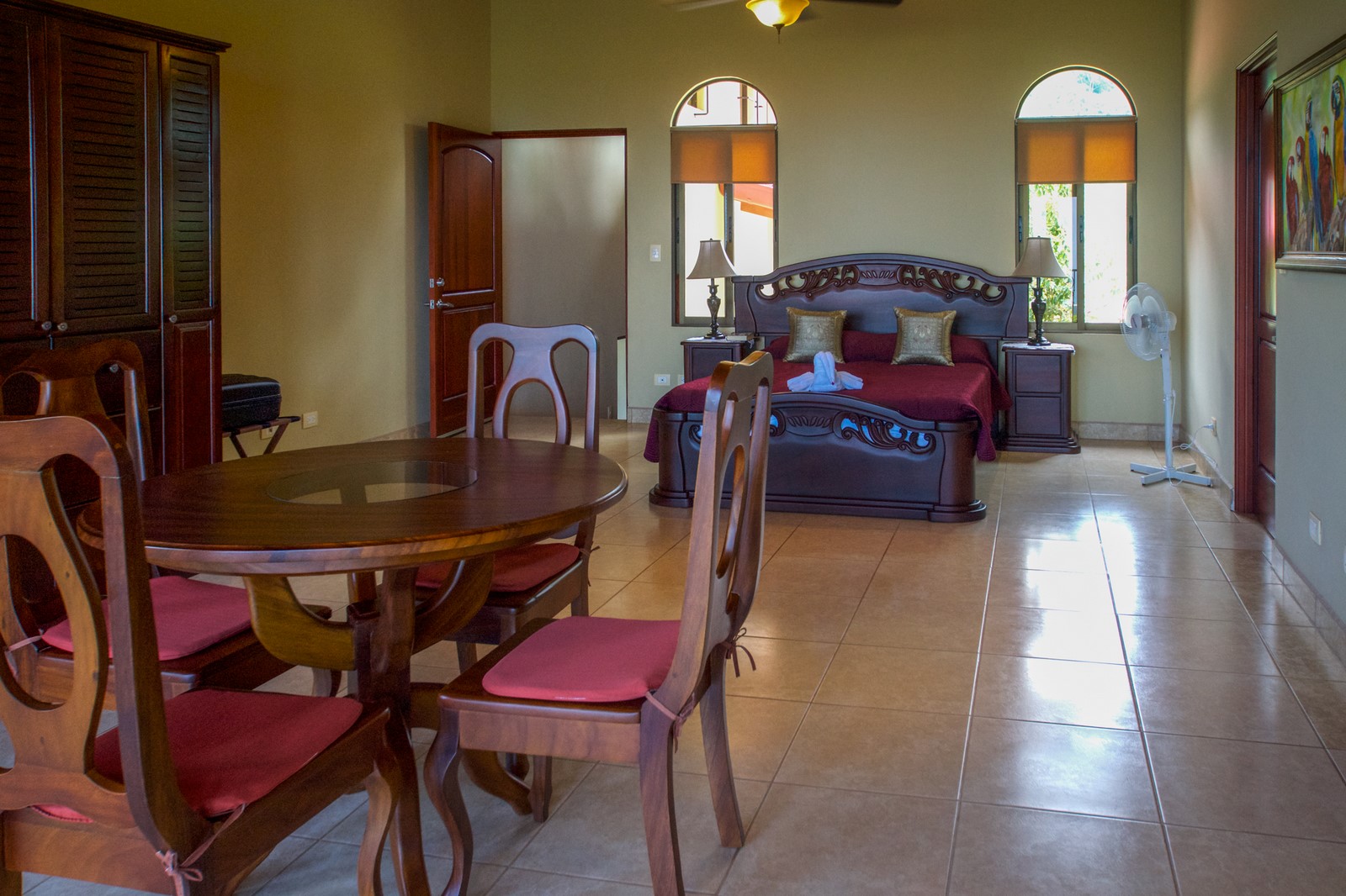 If you need to unwind or are searching for peace and tranquility, this property is right for you. Stay home and prepare your simple or gourmet meals in the main kitchen or if you prefer to be outdoors, an additional full kitchen is available in the octagonal rancho just off the large covered terrace by the pool. Dine indoors at the beautiful round hand-carved hardwood table, or outdoors at the teak wood table with seating for eight.