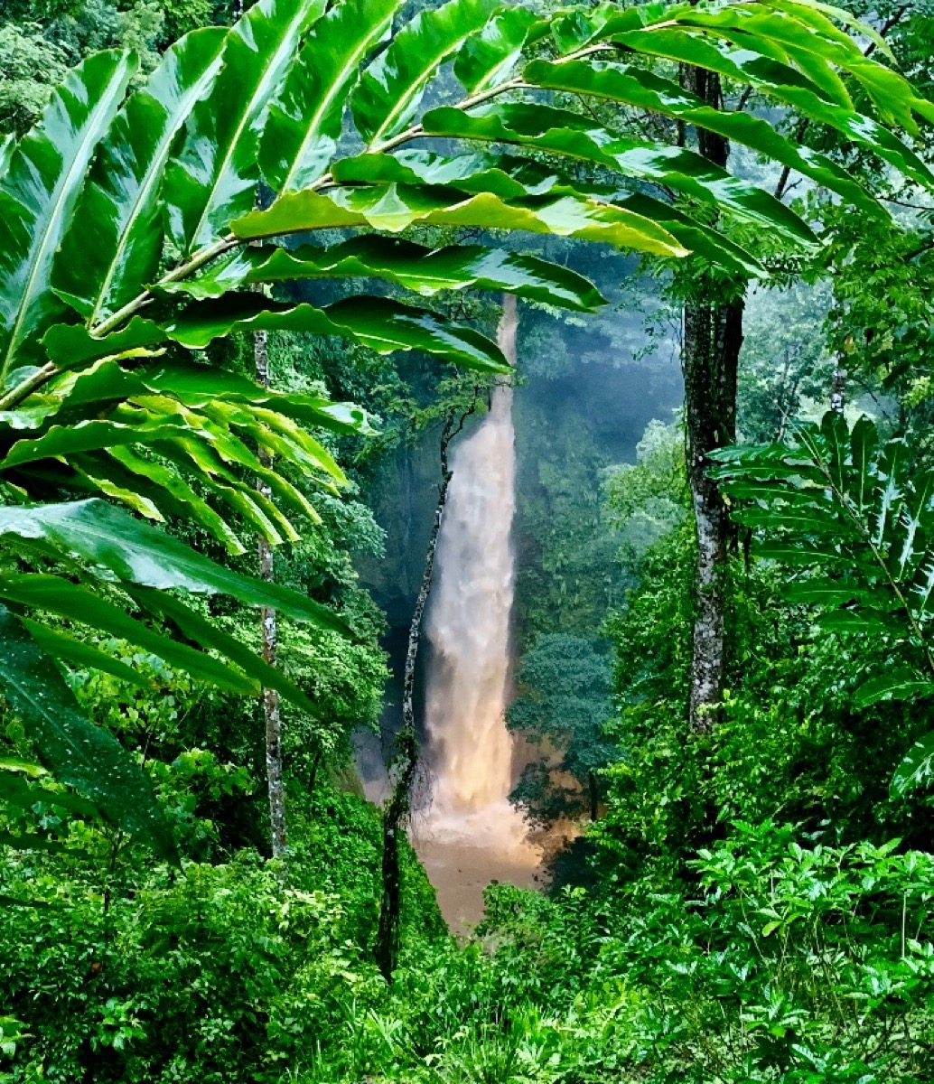 – Tropical huge rain forest trees, 2 waterfalls
