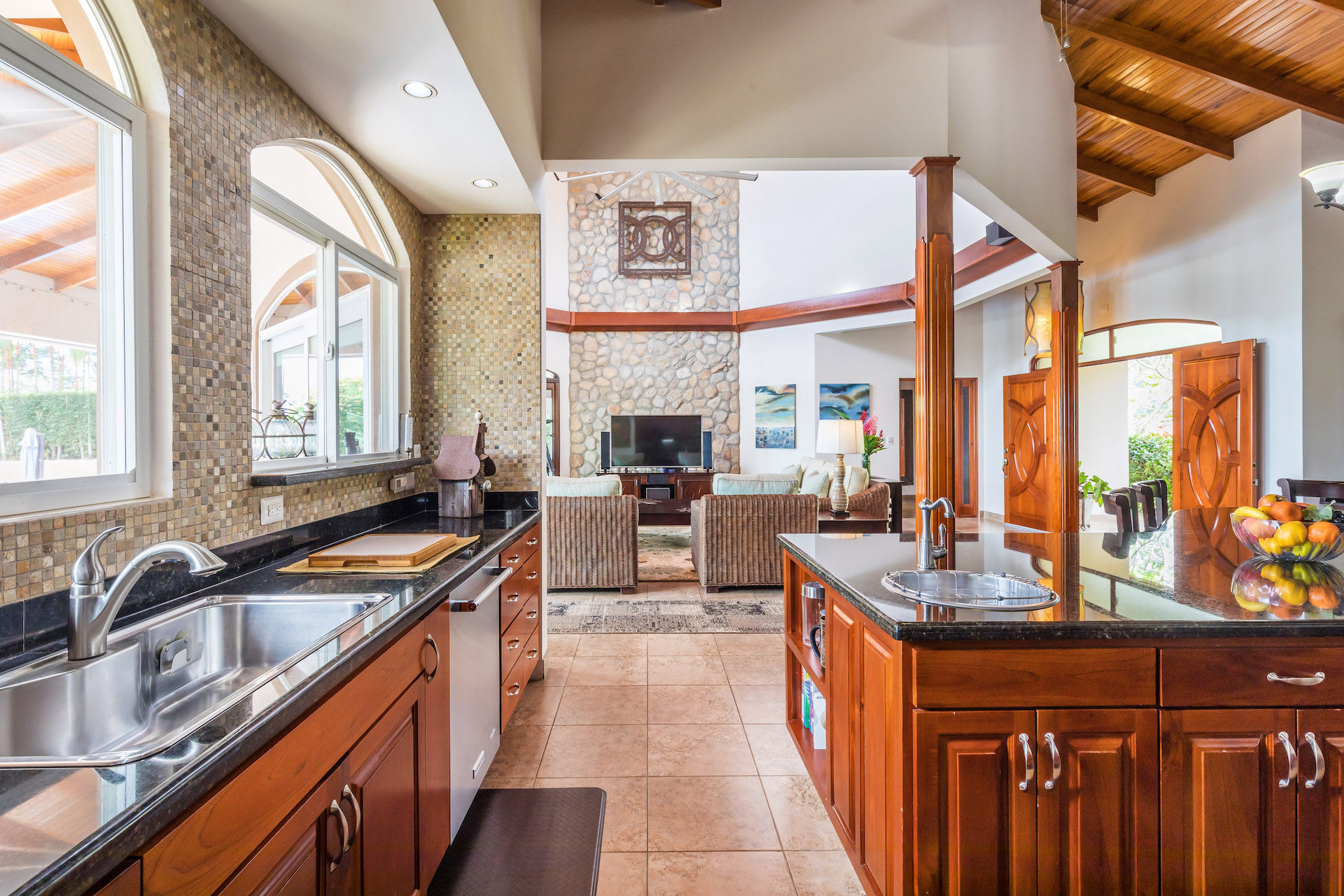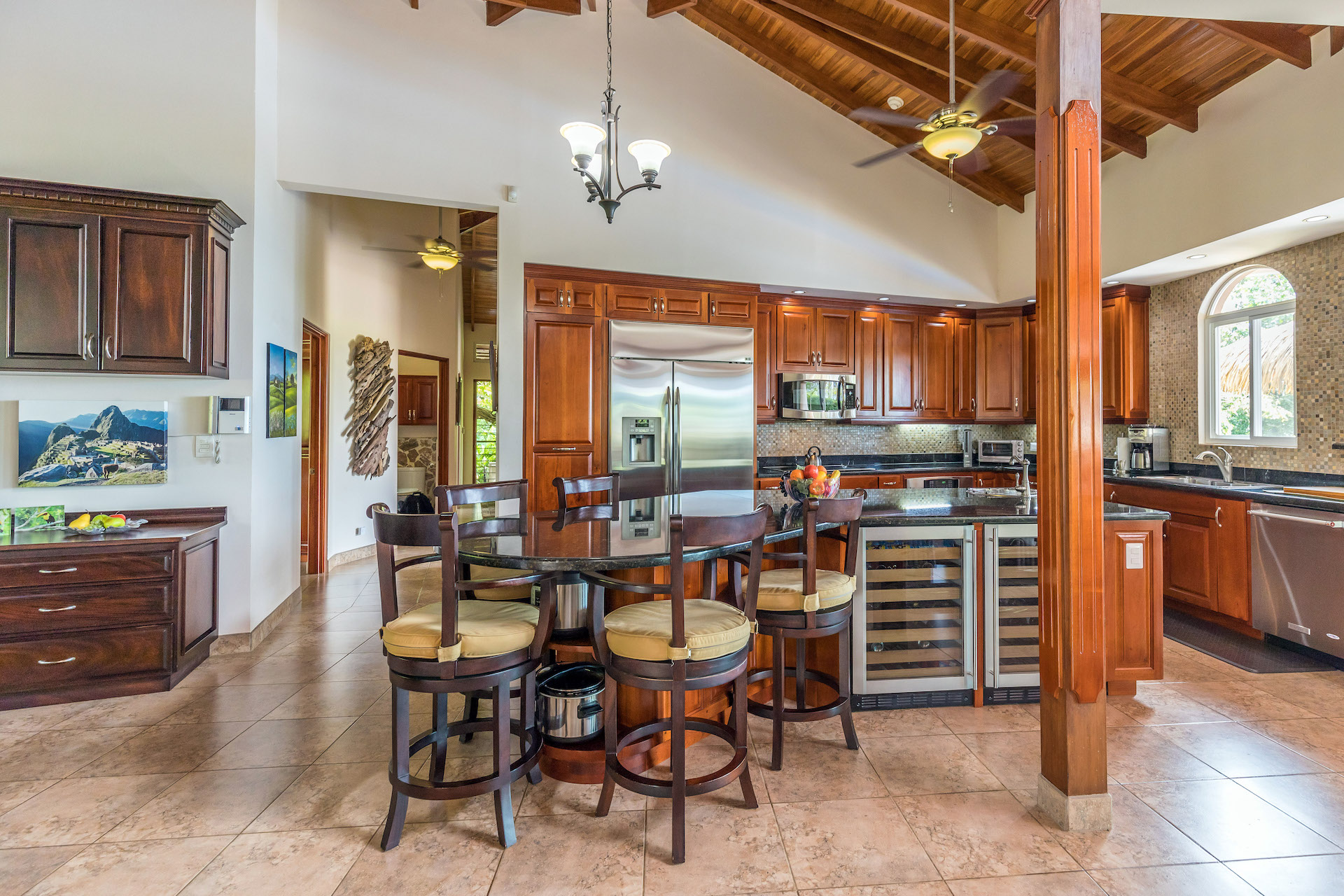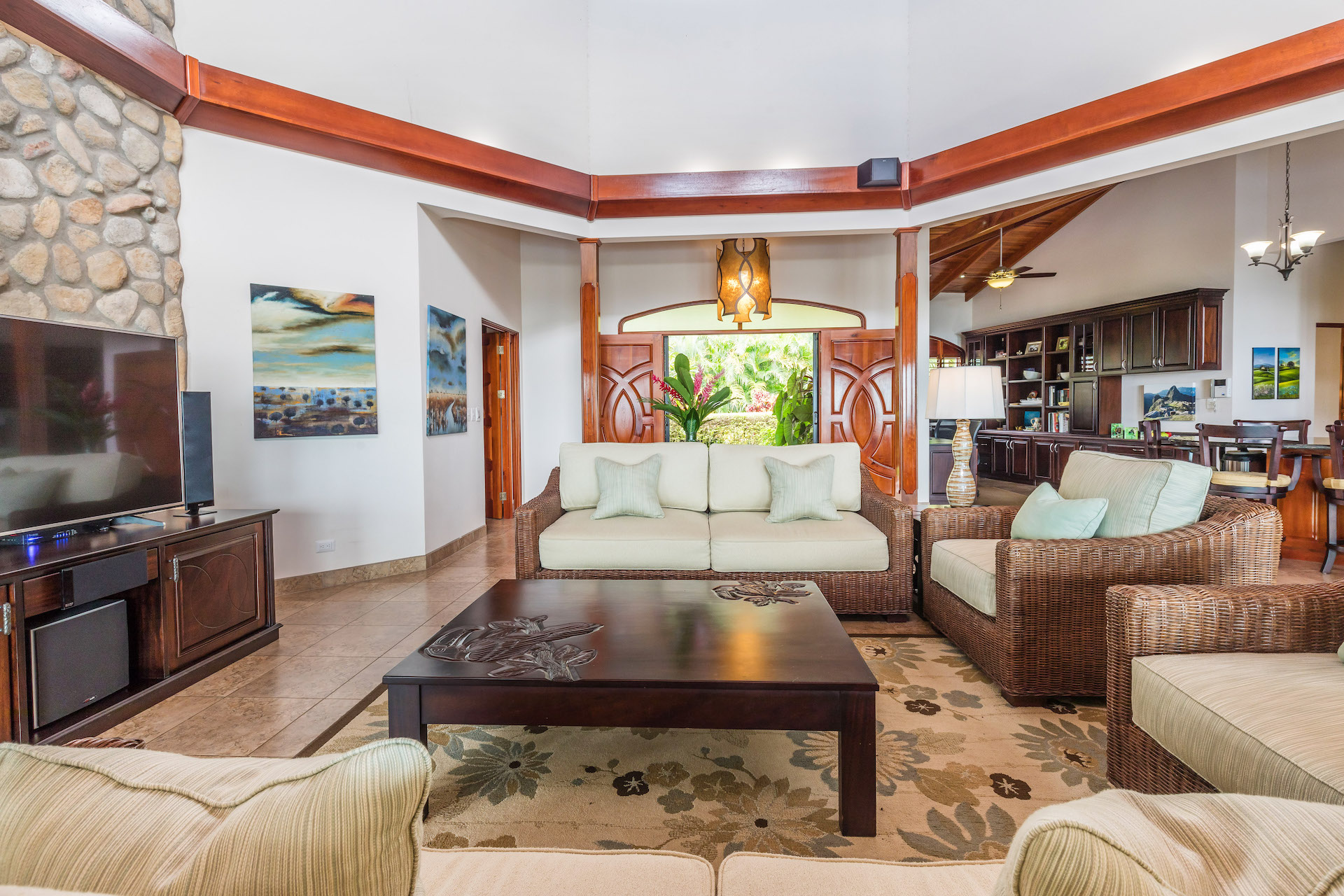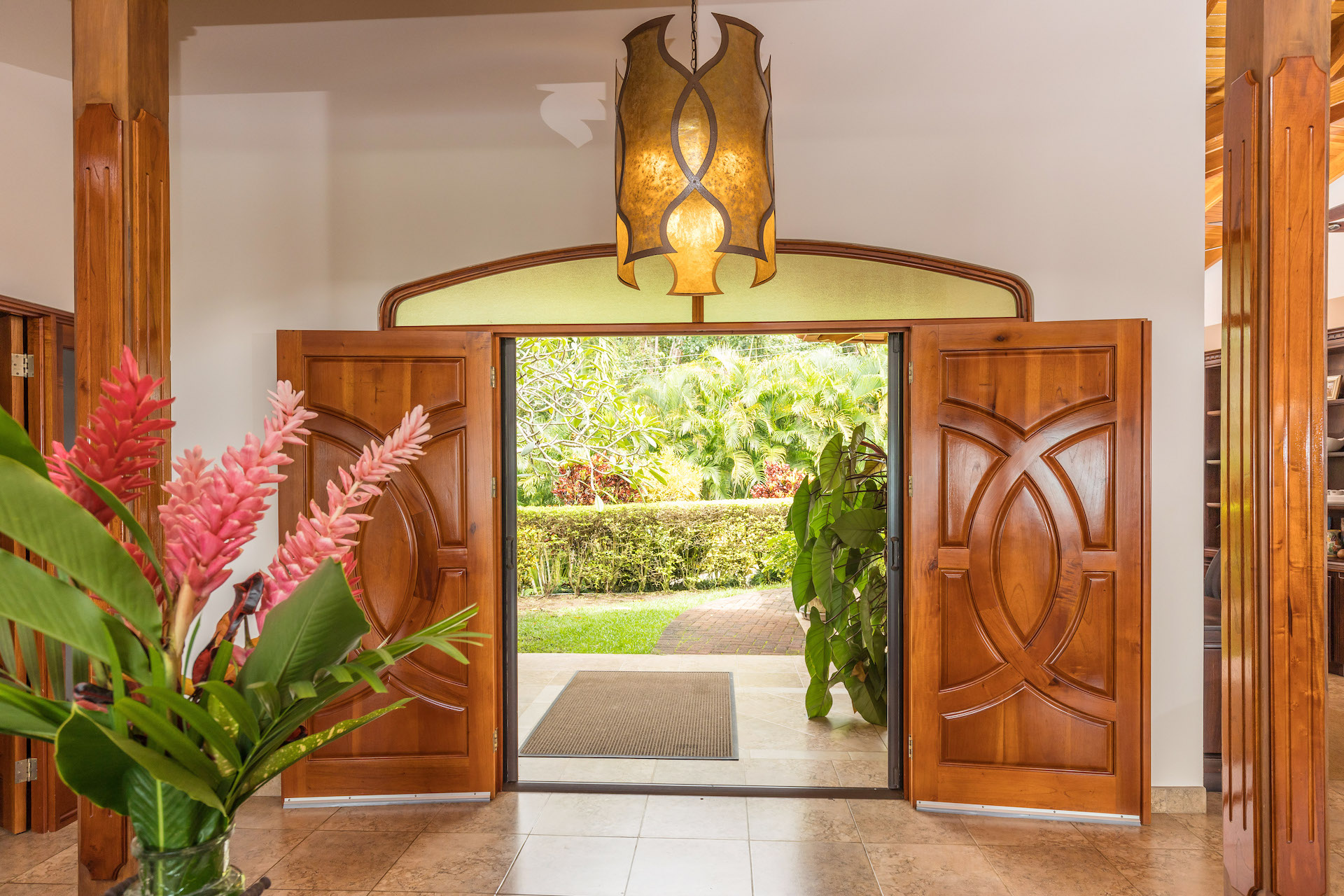 Enter your new home through a tropical garden that leads to the double-wide, hand-carved doors, that welcome you to, “Come on In!”