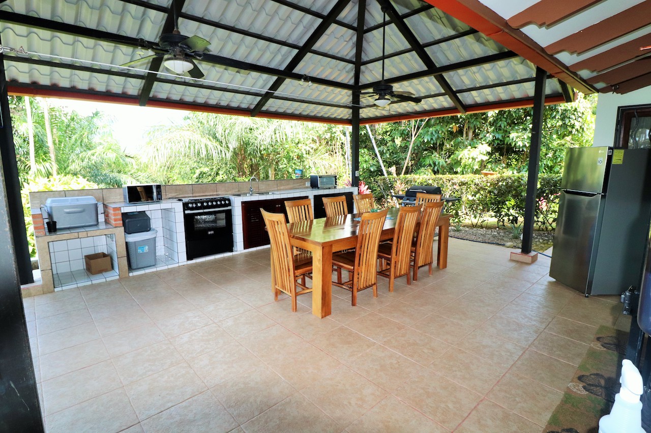 No problem, this home has a fully functional outdoor kitchen and dining area complete for outdoor dining and entertaining!