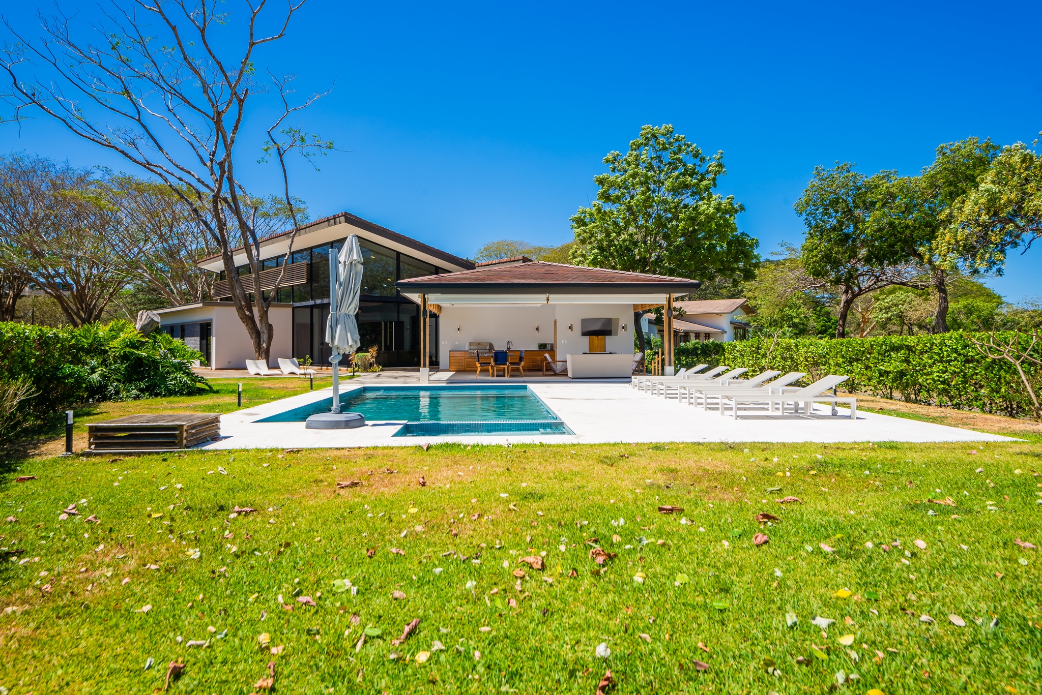 Nestled within the exclusive Llama del Bosque community in the prestigious Reserva Conchal, this single-story architectural gem combines sleek modern design with tropical charm. Positioned alongside the lush golf course and just moments from Playa Conchal, one of the world’s most iconic white-sand beaches, this home offers a seamless connection to nature and resort-style living.
