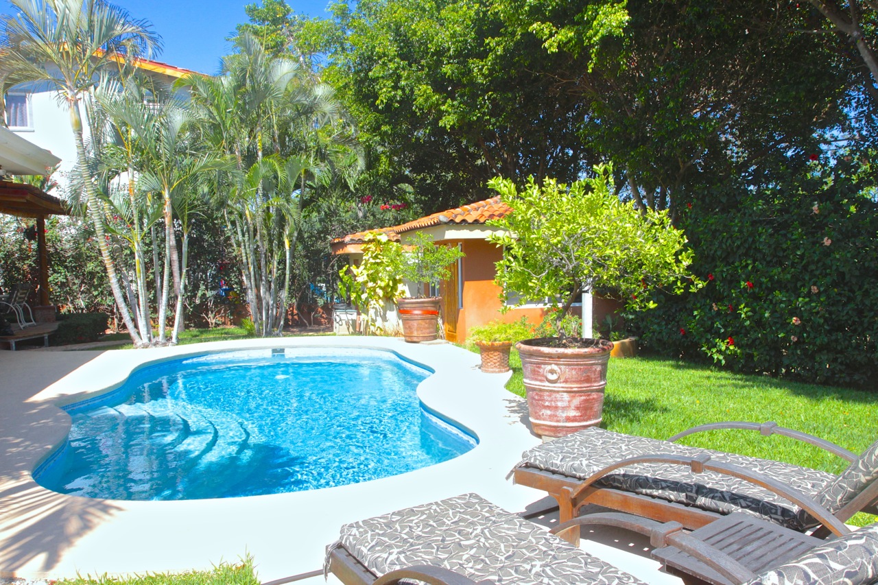 This home offers: hardwood kitchen cabinets, granite countertops, 2 car garage with remote openers, a mature landscaped garden with lime trees & a private pool.