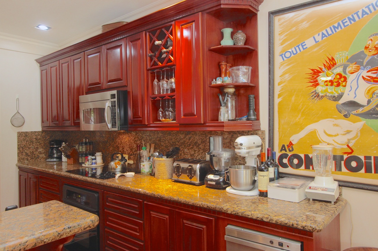The Kitchen is outfitted with GE signature and Viking appliances. All the cabinetry is custom made of Costa Rican hard woods.