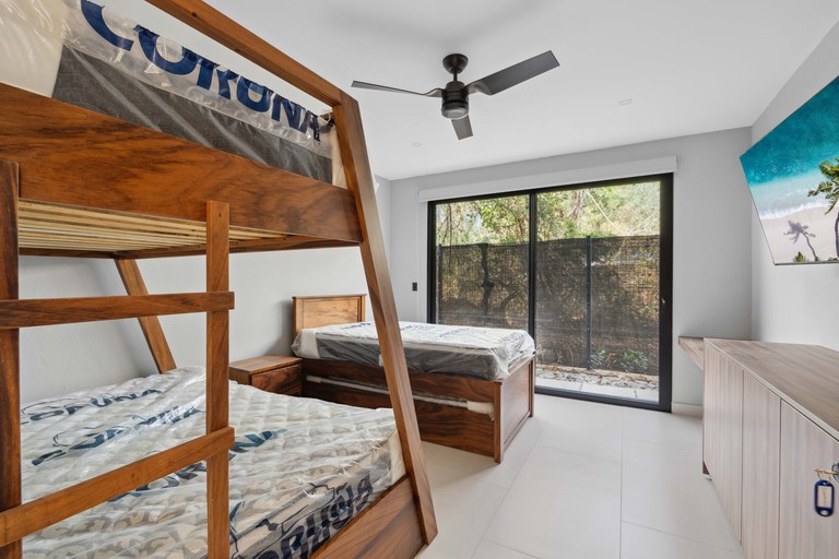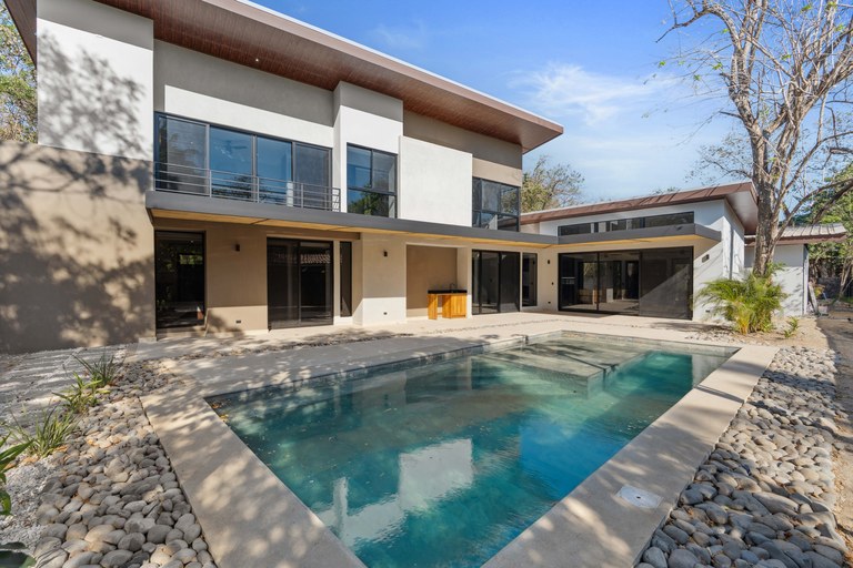 Discover Casa Las Baulas a luxurious coastal haven just 100 meters from the golden sands of Playa Grande. This impeccably designed home offers four spacious bedrooms, three with ensuite bathrooms, including a serene master suite featuring dual vanities and spa-like comfort. A modern, open layout separates the kitchen and living area from the private bedroom wing, offering both functionality and privacy. High ceilings and premium finishes create a bright, elegant atmosphere throughout, while the gentle sound of nearby waves provides a constant reminder of your unbeatable beachside location.