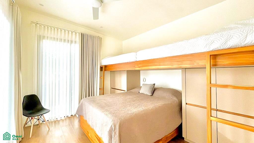The primary suite is a private sanctuary, designed for rest and renewal. With direct access to the outdoor deck, a beautifully appointed en-suite bathroom, and a custom walk-in closet, it’s a space where mornings begin with garden views and evenings end under glowing sunset skies. Two additional bedrooms on this level offer comfort and privacy, while a versatile TV room easily transforms into a fourth guest bedroom—perfect for visiting family or friends.