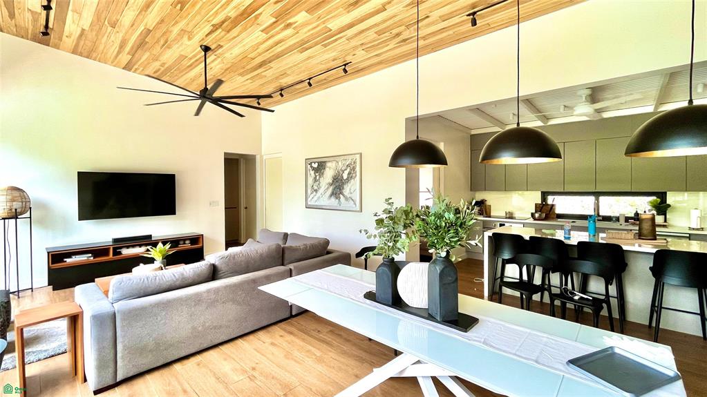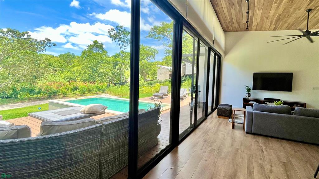 Just steps away, a separate guest house adds a layer of flexibility and privacy rarely found. Ideal for extended stays, remote work, or hosting guests, it features a kitchenette/office area, full bathroom, and sleeping space for up to four. The garage area offers two covered parking spaces, room for up to seven vehicles, air-conditioned storage rooms, and even a full bathroom—thoughtfully designed for both convenience and lifestyle.