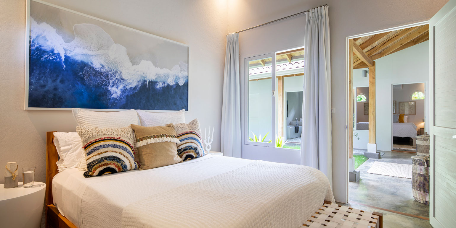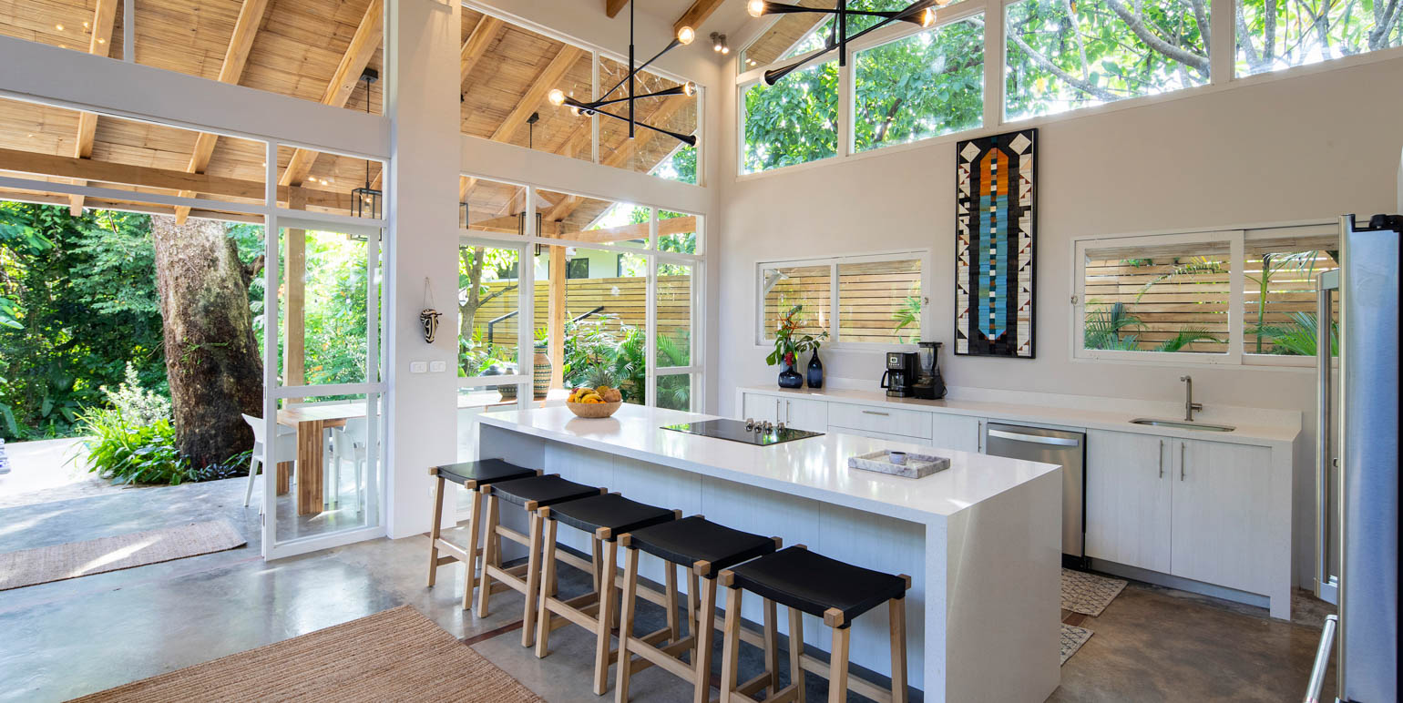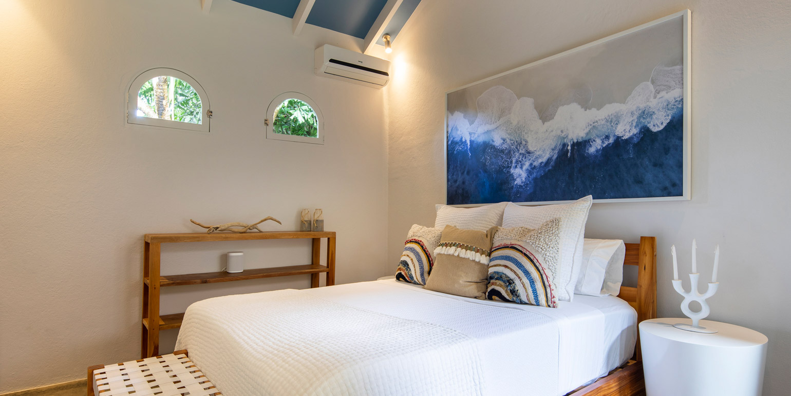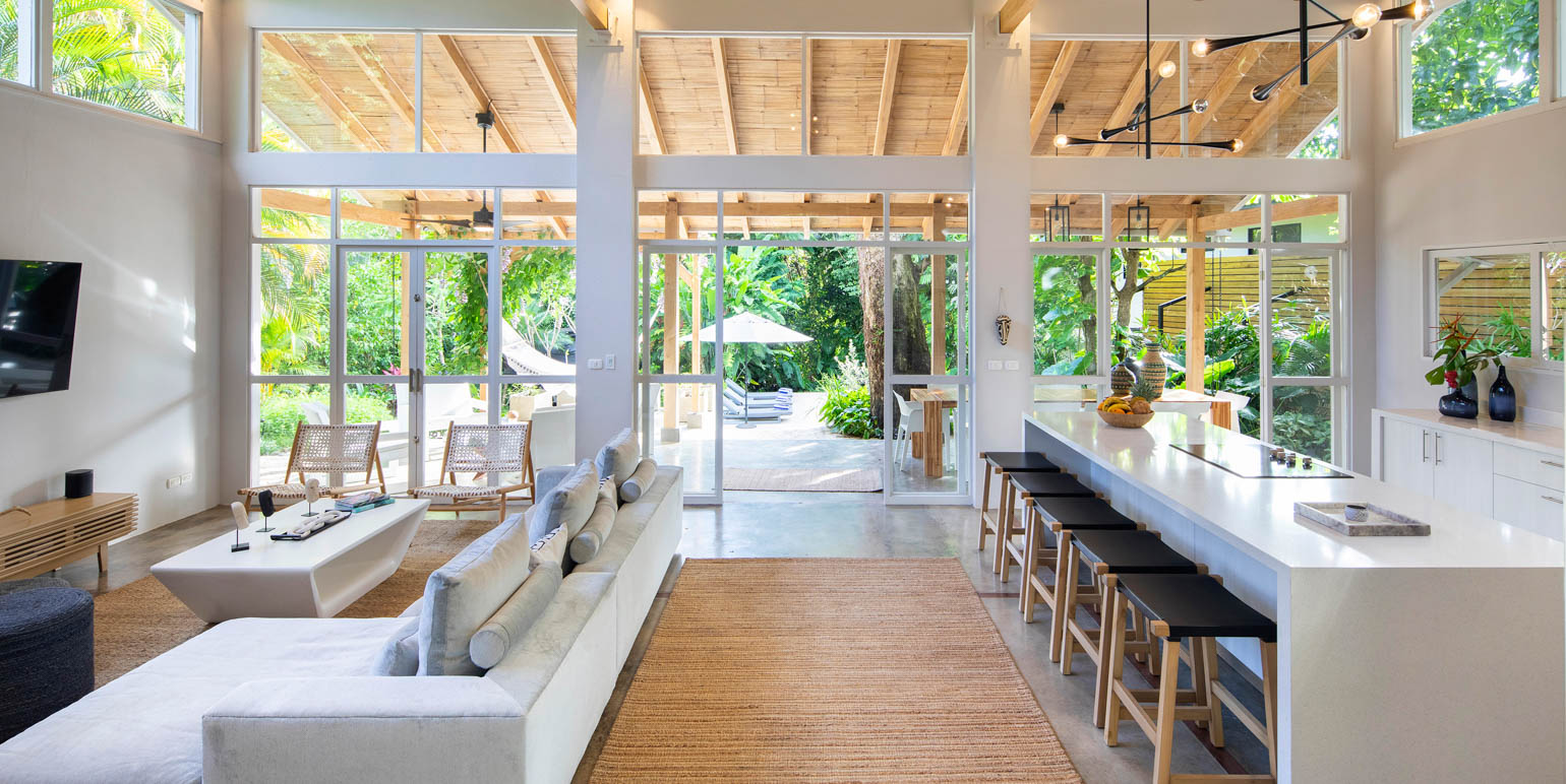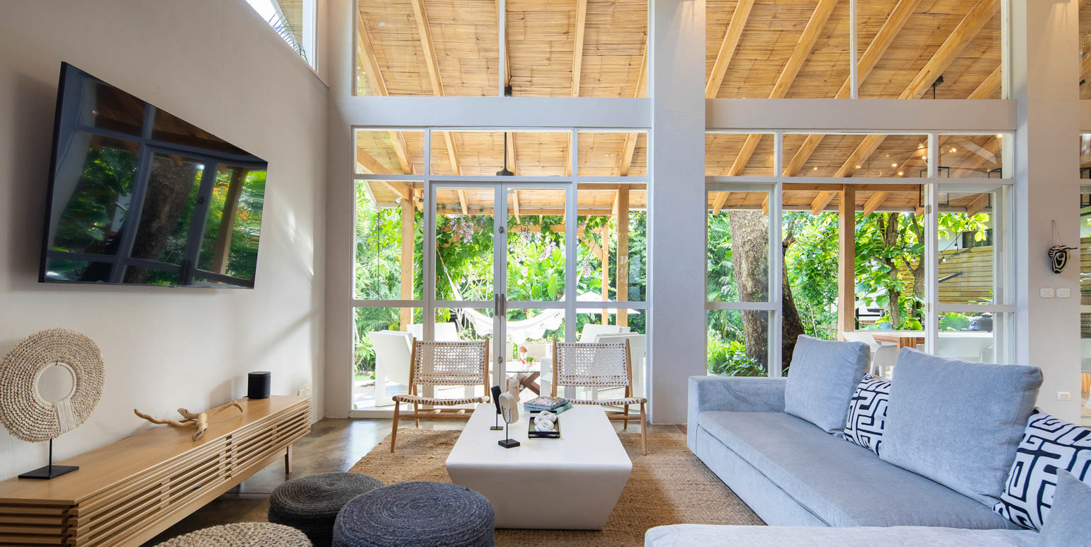 Jungle living doesn't mean sacrificing comfort. Inside, you will experience total relaxation with luxury linens, premium pillows, and high-end appliances throughout the villa. Each of the four spacious bedrooms is equipped with blackout curtains, fans, and air conditioning, guaranteeing a blissful night's sleep every time. The villa comfortably sleeps up to ten guests, offering ample space for family and friends to enjoy the Pura Vida lifestyle.