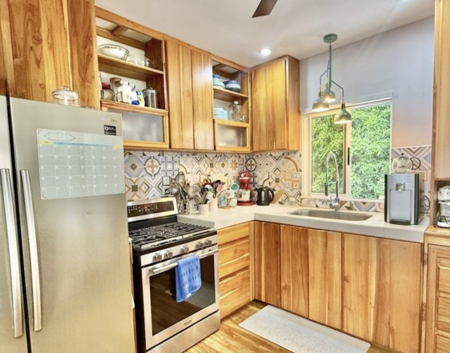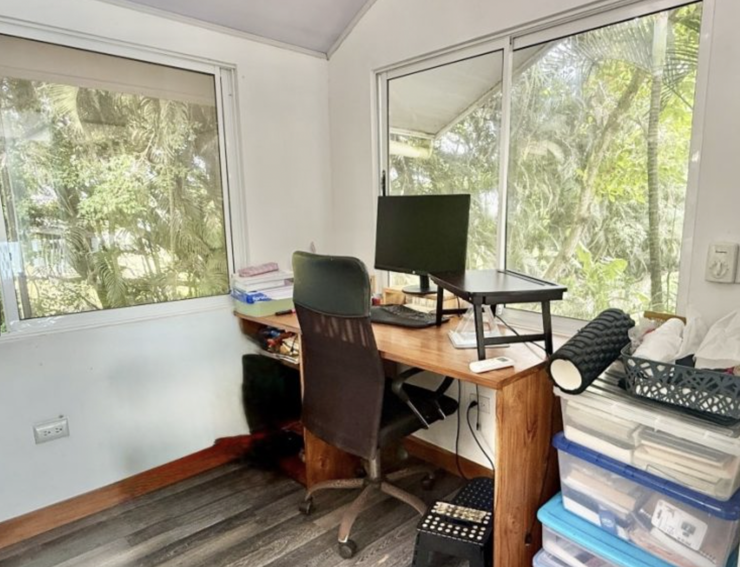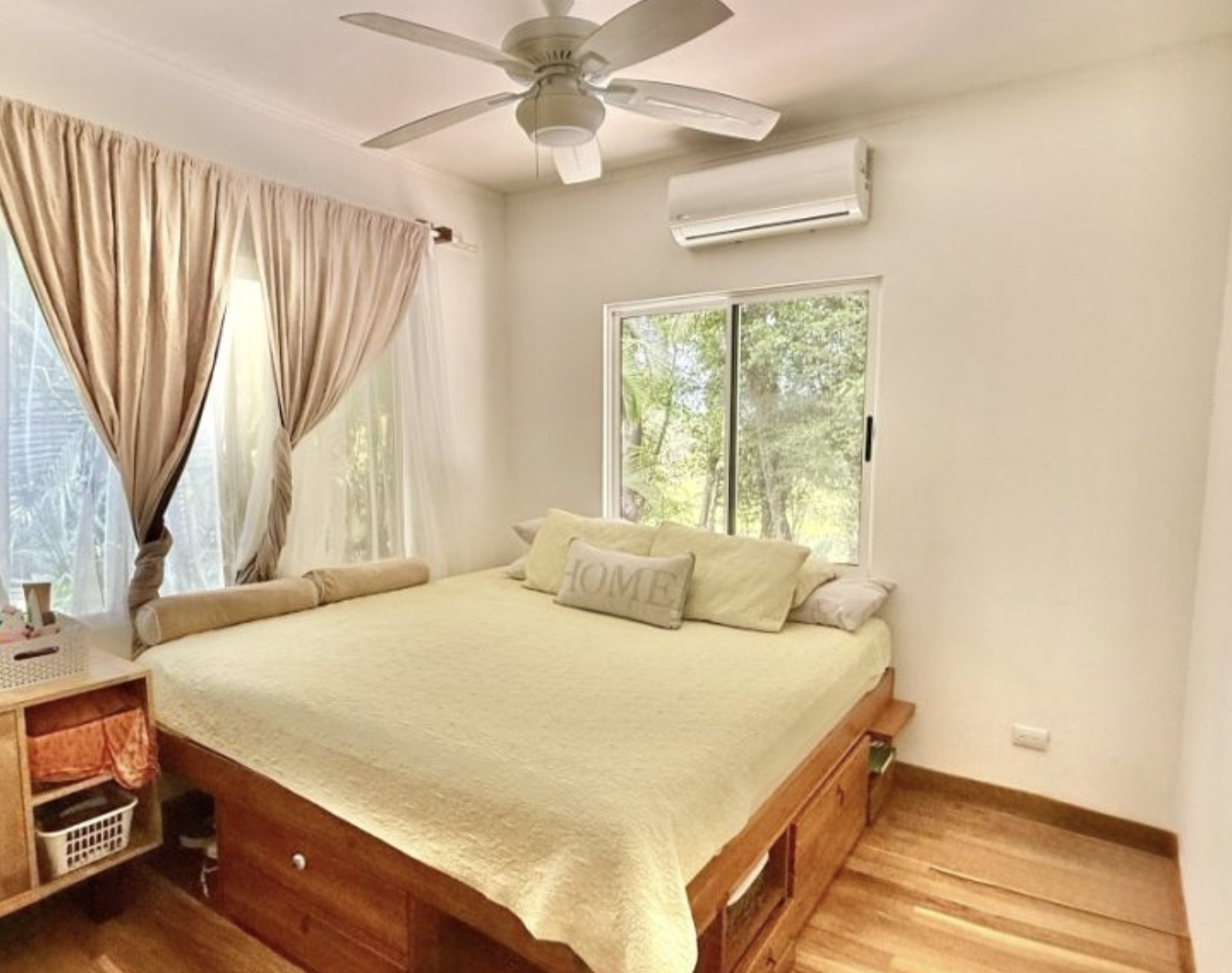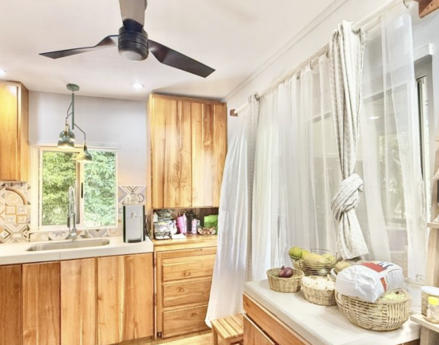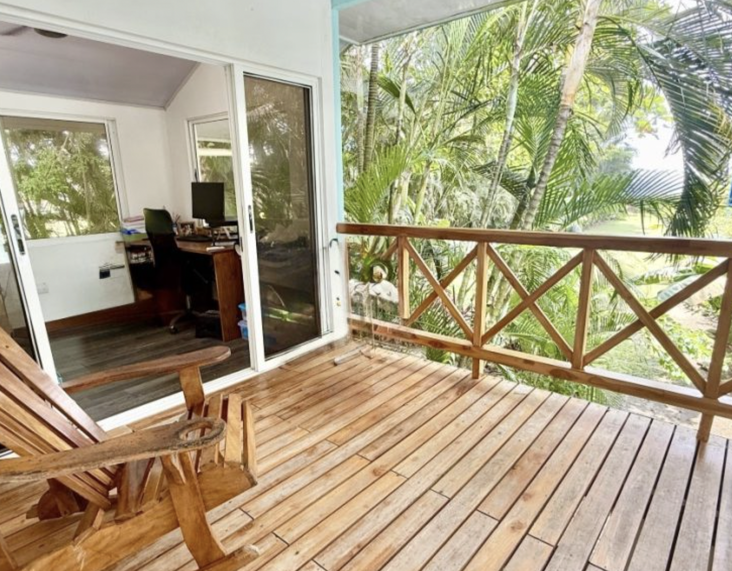 Upstairs, you’ll find two cozy bedrooms and an office with a peek-a-boo ocean view — perfect for daydreaming between emails. The home is filled with rich teak wood details and opens onto a beautiful covered terrace where ocean breezes flow all day long.