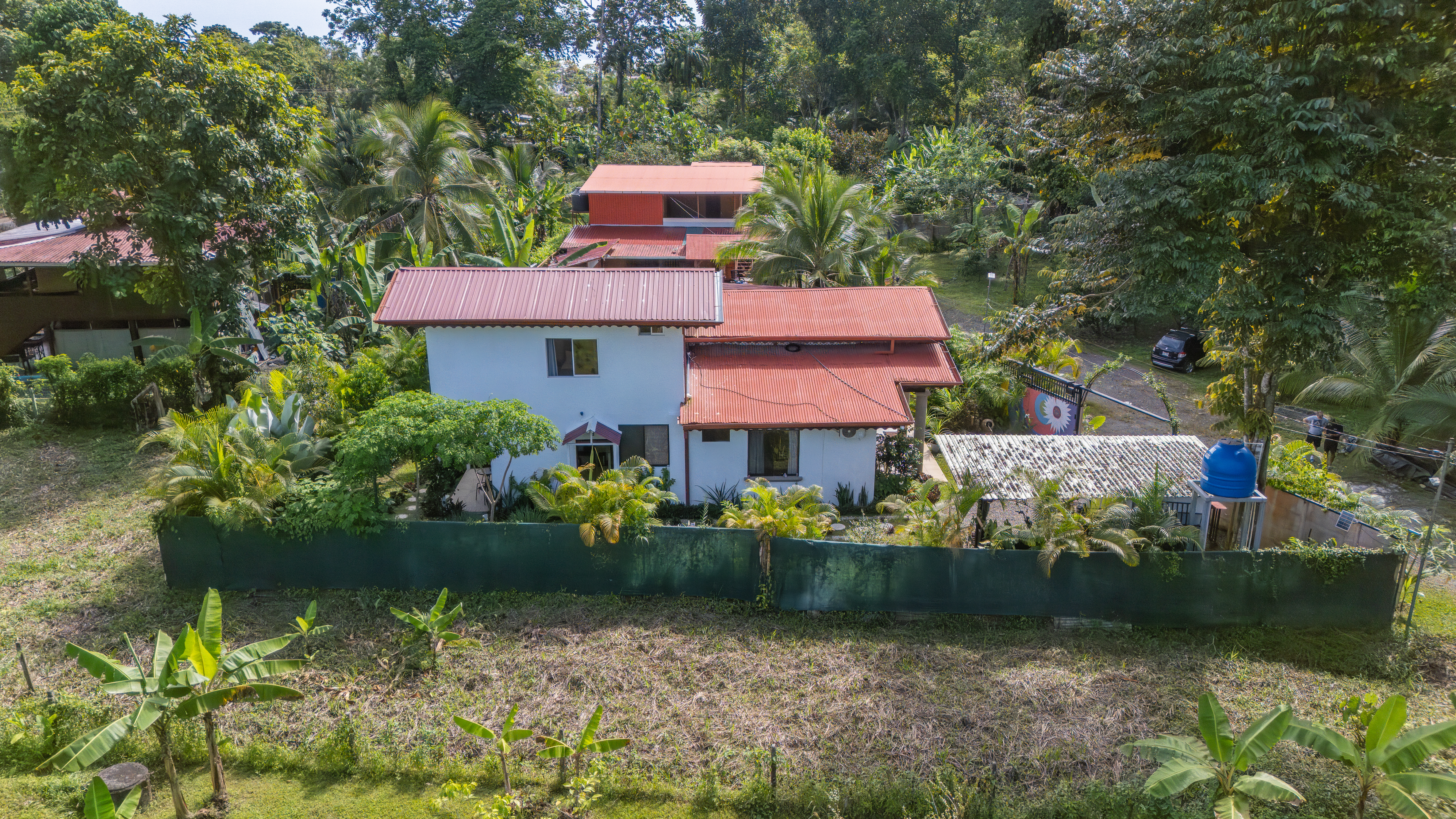 Lush Tropical Garden: Beautifully landscaped with vibrant fruit trees (Briba, Jackfruit, Sour Cherry, Soursop, Passion Fruit, and more) and colorful flowers.