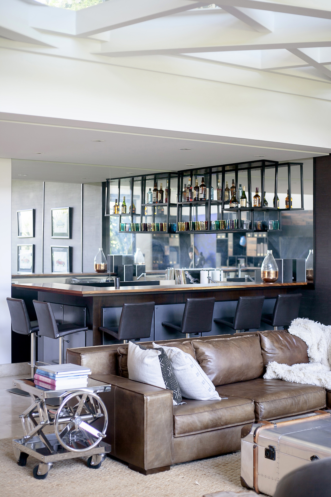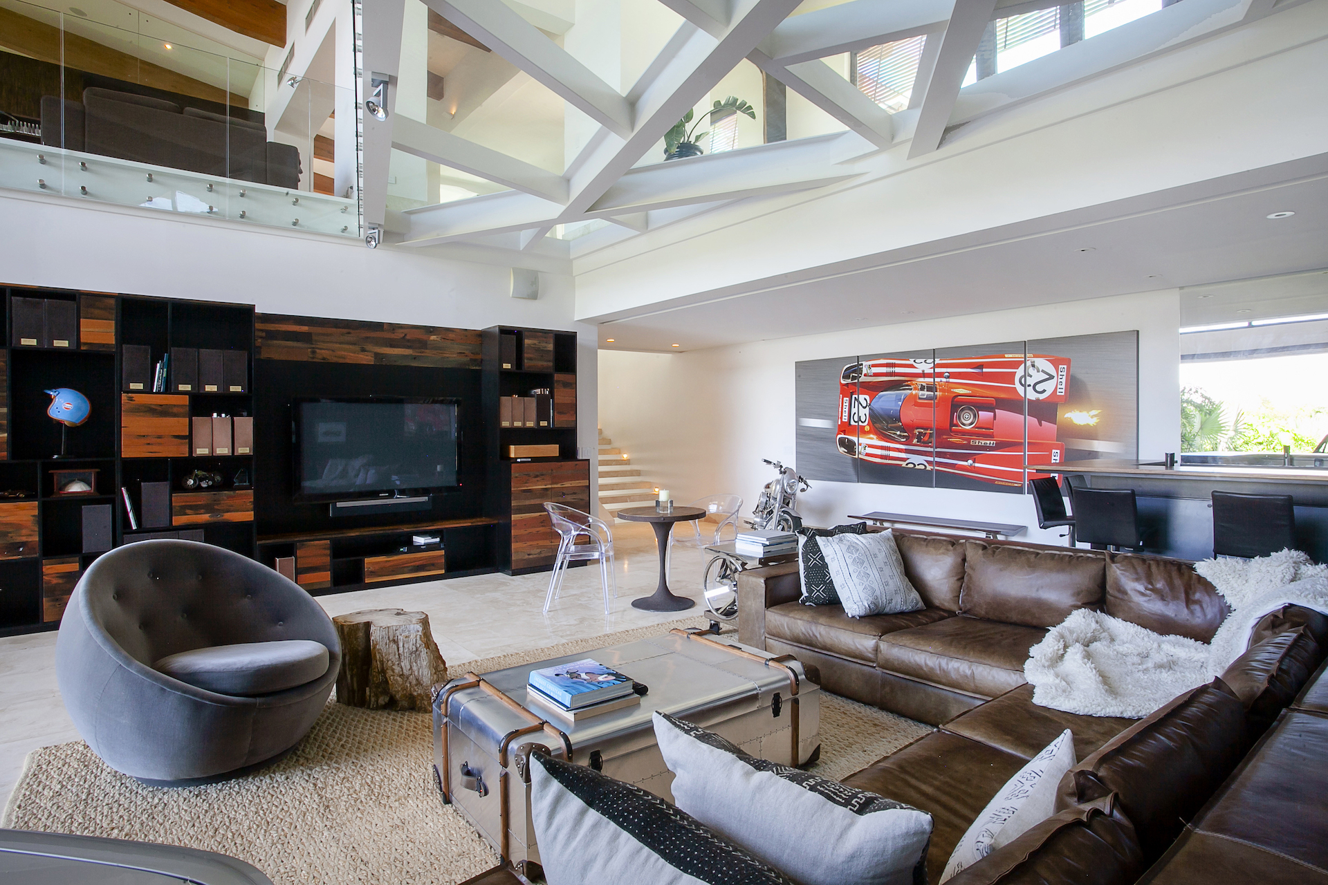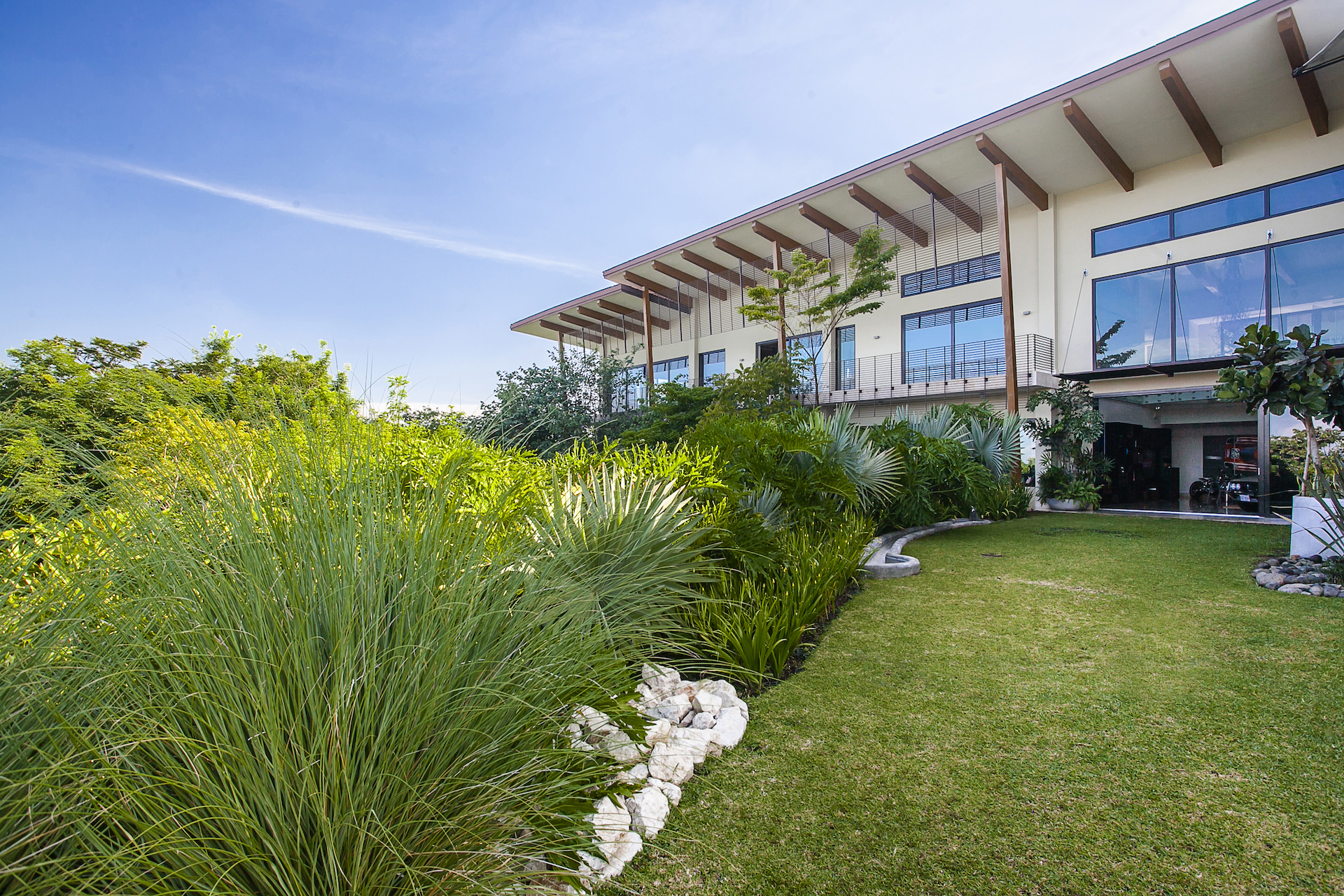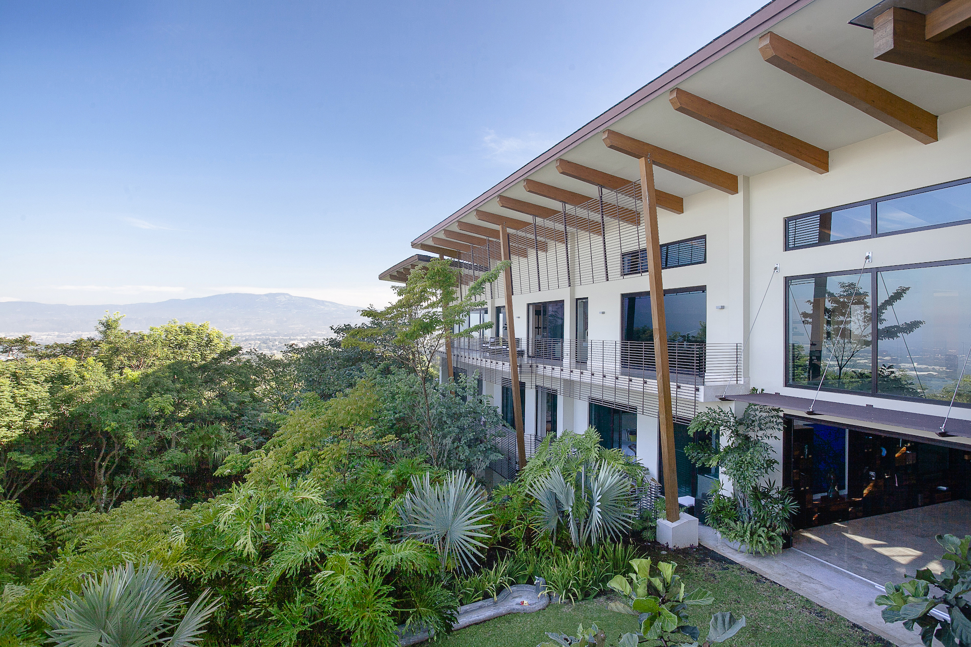 Upon arriving at Shangri La, you will come to one of the only private gated entrances, within Villa Real which is where the true sense of arrival begins. As the iron gate slowly opens, you will know you have arrived. Unlike most homes in Villa Real, the entrance to this estate is a flat, slowly winding concrete paved road, lined with lush greenery on either side. As you meander around the first curve, you will experience sensory overload as the view opens up dramatically combining what seems to be endless views of the mountains, and surrounding valleys, with a stunning, contemporary tropical residence in your peripheral. As you continue to approach the residence, you will find an expansive, private cul de sac arrival, with multiple garages both for daily use and the collection. Upon entering the home, which unlike most homes in Villa Real, sprawls horizontally as opposed to vertically, you push through the massive pivoting door and your senses will continue to be amazed.