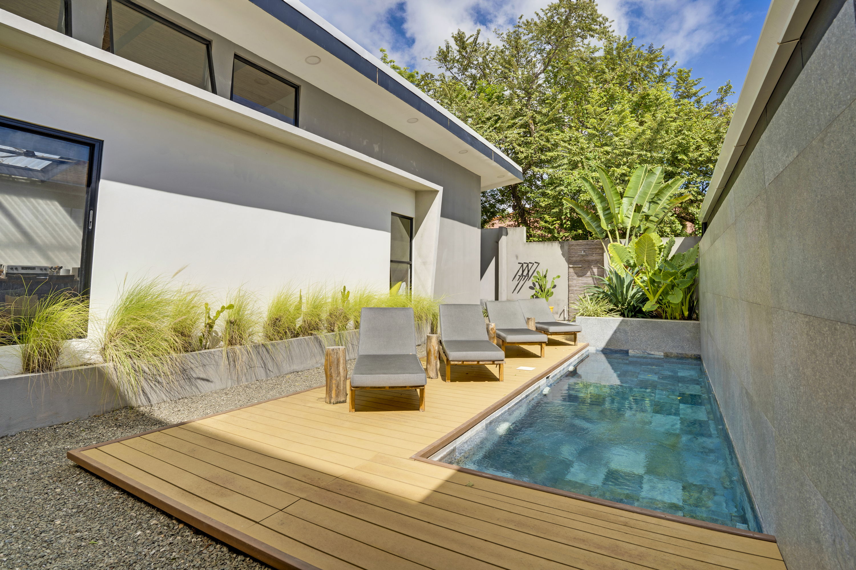 One of the standout features of these homes is the private outdoor area, complete with a delightful pool. This secluded oasis is an idyllic spot for relaxation, cooling off, and basking in the warmth of the sun, all enveloped by lush tropical landscaping. Whether you're planning poolside gatherings, evening barbecues, or quiet moments of reflection, this space is designed for pure enjoyment.