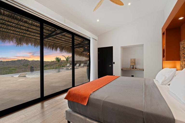 Welcome to Villa Calypso, a newly built, architect designed luxury estate perched on a 5,200 m² (1.25-acre) hilltop lot just four minutes from downtown Tamarindo. This stunning residence combines sophisticated European craftsmanship with panoramic views of the Pacific Ocean and surrounding mountains. Designed with durability and elegance in mind, the estate features four identical primary suites two of which are lockouts with private entrances offering both flexibility and exceptional rental potential. Expansive outdoor living spaces include a 500 m² Italian tiled terrace, a saltwater infinity pool and spa, two open air ranchos with a full outdoor kitchen, and lush landscaping throughout.