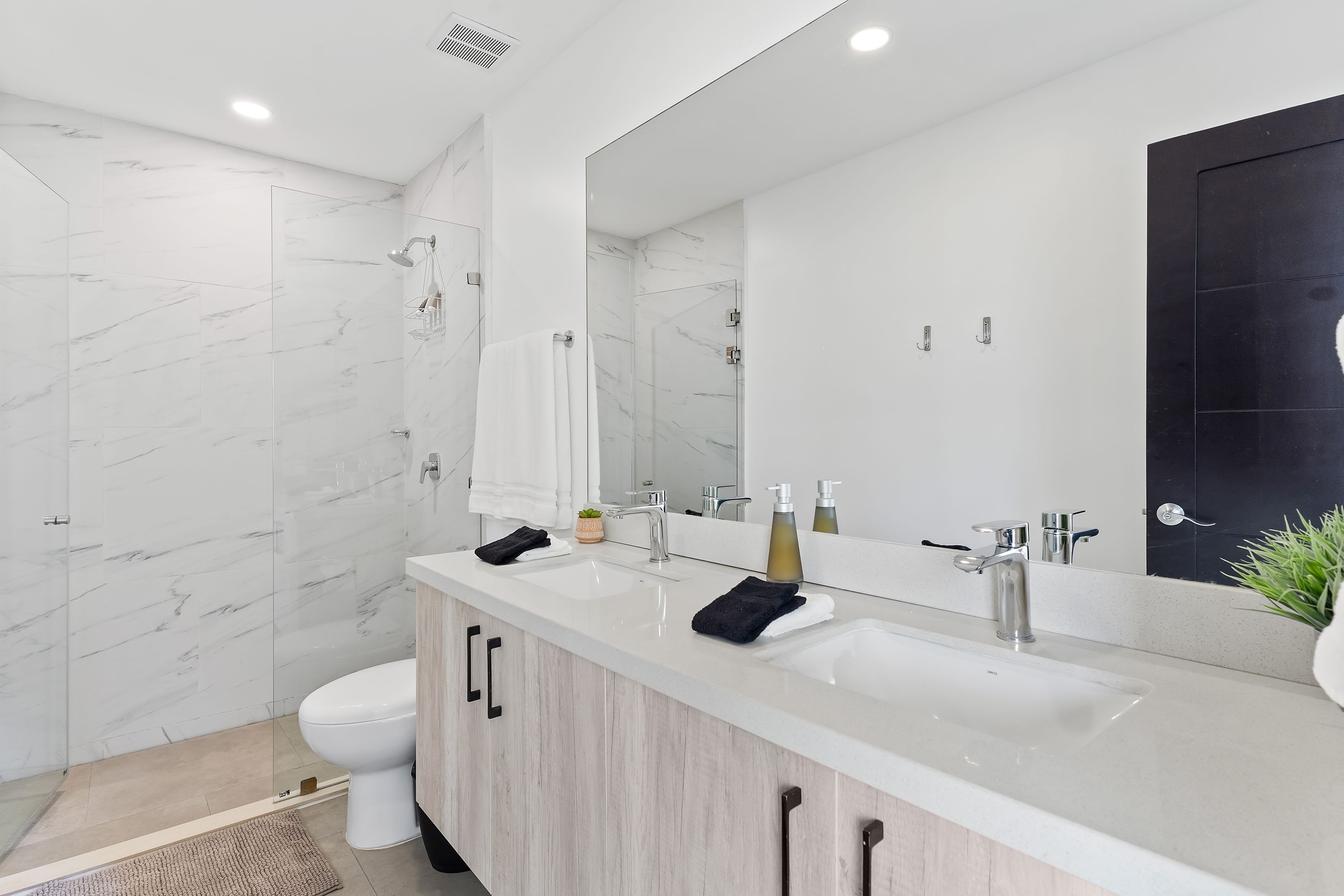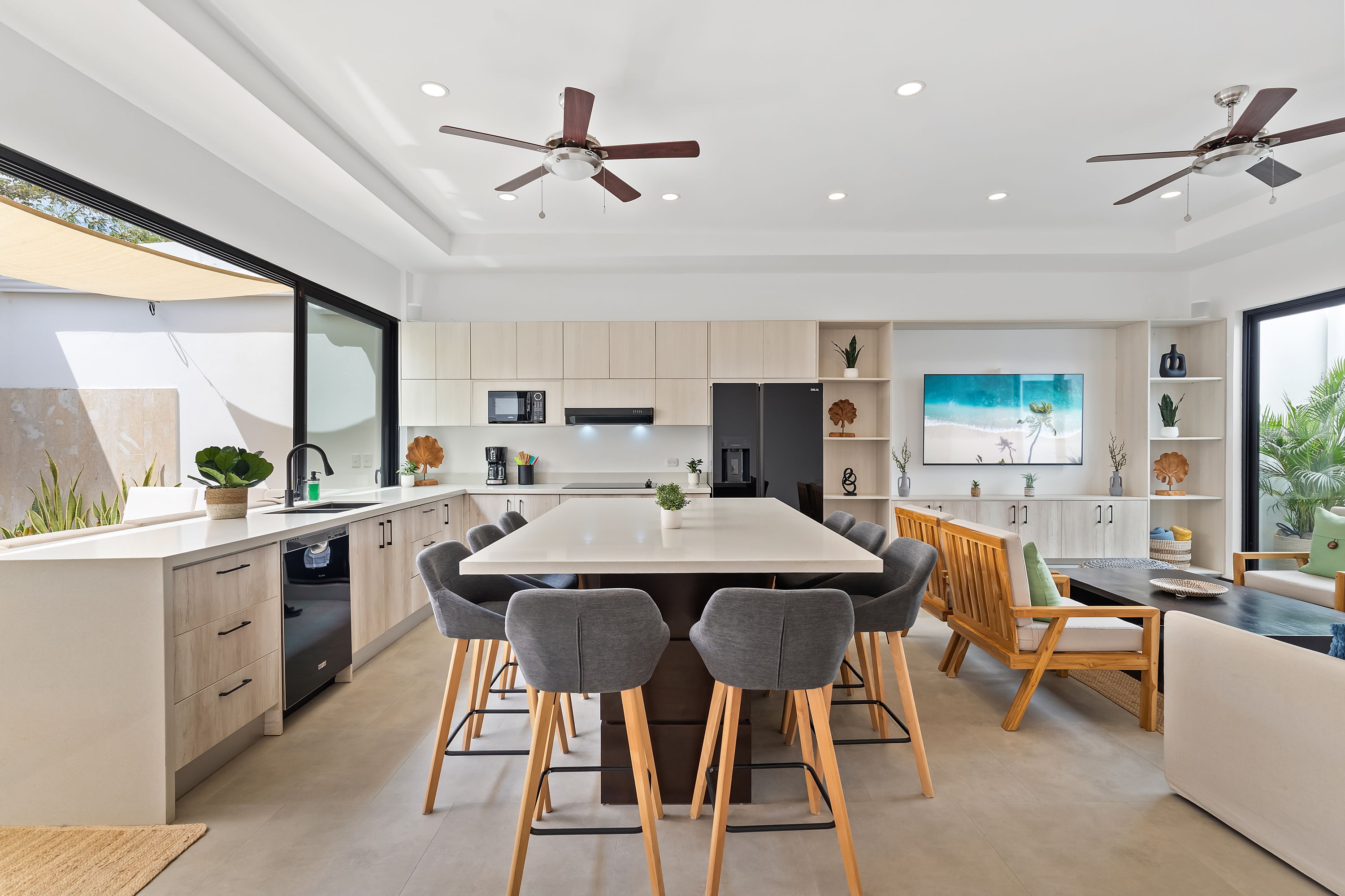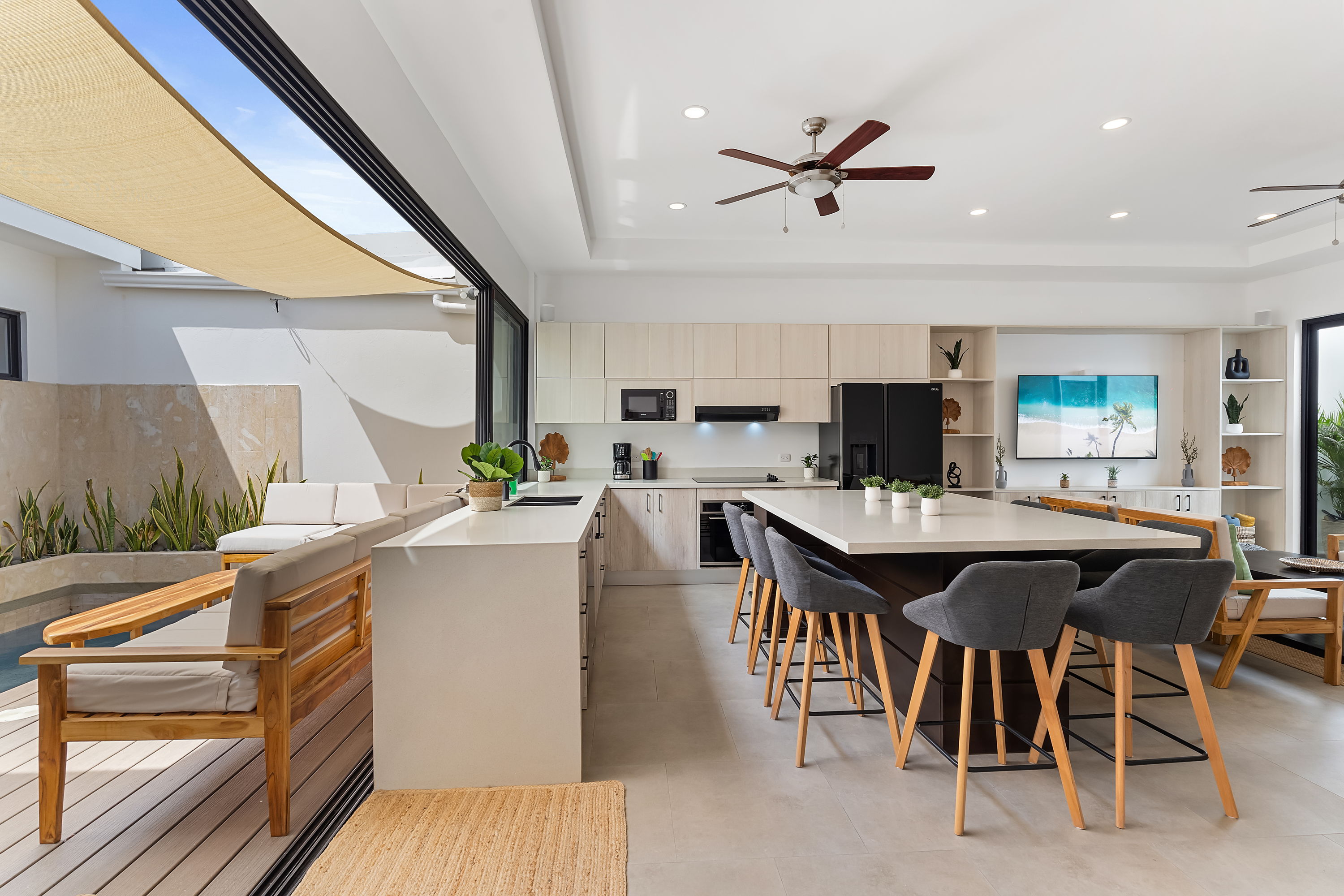 These brand-new, three-level homes are centered around private courtyards that feature your own lounge area with tropical flora. The open-concept floor plans highlight glass doors, warm tropical woods, and elegant finishes, allowing for abundant natural light and a harmonious connection between indoor and outdoor spaces. One of the master suites even includes a private courtyard for an added touch of exclusivity.
