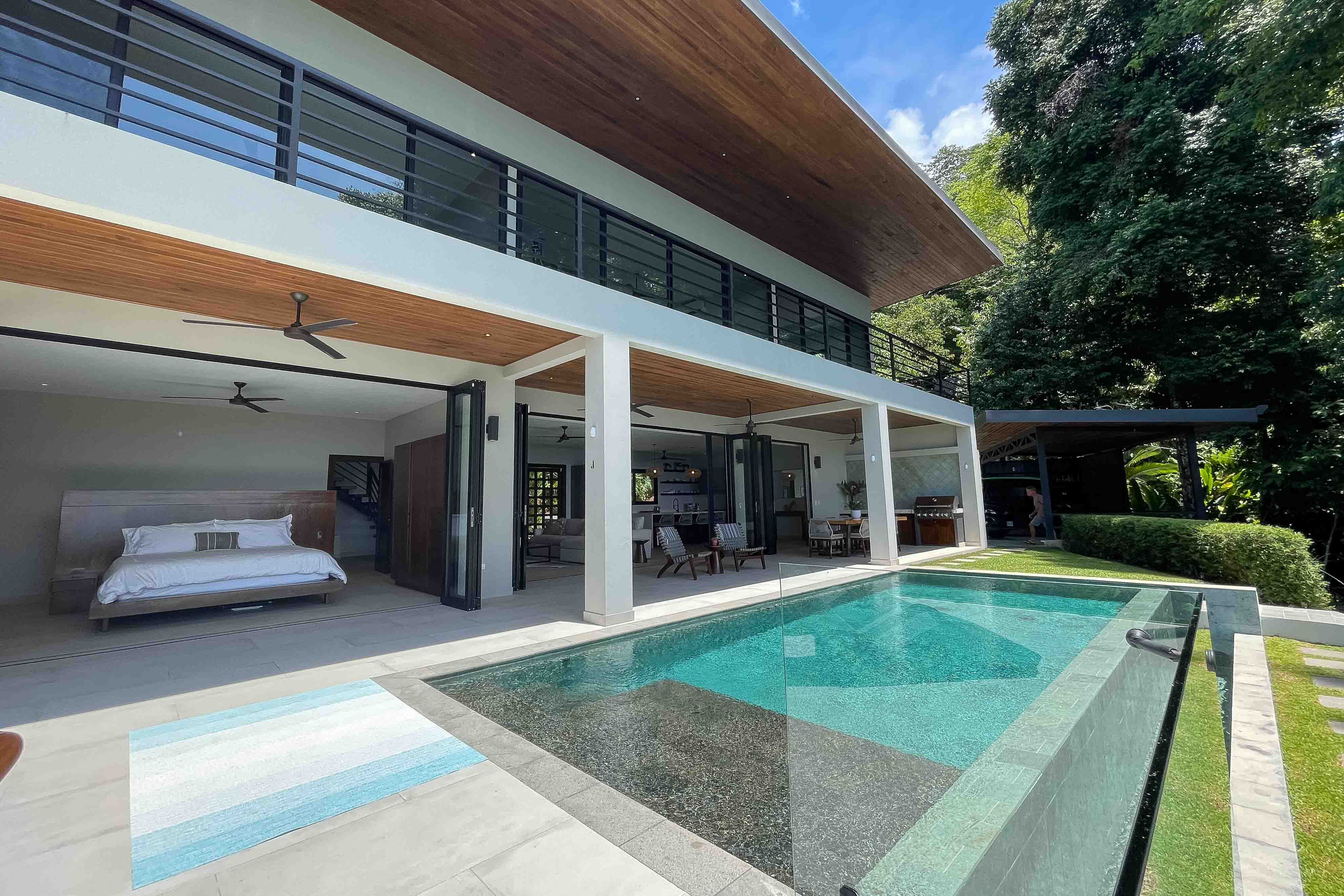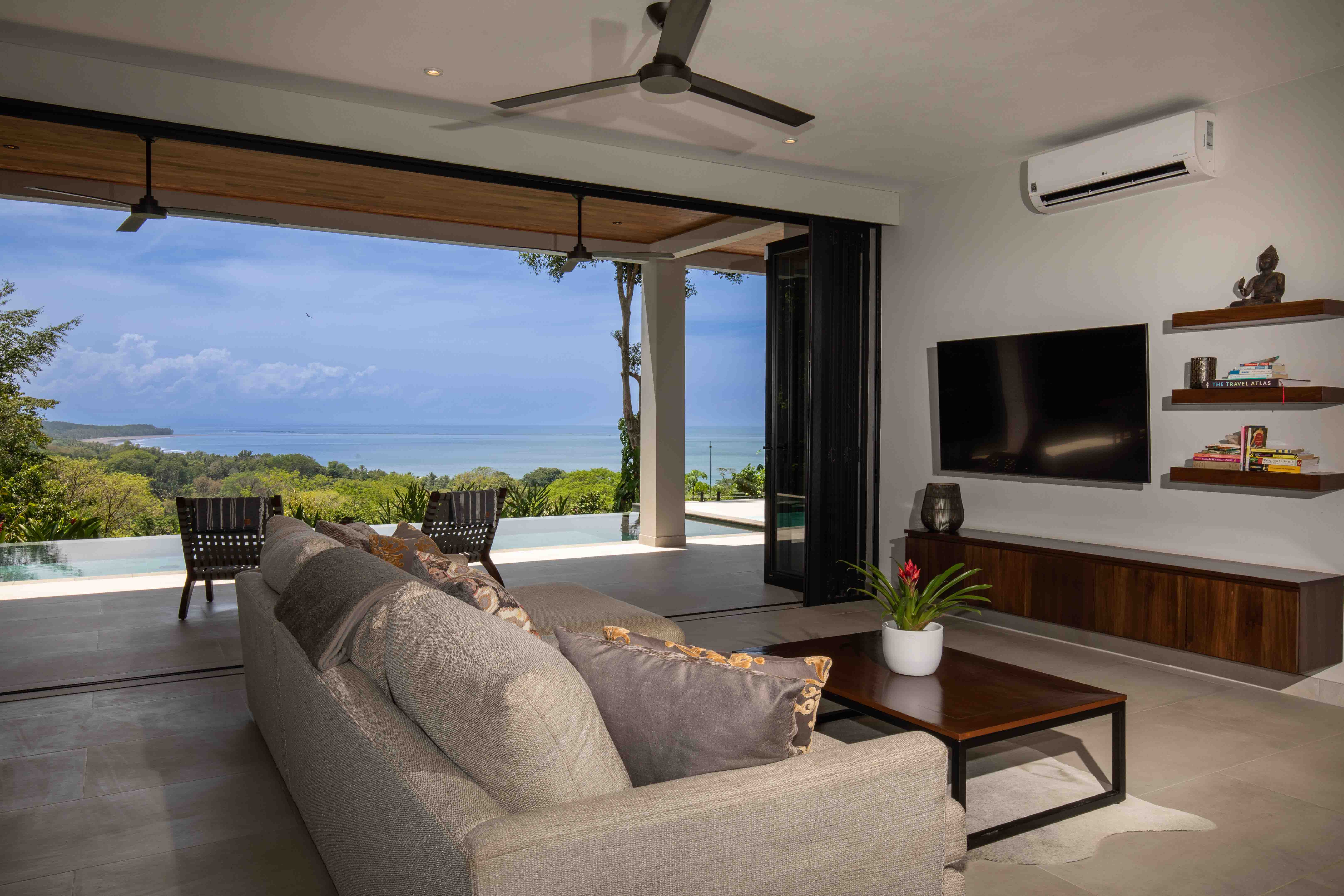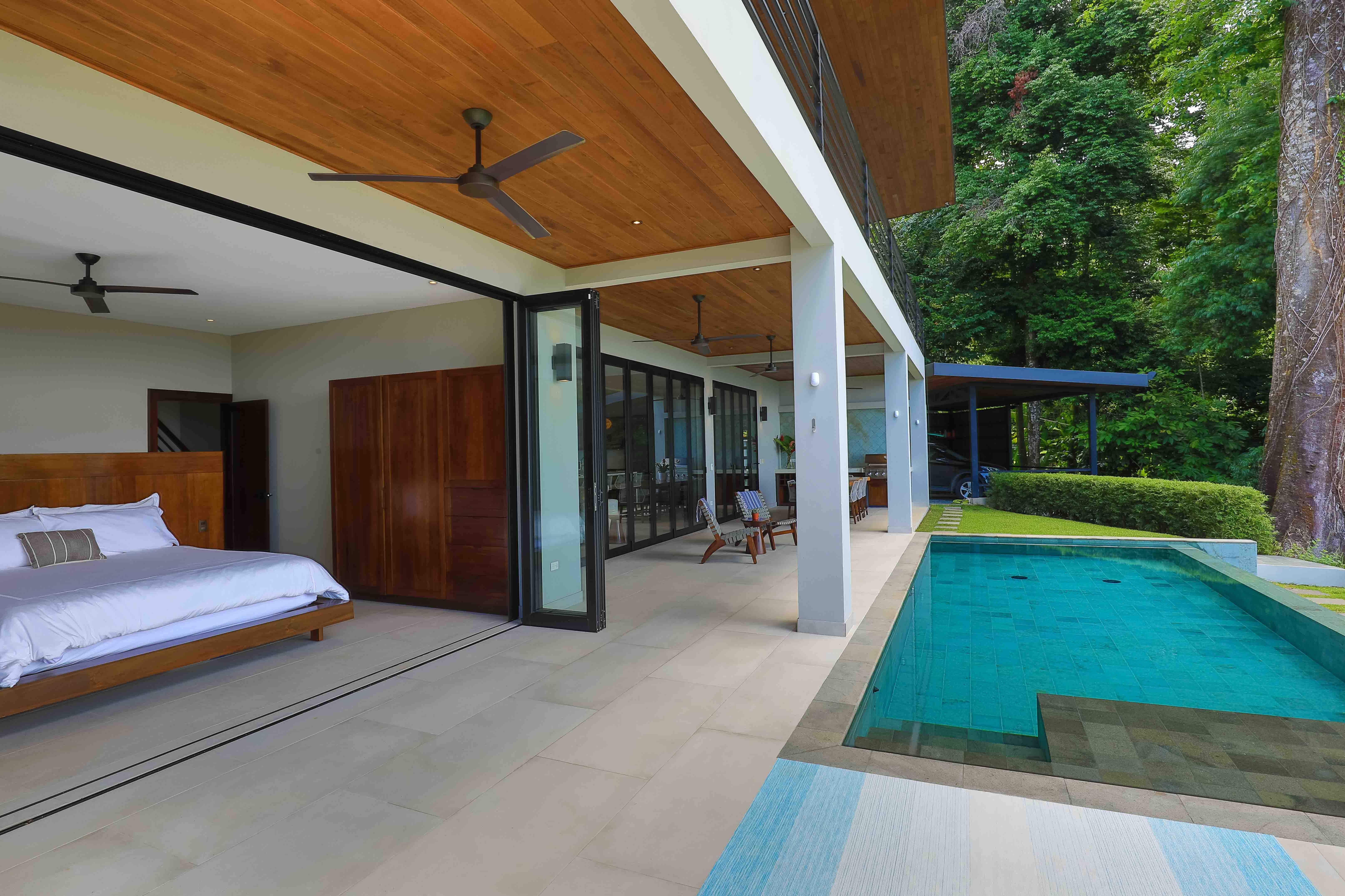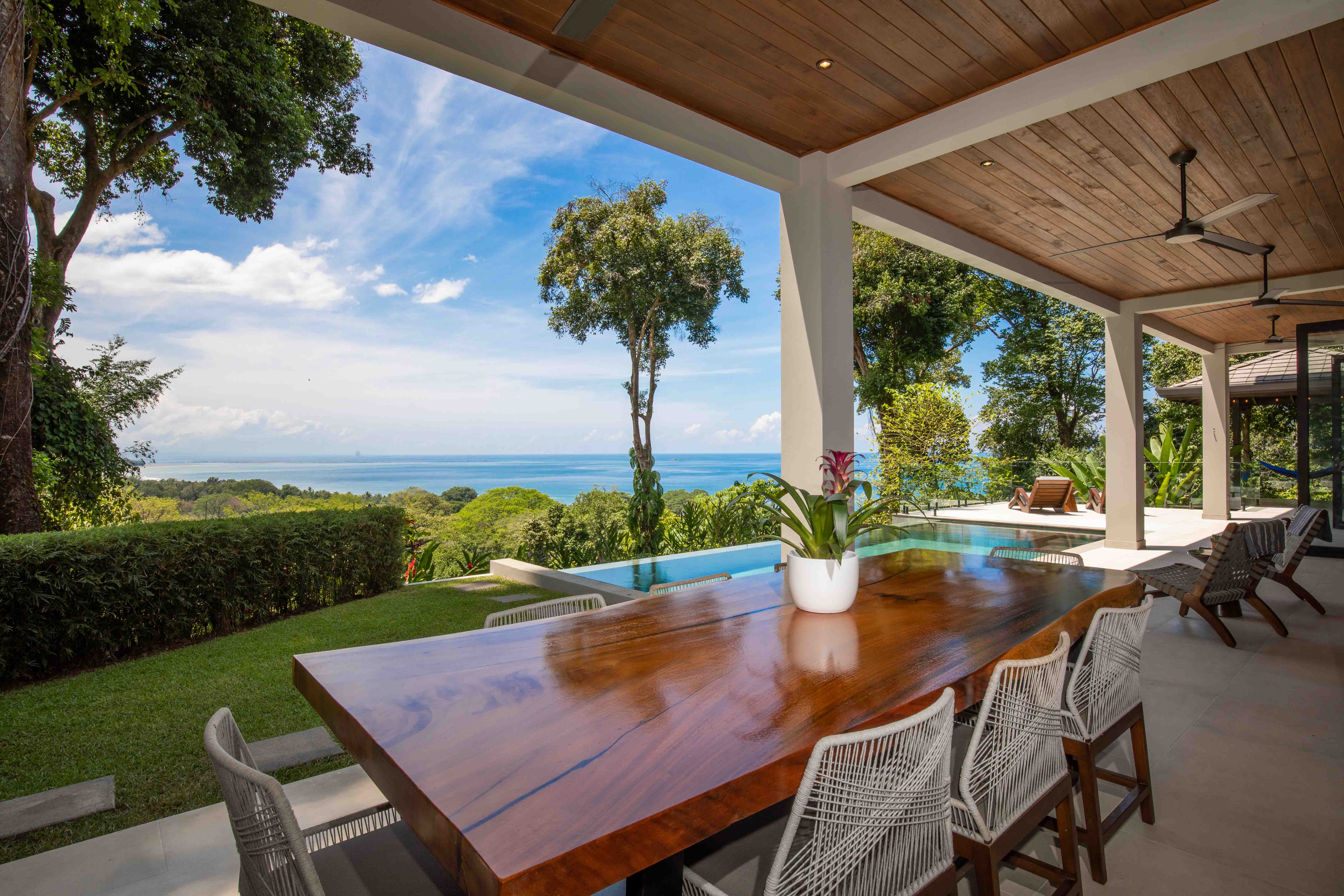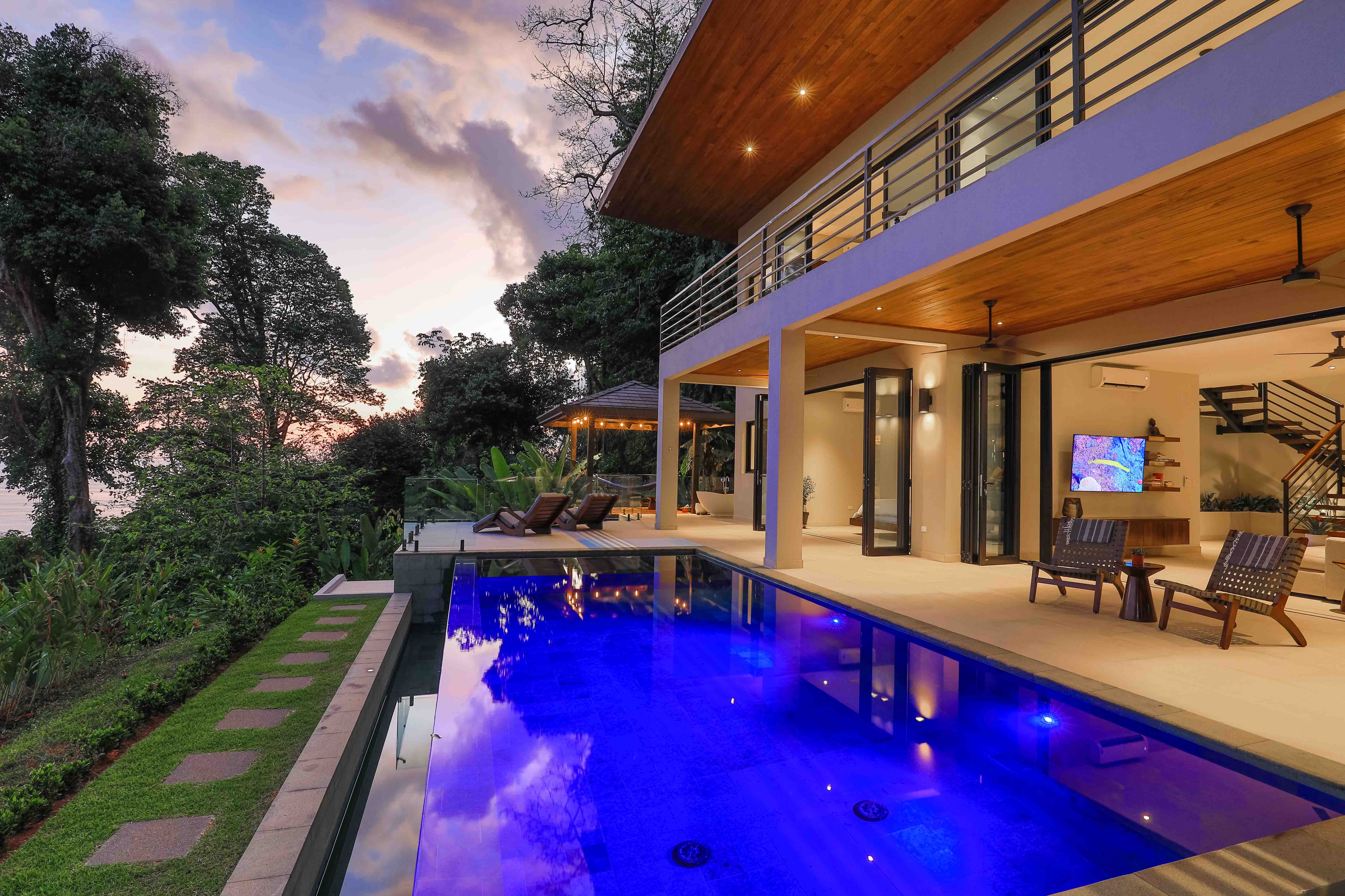 From the moment you step foot in this luxurious villa, you will be truly impressed by how beautiful, solid and clean-lined this two-story house is; with 4 large bedrooms, 5 full bathrooms, an open floorplan living room and kitchen with large accordion doors opening to unbeatable views, the house is ready to move in and enjoy a lifestyle of luxury and comfort. Each space has been designed for relaxation and enjoyment, without sparing any details; both the finishes and the choice of contemporary furniture and tropical decor is elegant yet simplistic.