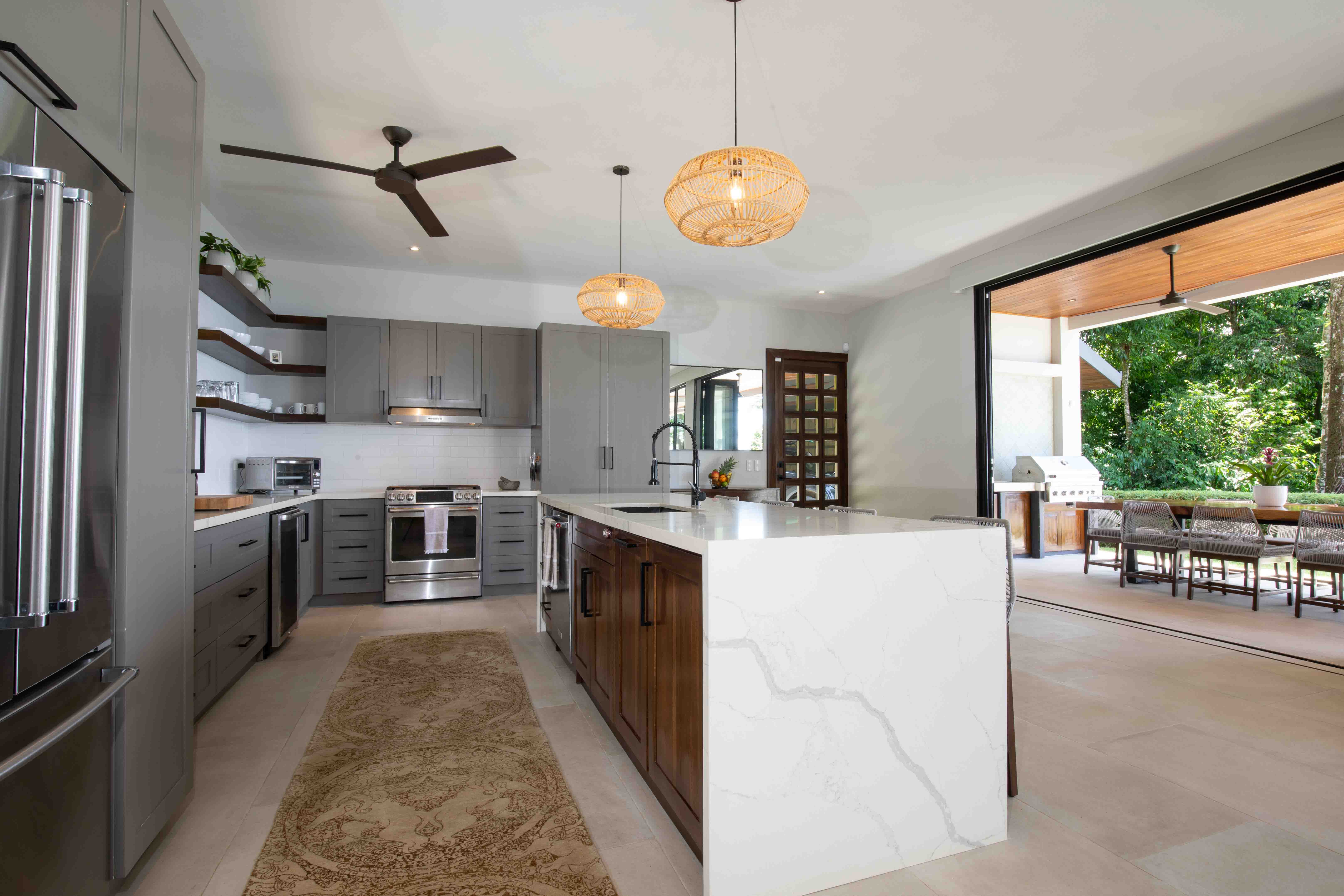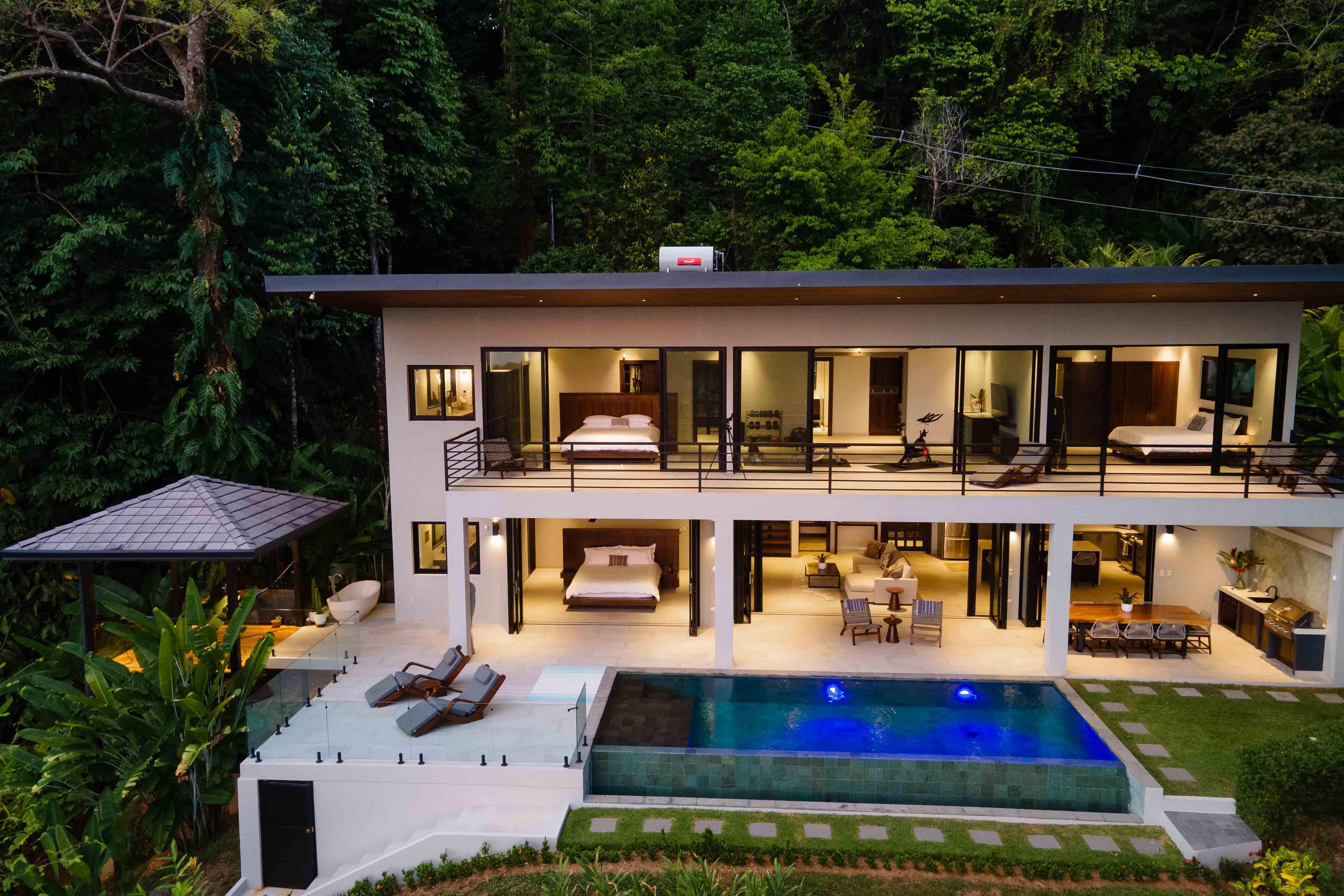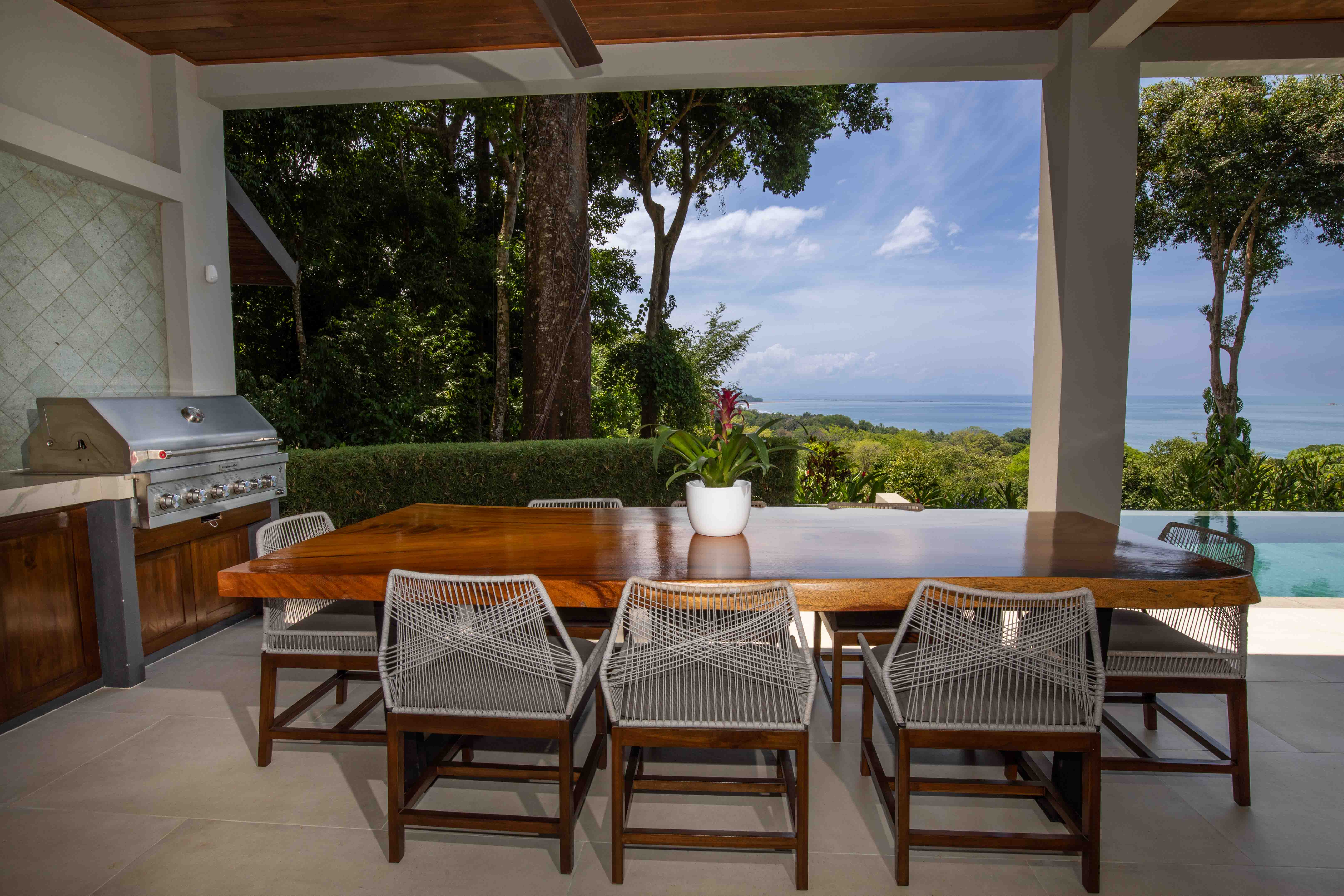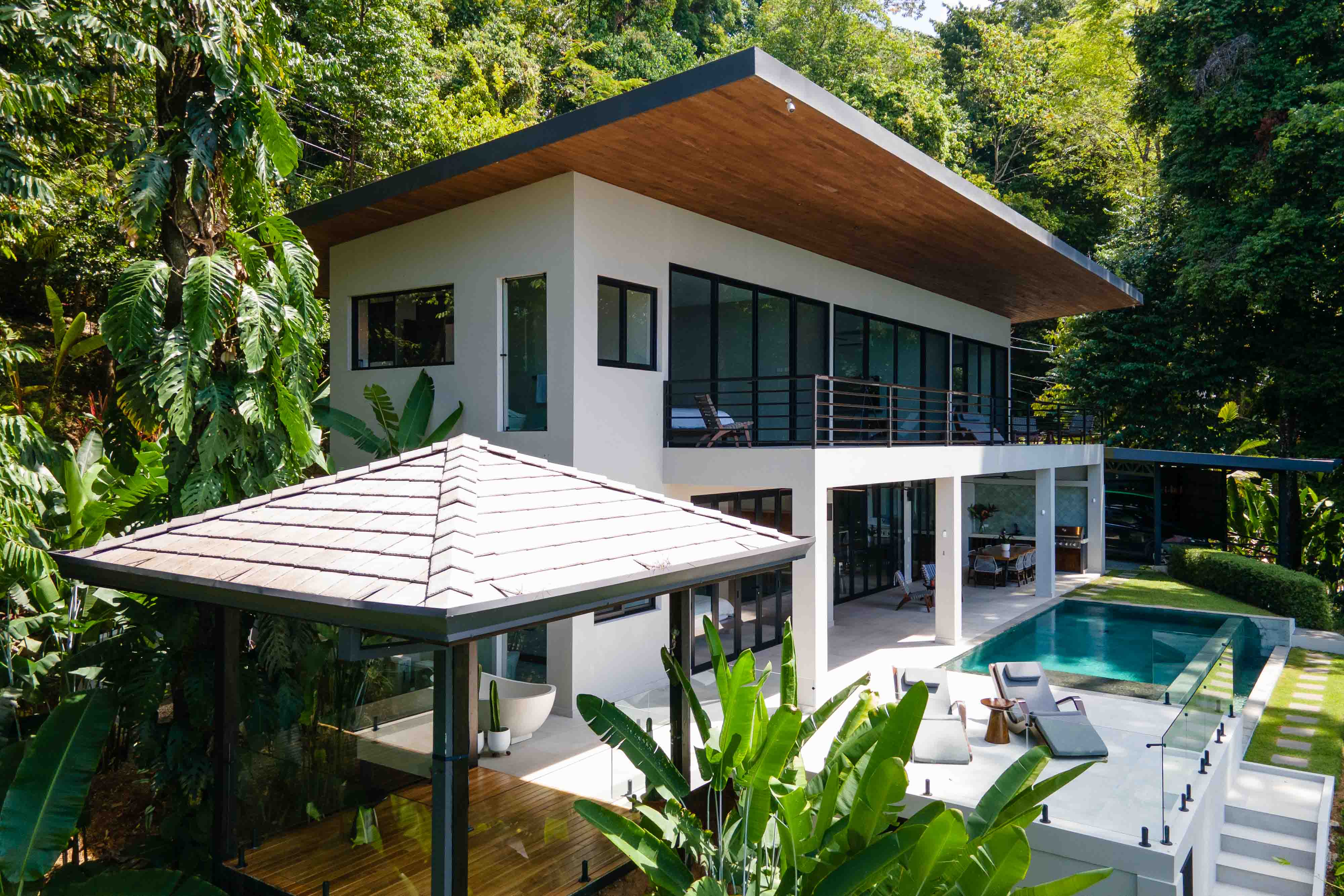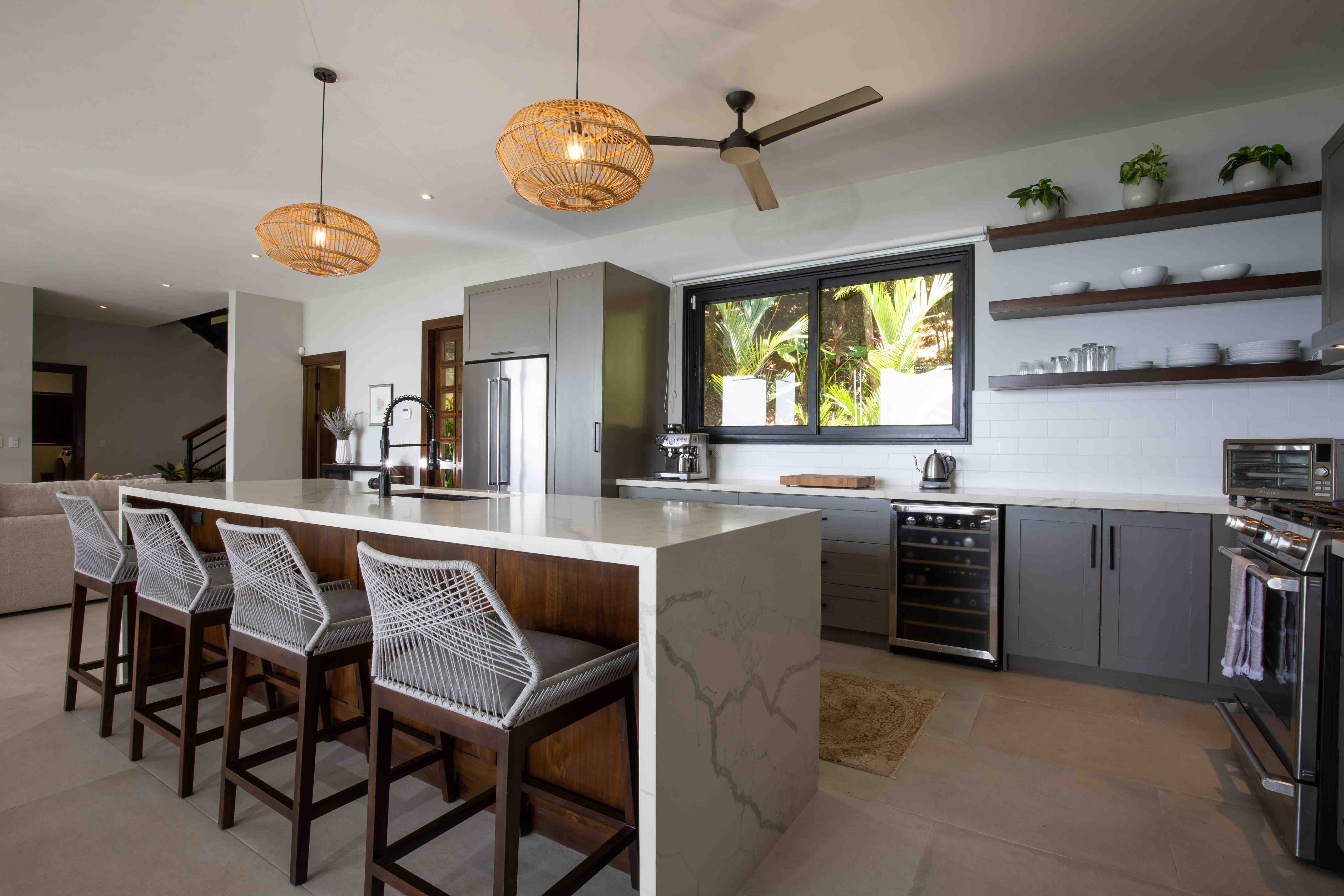 From the moment you step foot in this luxurious villa, you will be truly impressed by how beautiful, solid and clean-lined this two-story house is; with 4 large bedrooms, 5 full bathrooms, an open floorplan living room and kitchen with large accordion doors opening to unbeatable views, the house is ready to move in and enjoy a lifestyle of luxury and comfort. Each space has been designed for relaxation and enjoyment, without sparing any details; both the finishes and the choice of contemporary furniture and tropical decor is elegant yet simplistic.
