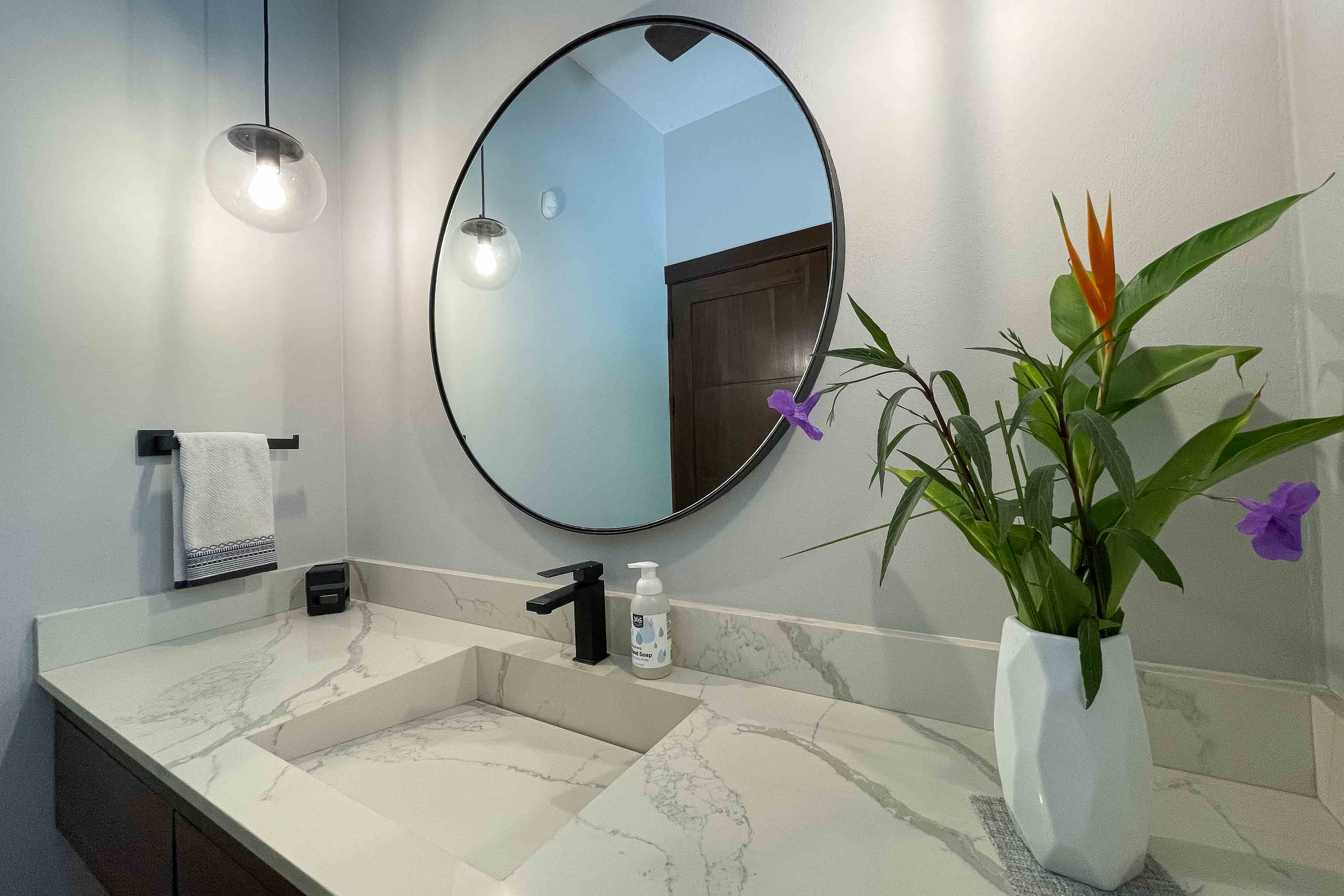 The bright and spacious kitchen features new top-of-the-line appliances, ample cabinets for storage, a large island with granite finishes that invites sharing with family and friends, and large accordion doors opening to the spacious poolside terrace to let in natural light and refreshing ocean breezes. The home is also equipped with a state of the art security system with 4 outside cameras, interior motion sensors and all operable exterior doors and windows have magnetic detectors.