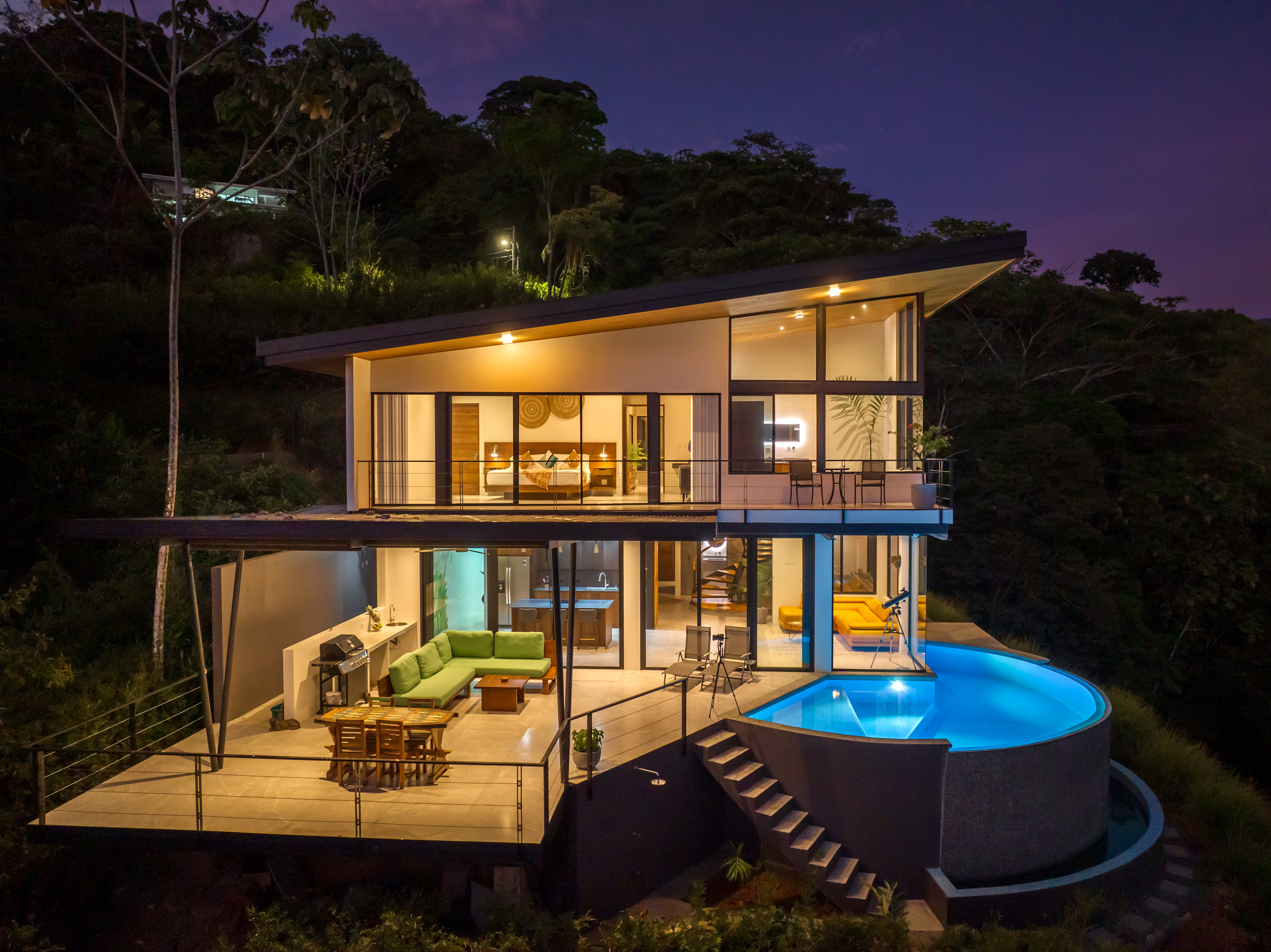 From the moment you enter this architectural dream, your gaze will feast upon the surrounding jungle, ocean, mountain, and valley views. Watch the never-ending wildlife of toucans, scarlet macaws, monkeys, and more. The location can’t be beat! Just minutes to downtown Uvita!
