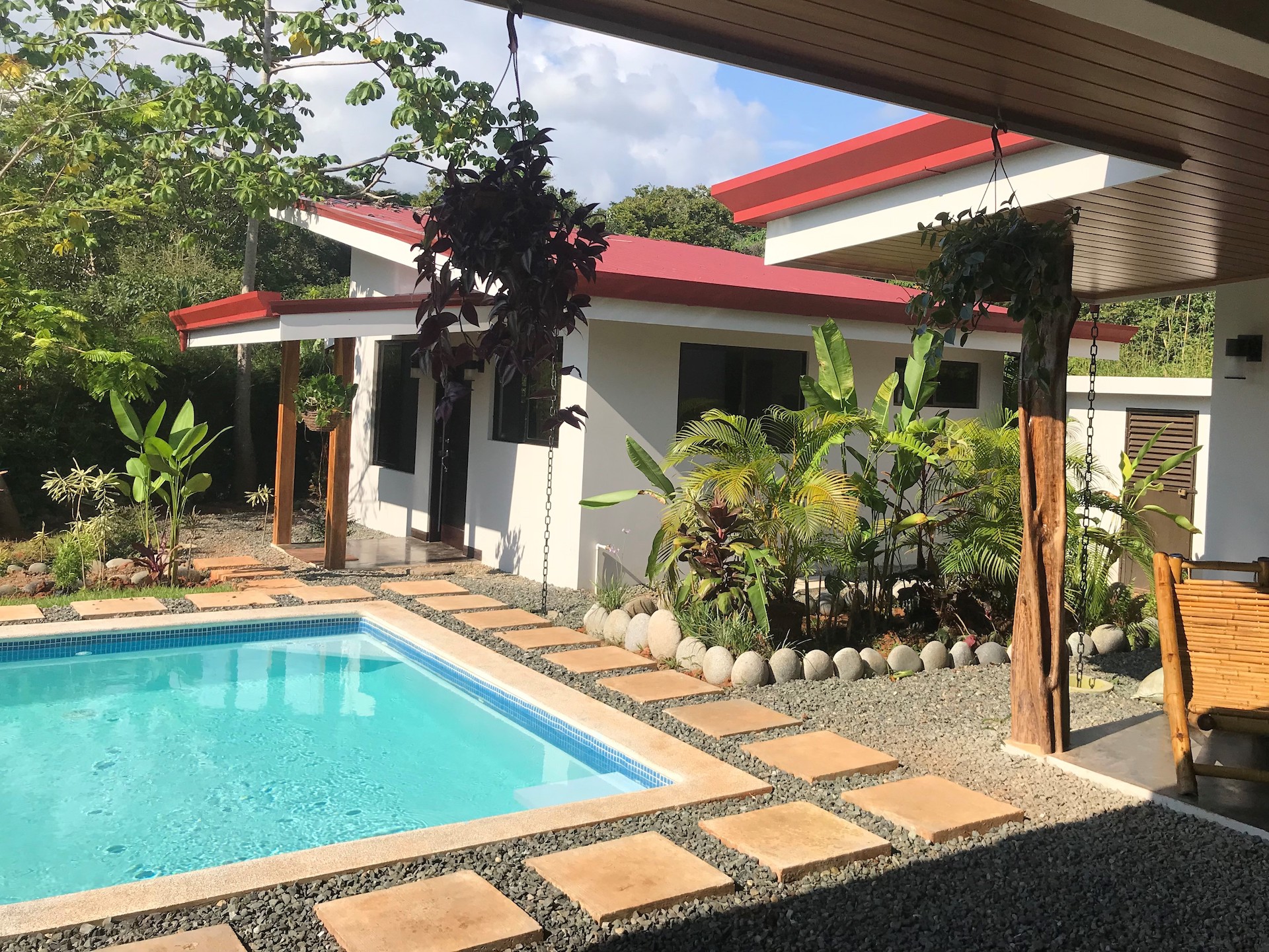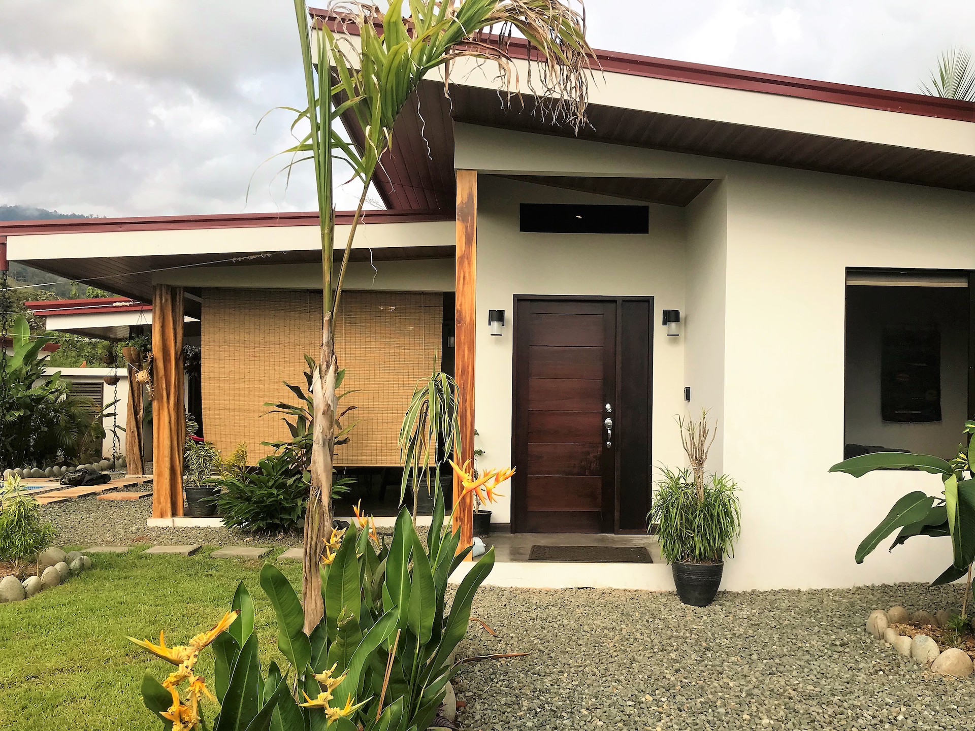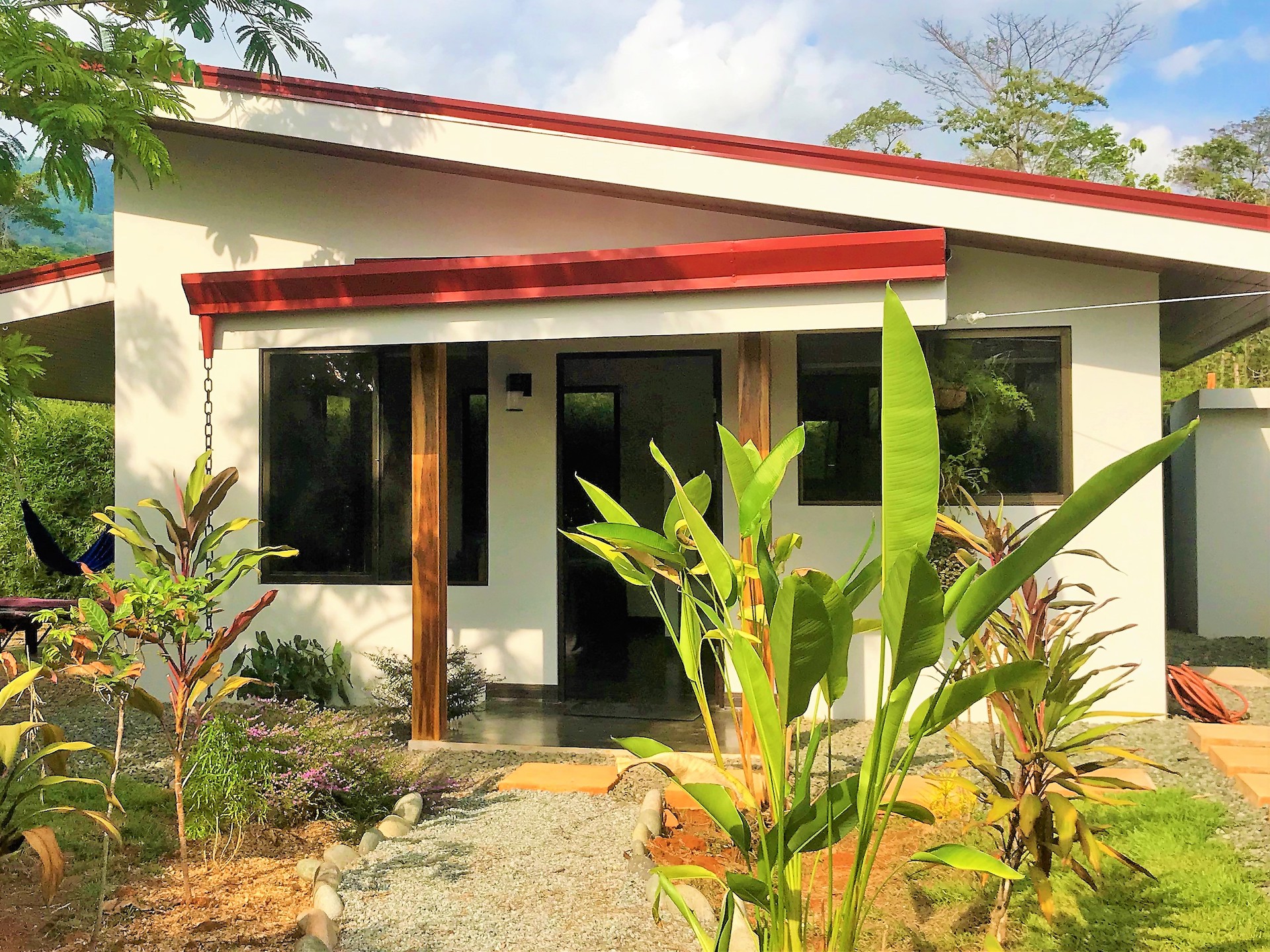 This private home and guesthouse property was completed at the beginning of 2019 and has one of the best locations for enjoying all that the of the beautiful coastal town of Uvita while being in an established quiet residential area.