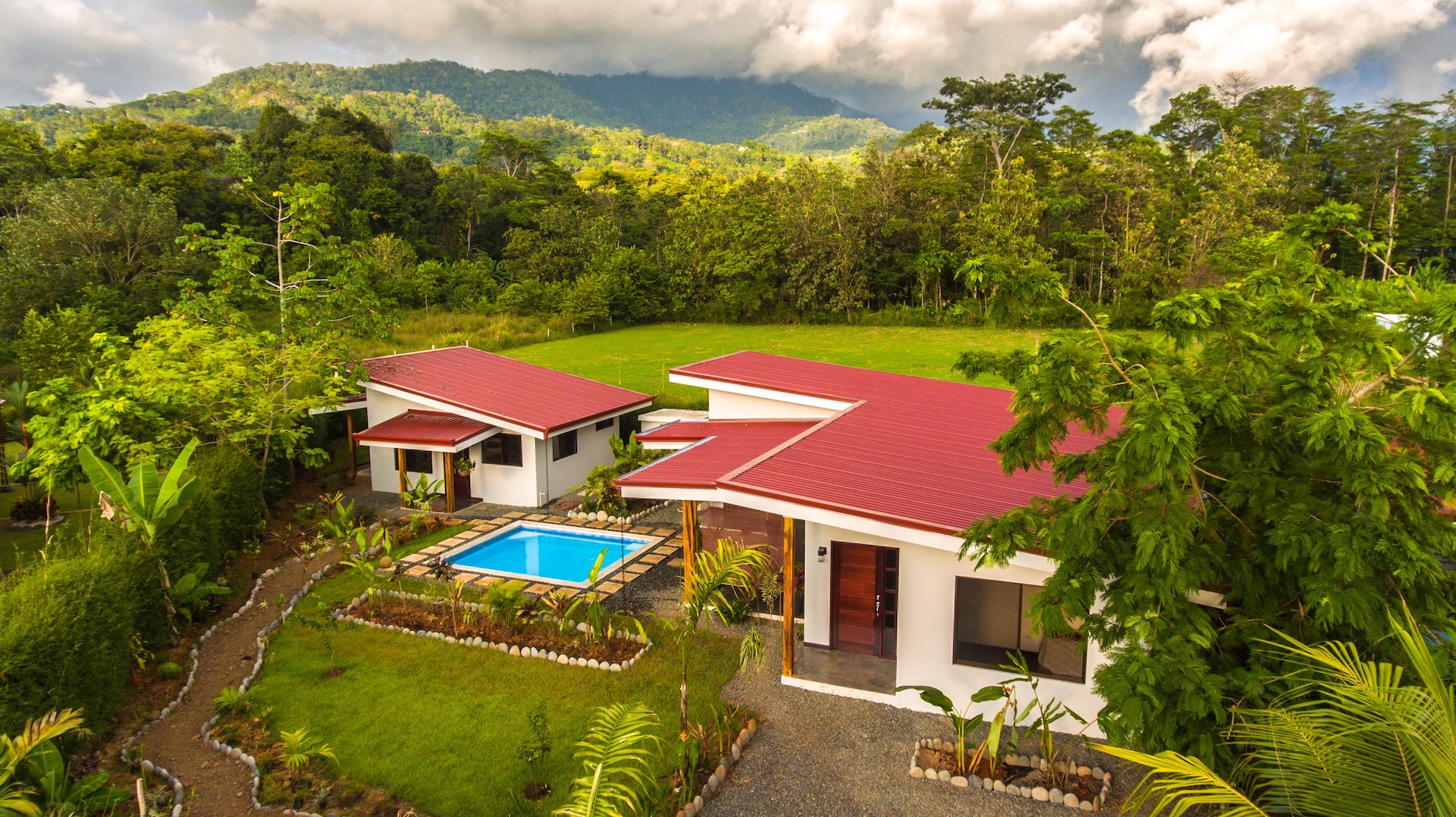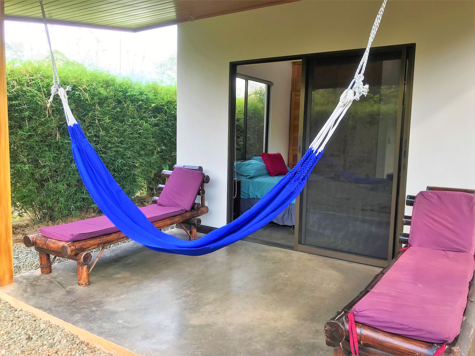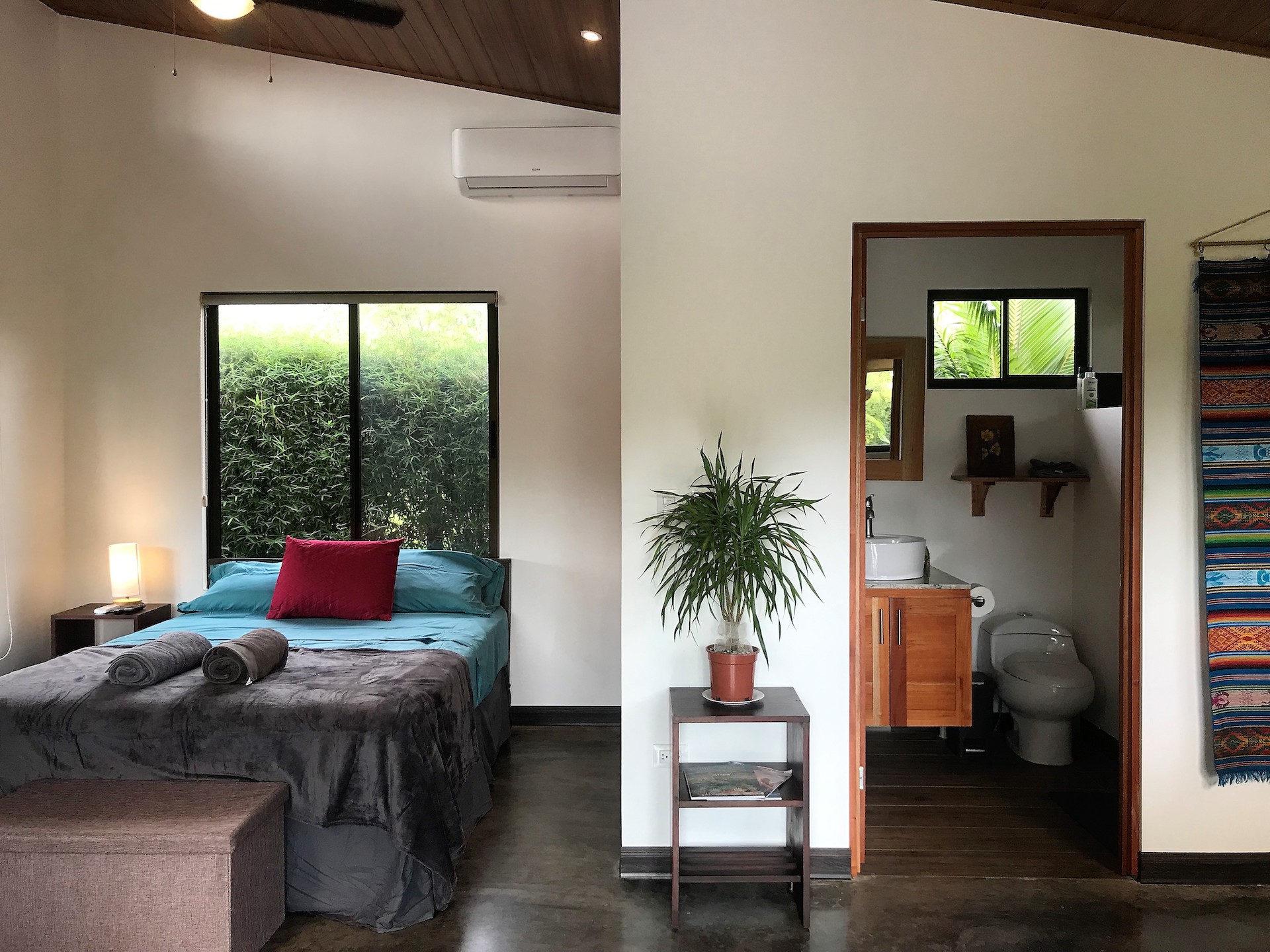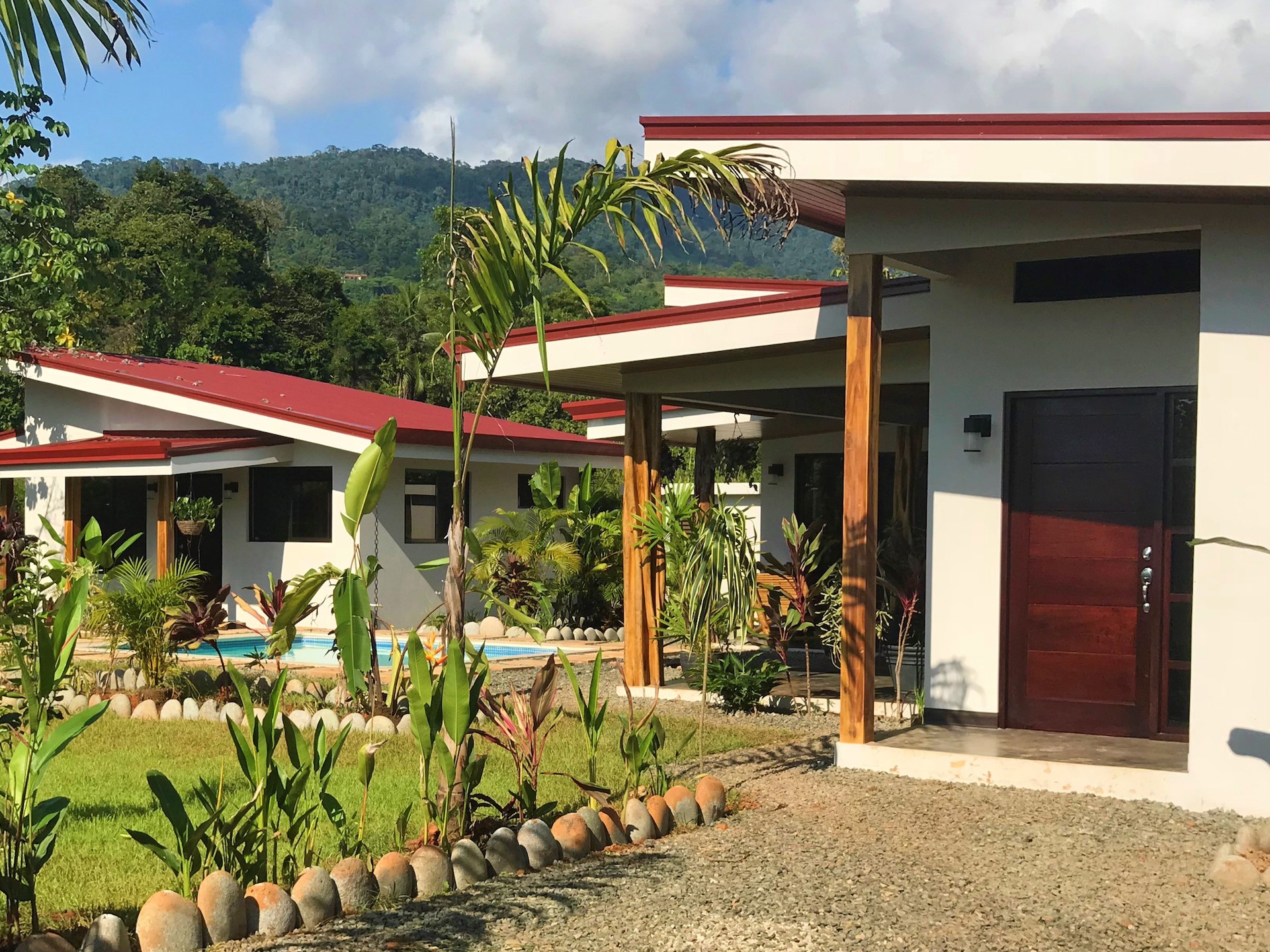 This private home and guesthouse property was completed at the beginning of 2019 and has one of the best locations for enjoying all that the of the beautiful coastal town of Uvita while being in an established quiet residential area.