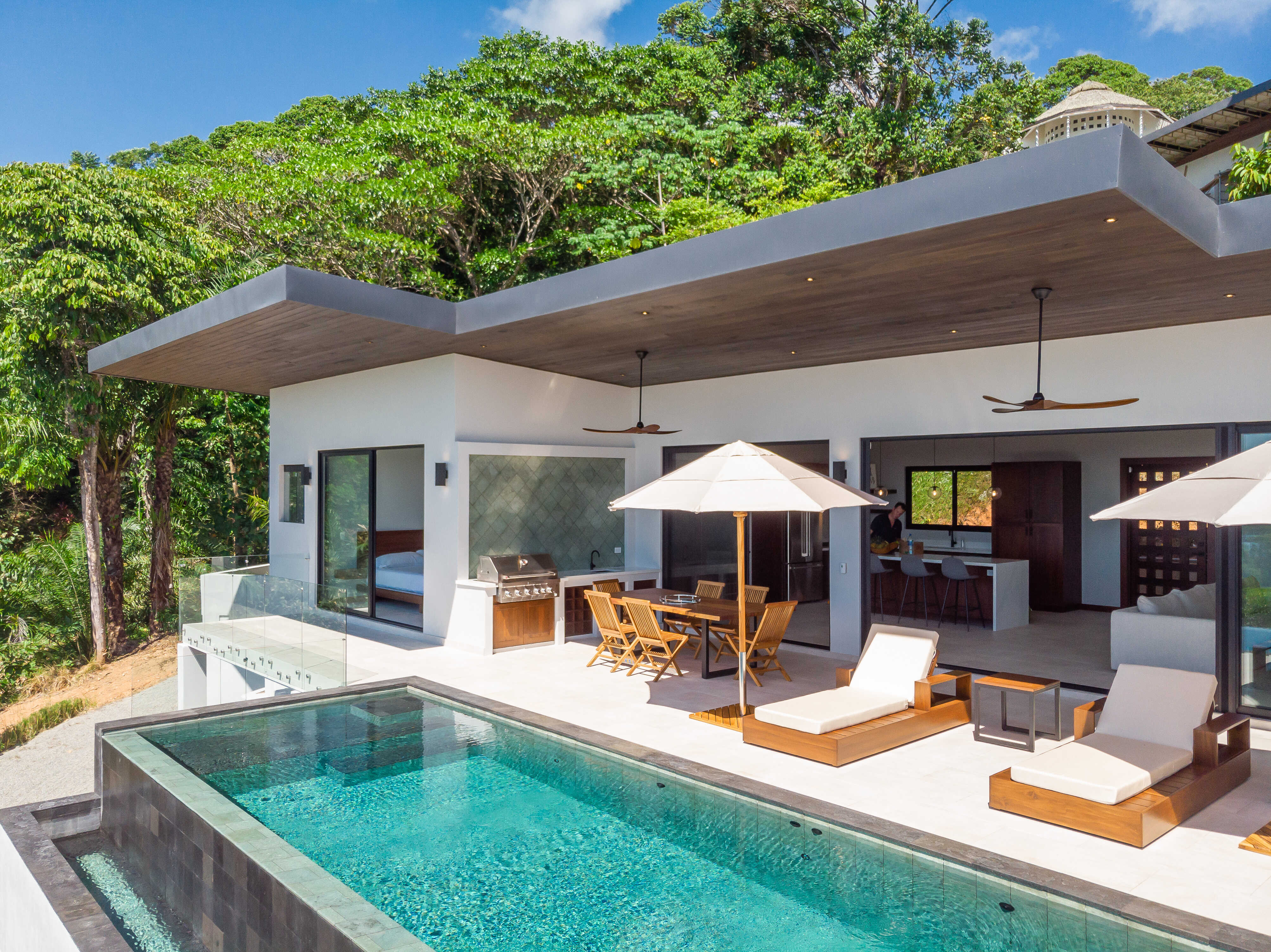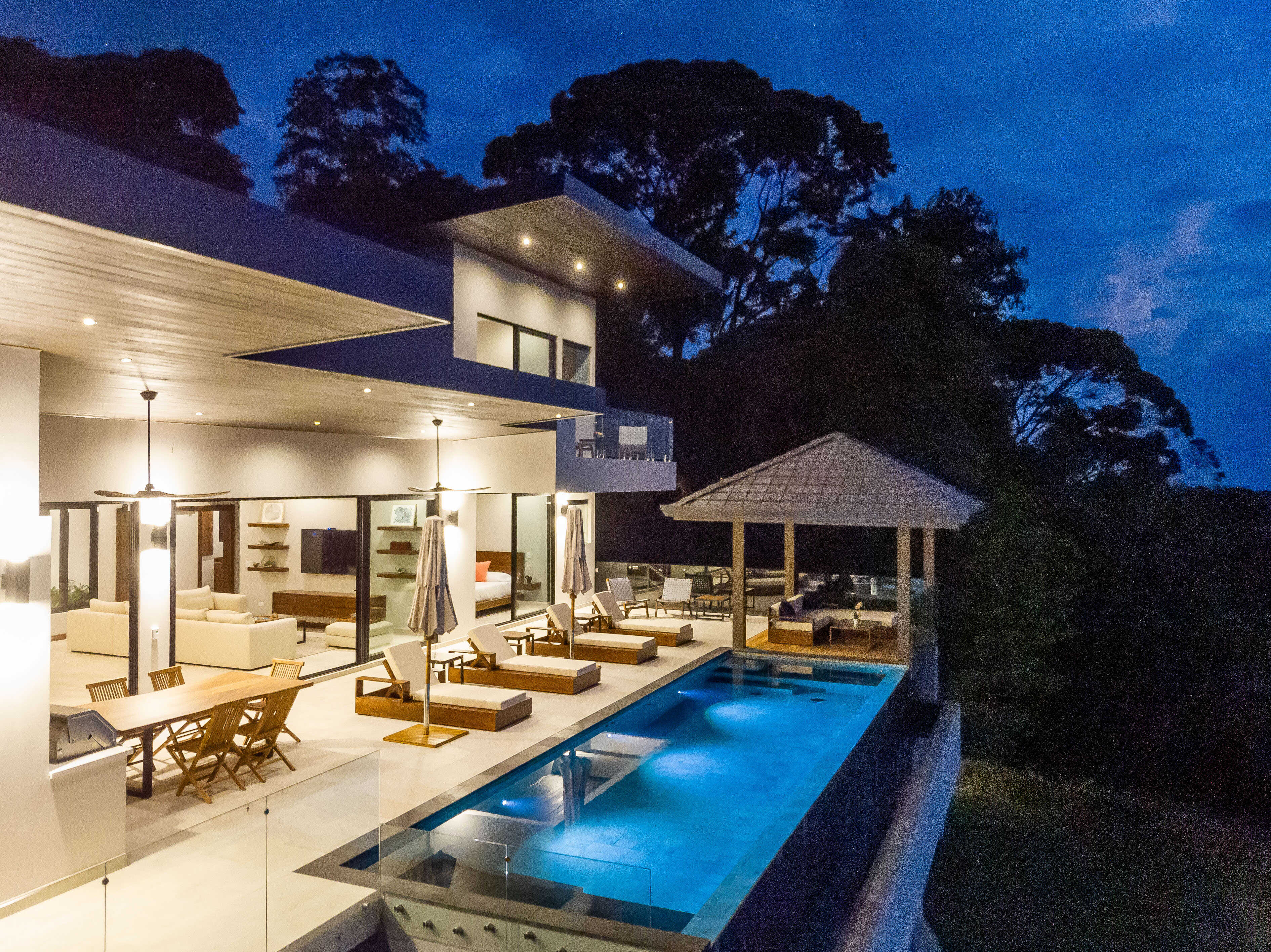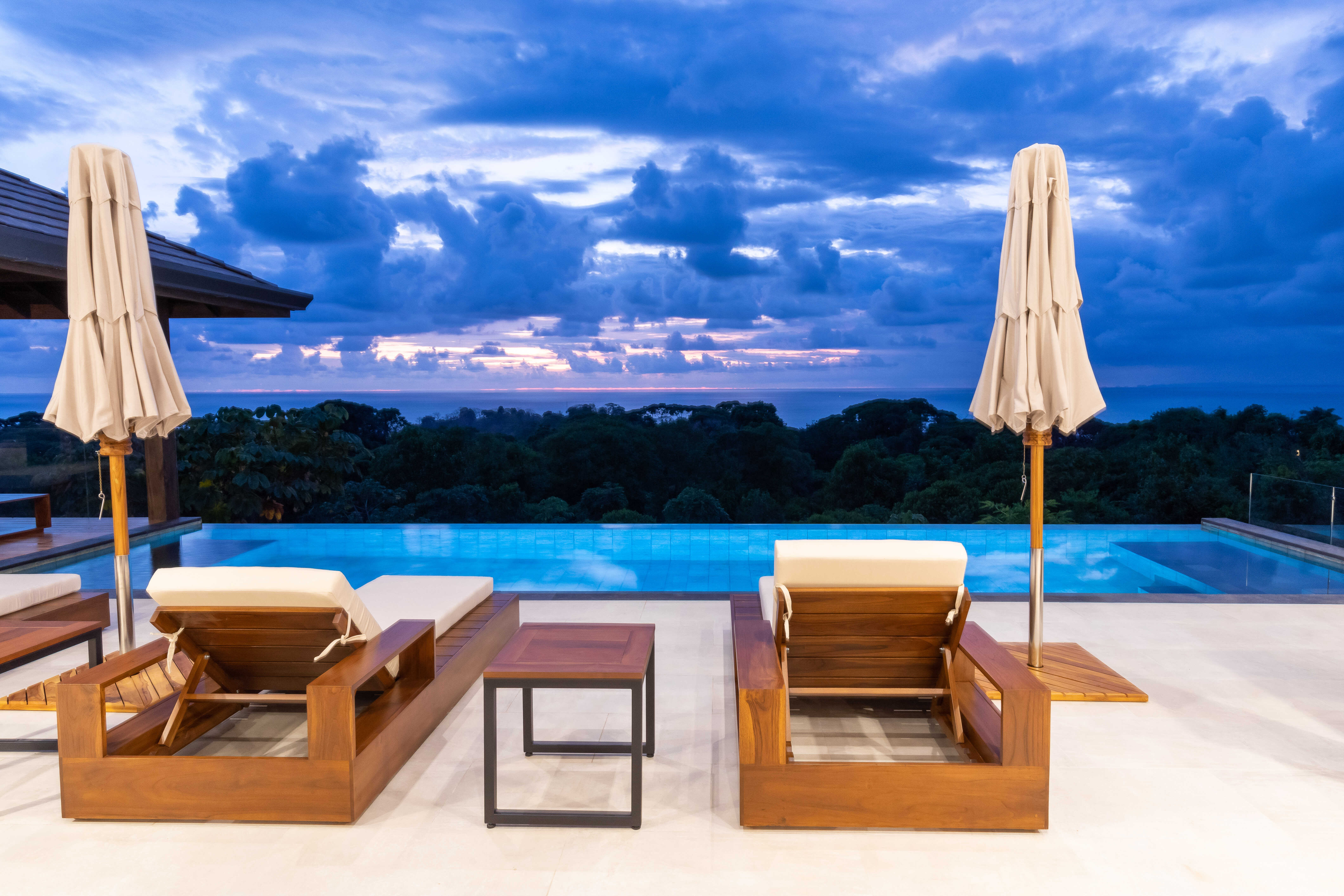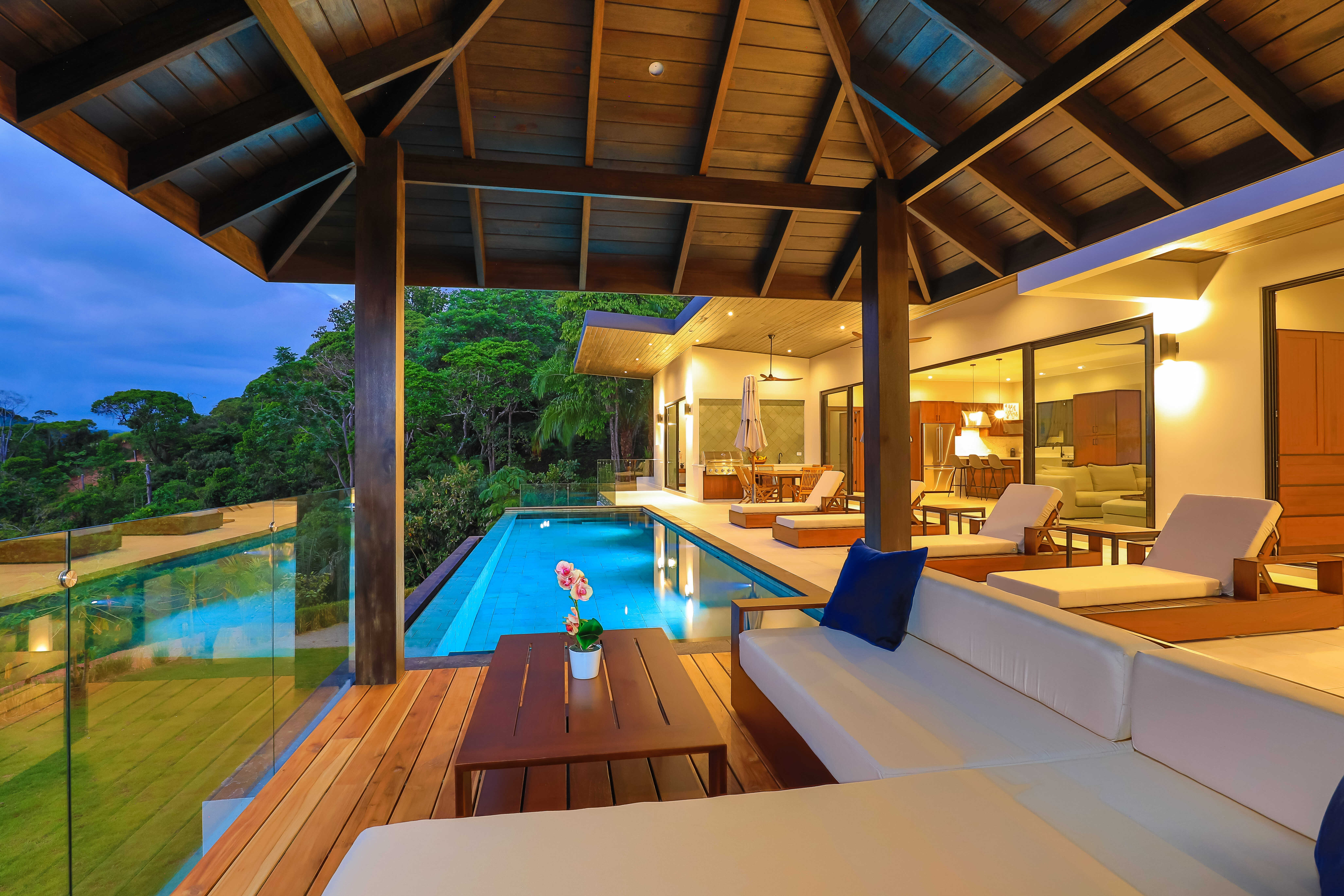 Nestled in the jungle, Casa Solaz is a dreamy 4 bedroom luxury villa overlooking the rolling waves of the Pacific, with spectacular views of the coast. It’s just minutes from a string of gorgeous tropical beaches, magnificent waterfalls, and jungle adventures. Wake up to toucans and monkeys, start your day on the yoga deck, relax with a book poolside in the covered pagoda, catch the sunset over the ocean from the infinity pool.