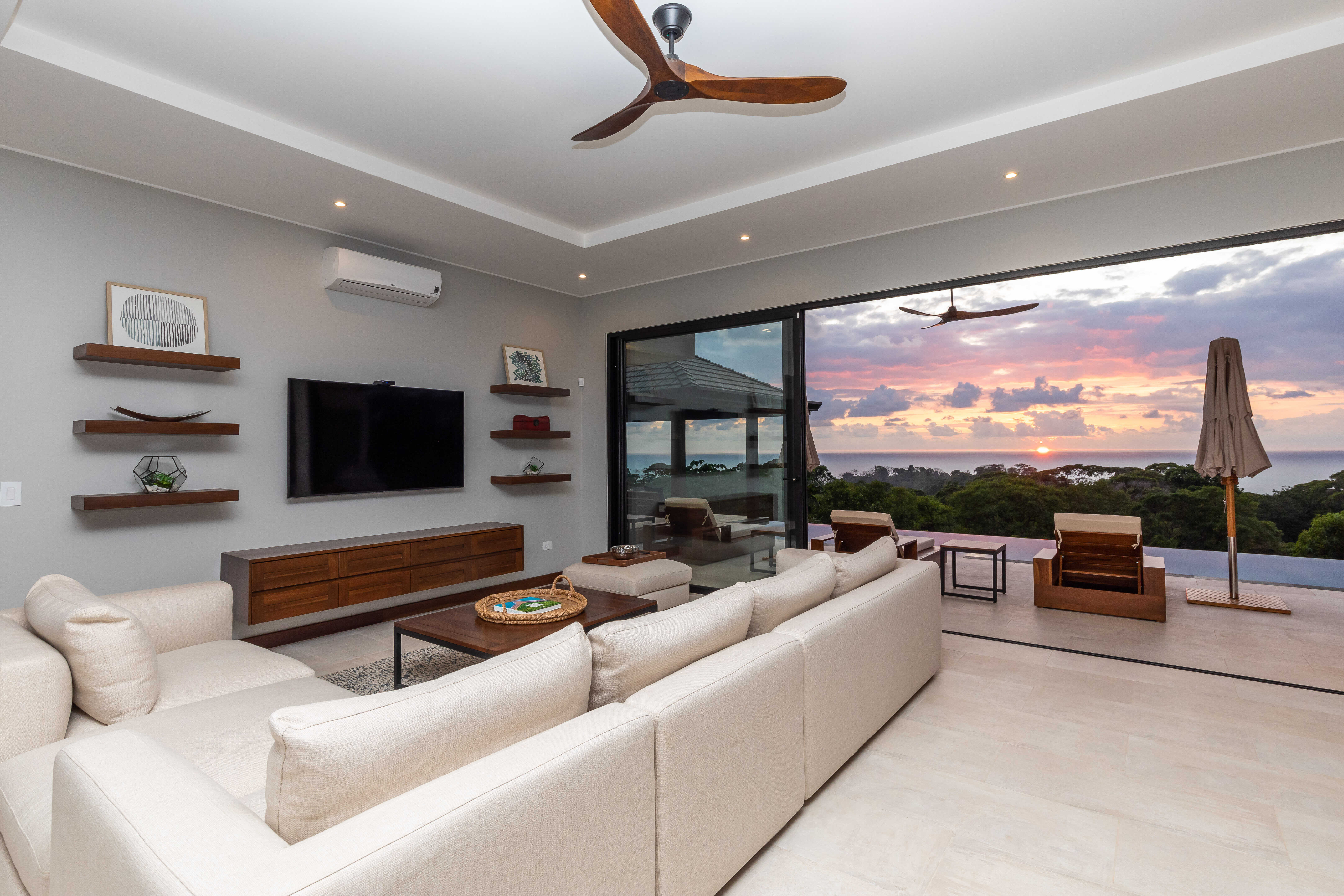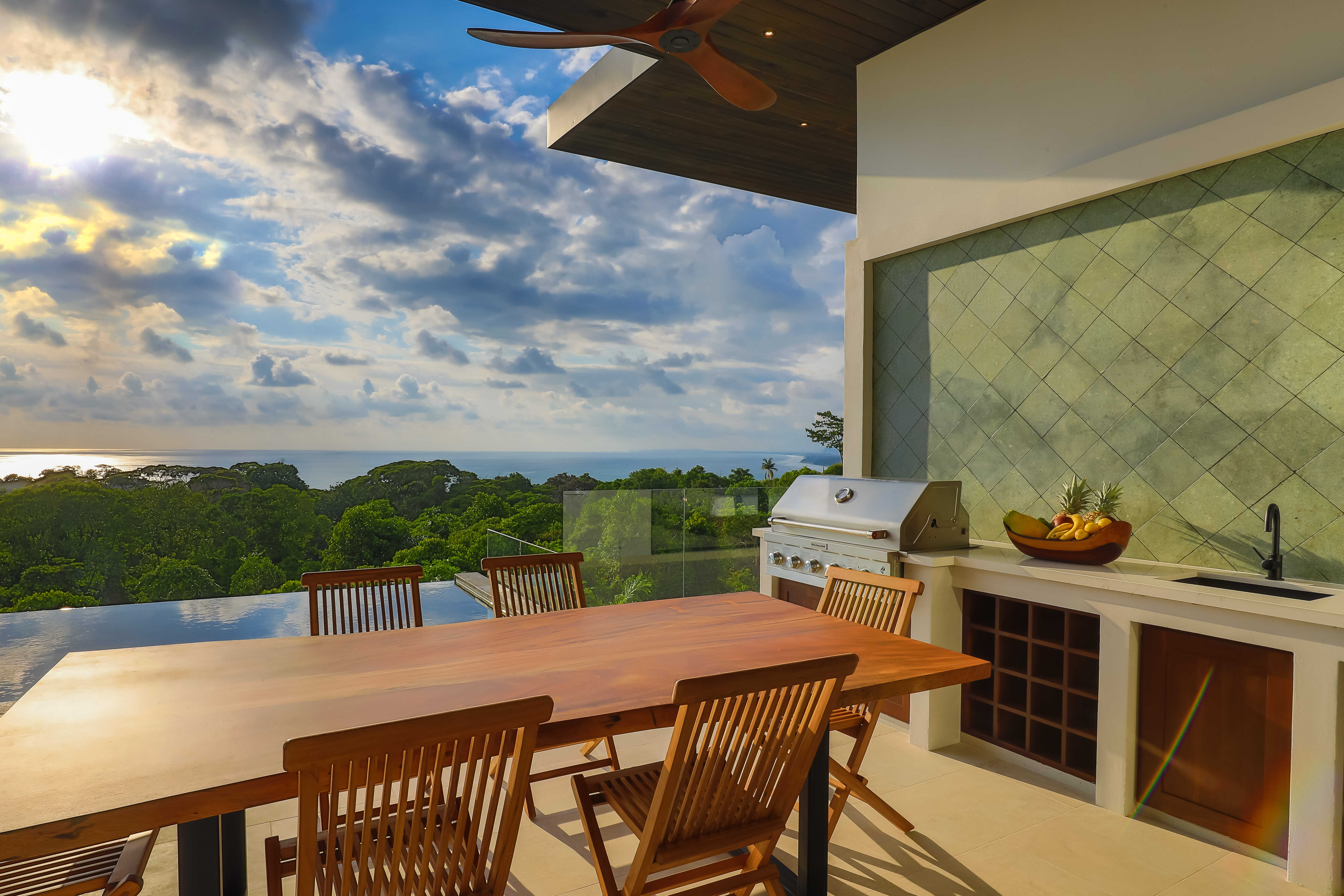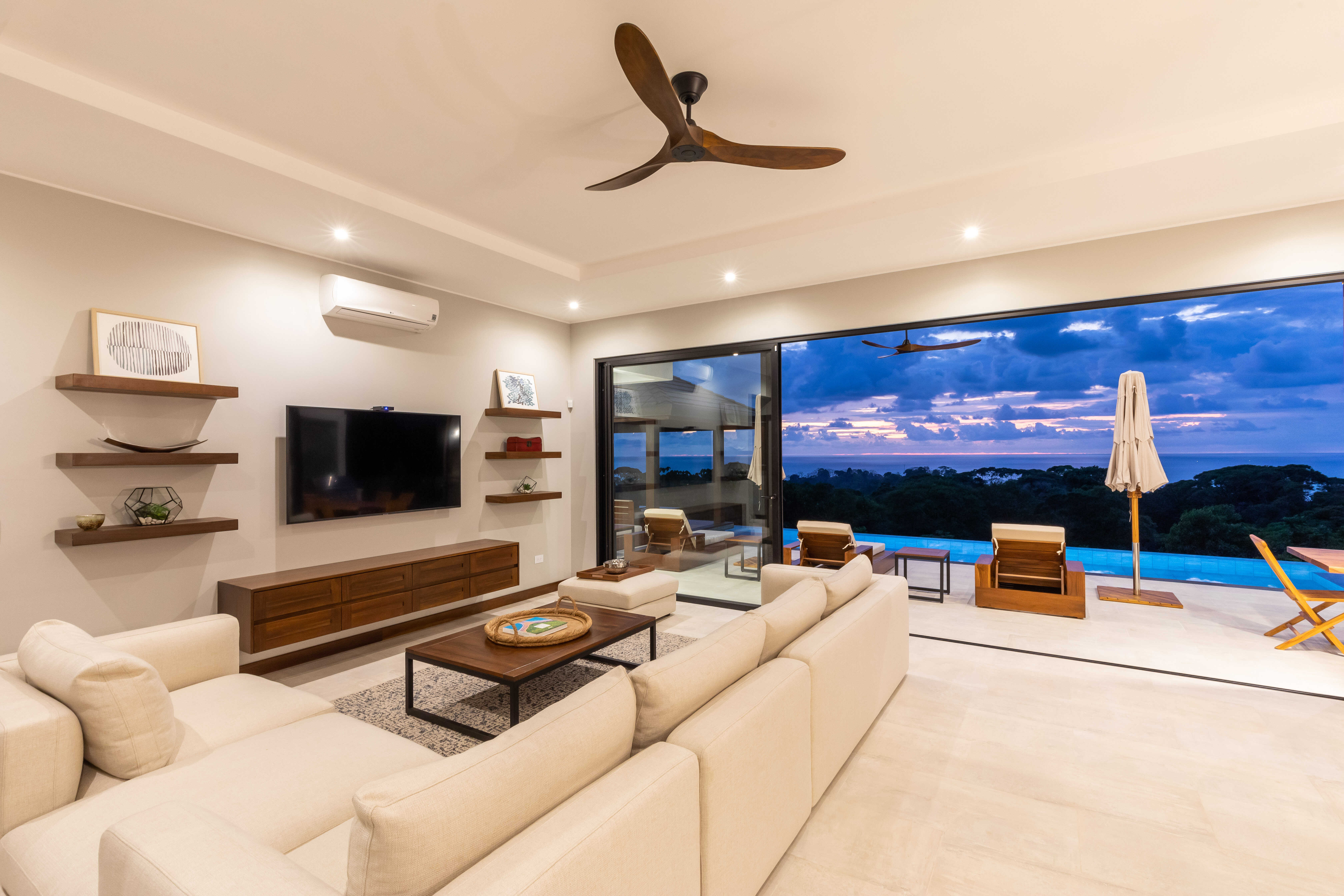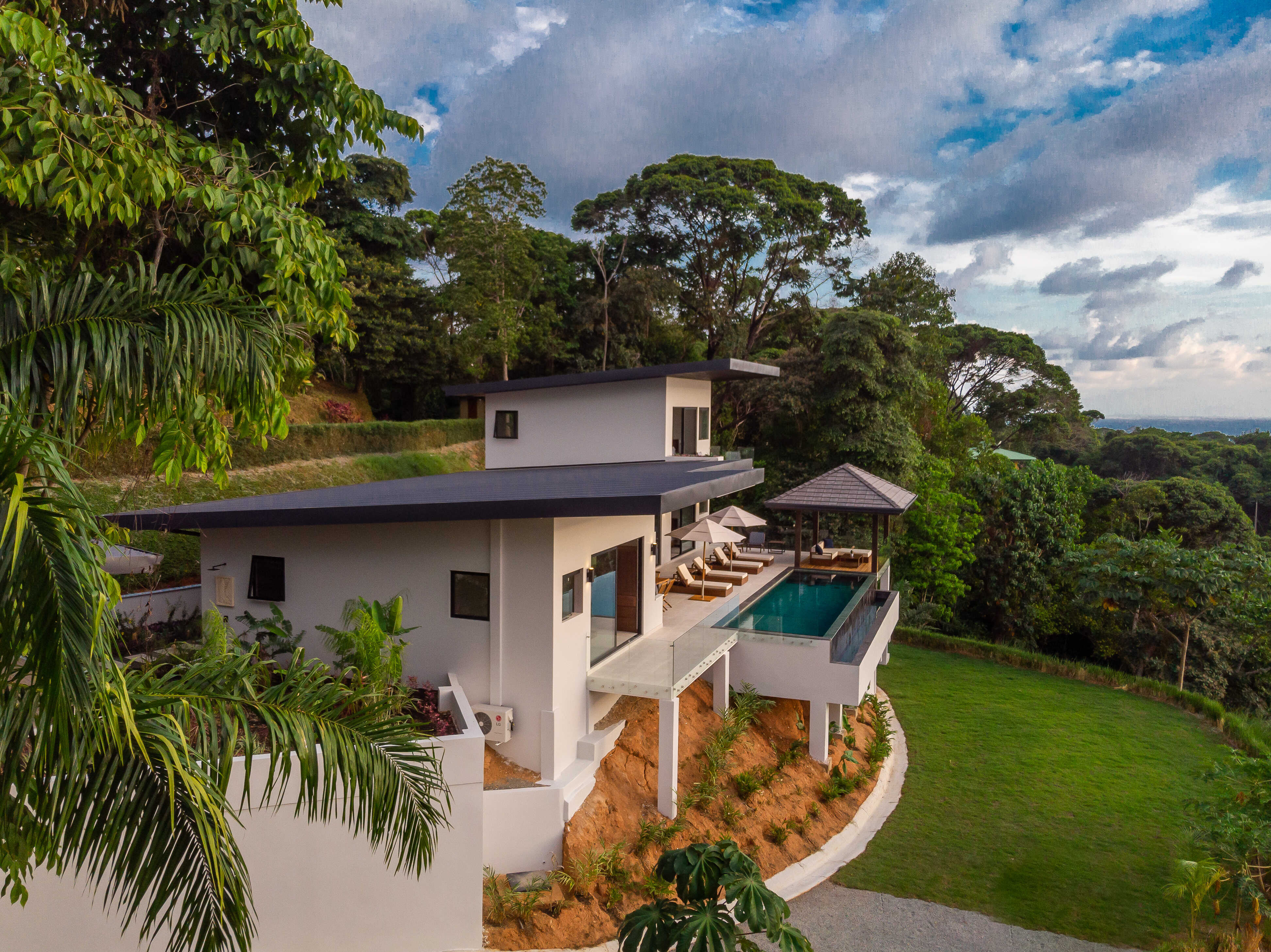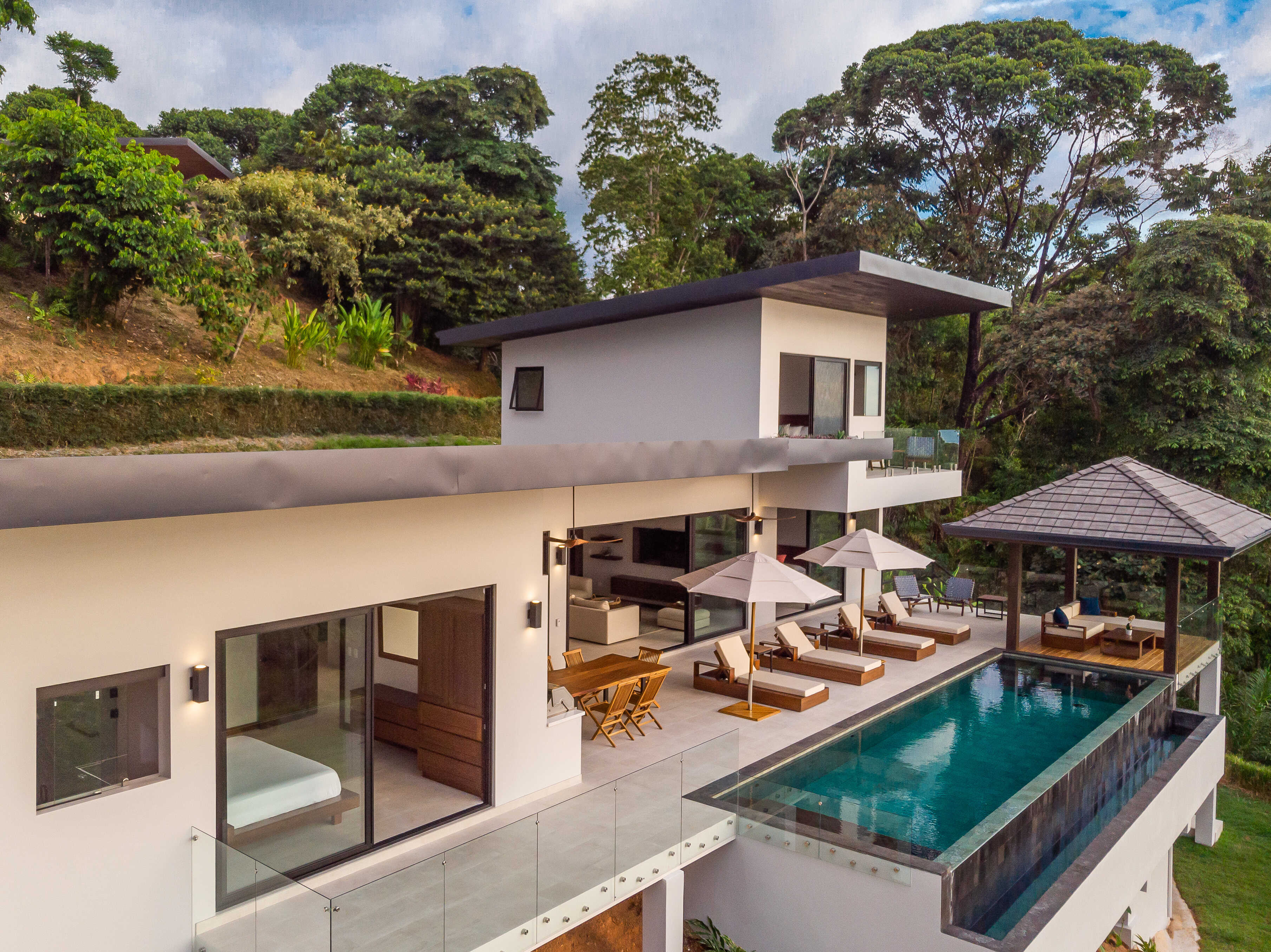 Nestled in the jungle, Casa Solaz is a dreamy 4 bedroom luxury villa overlooking the rolling waves of the Pacific, with spectacular views of the coast. It’s just minutes from a string of gorgeous tropical beaches, magnificent waterfalls, and jungle adventures. Wake up to toucans and monkeys, start your day on the yoga deck, relax with a book poolside in the covered pagoda, catch the sunset over the ocean from the infinity pool.